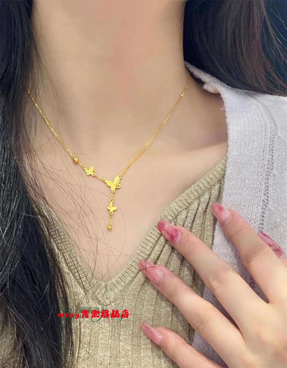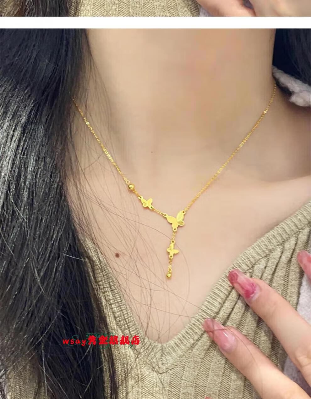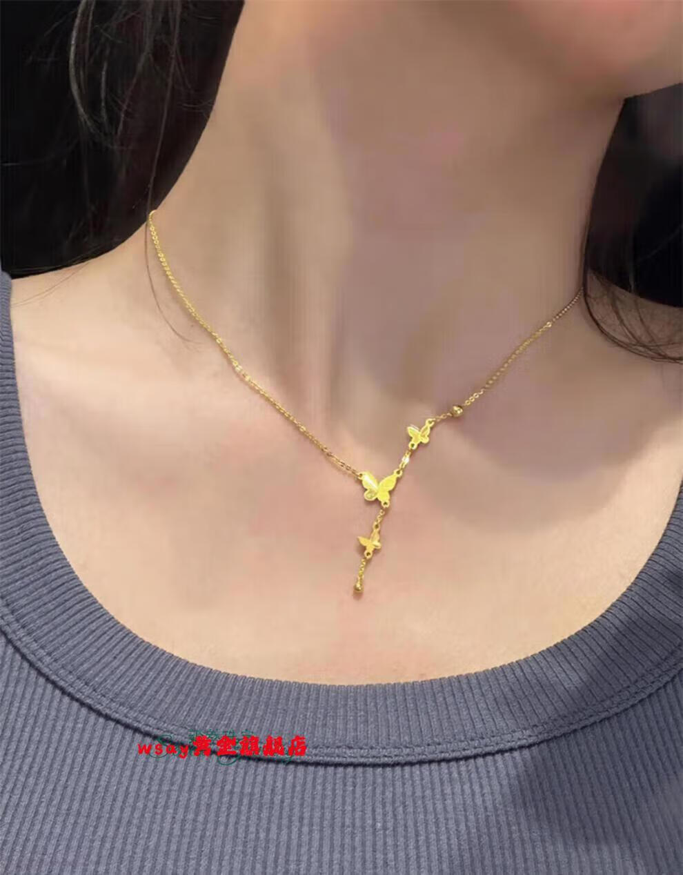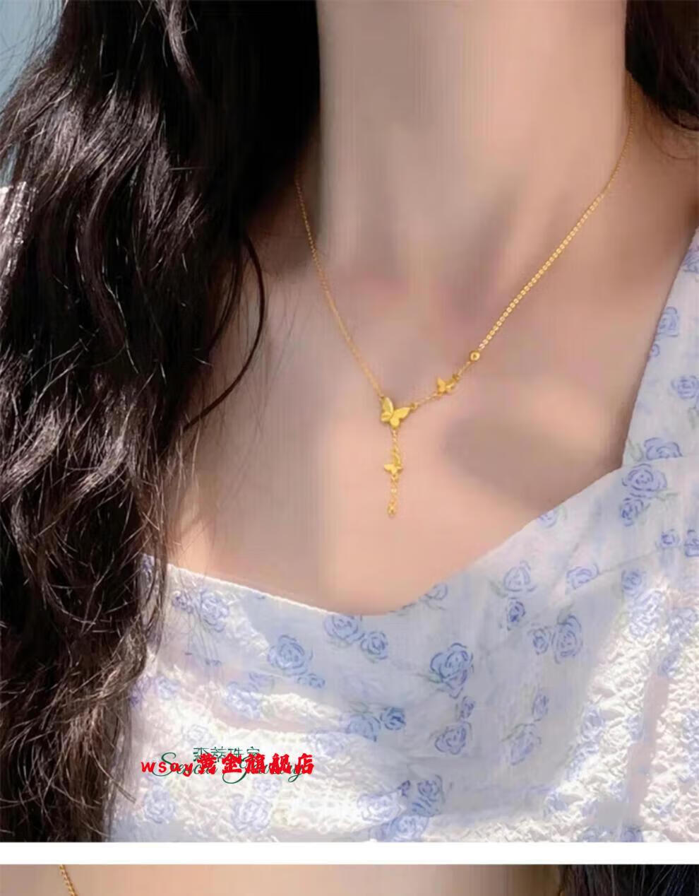 WSAY-Butterfly Necklace Gold Tassel Gold Gold Colorless Clavicle Chain Fashion Simple Free Tassel Butterfly Necklace Supermarket