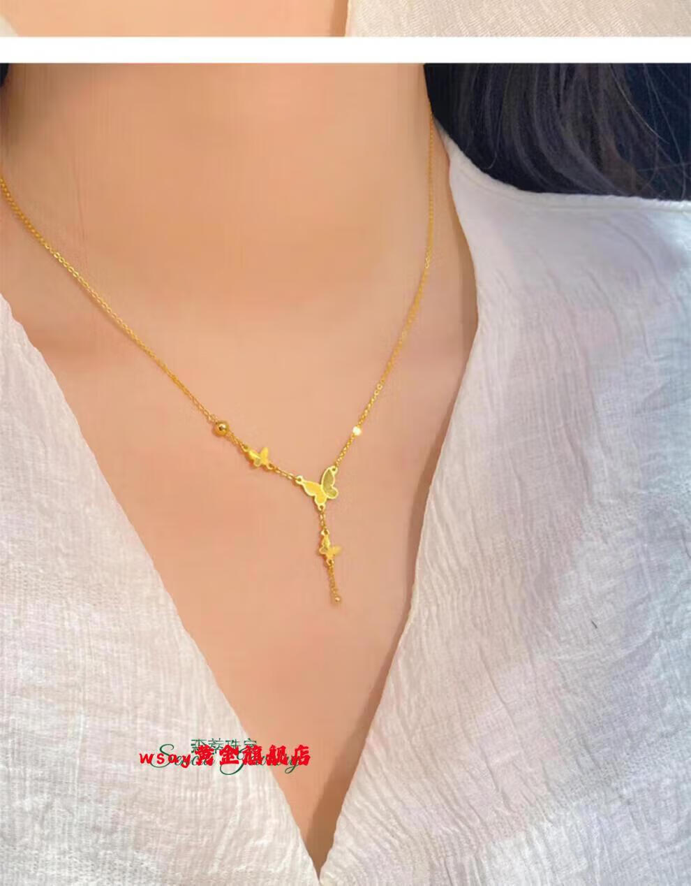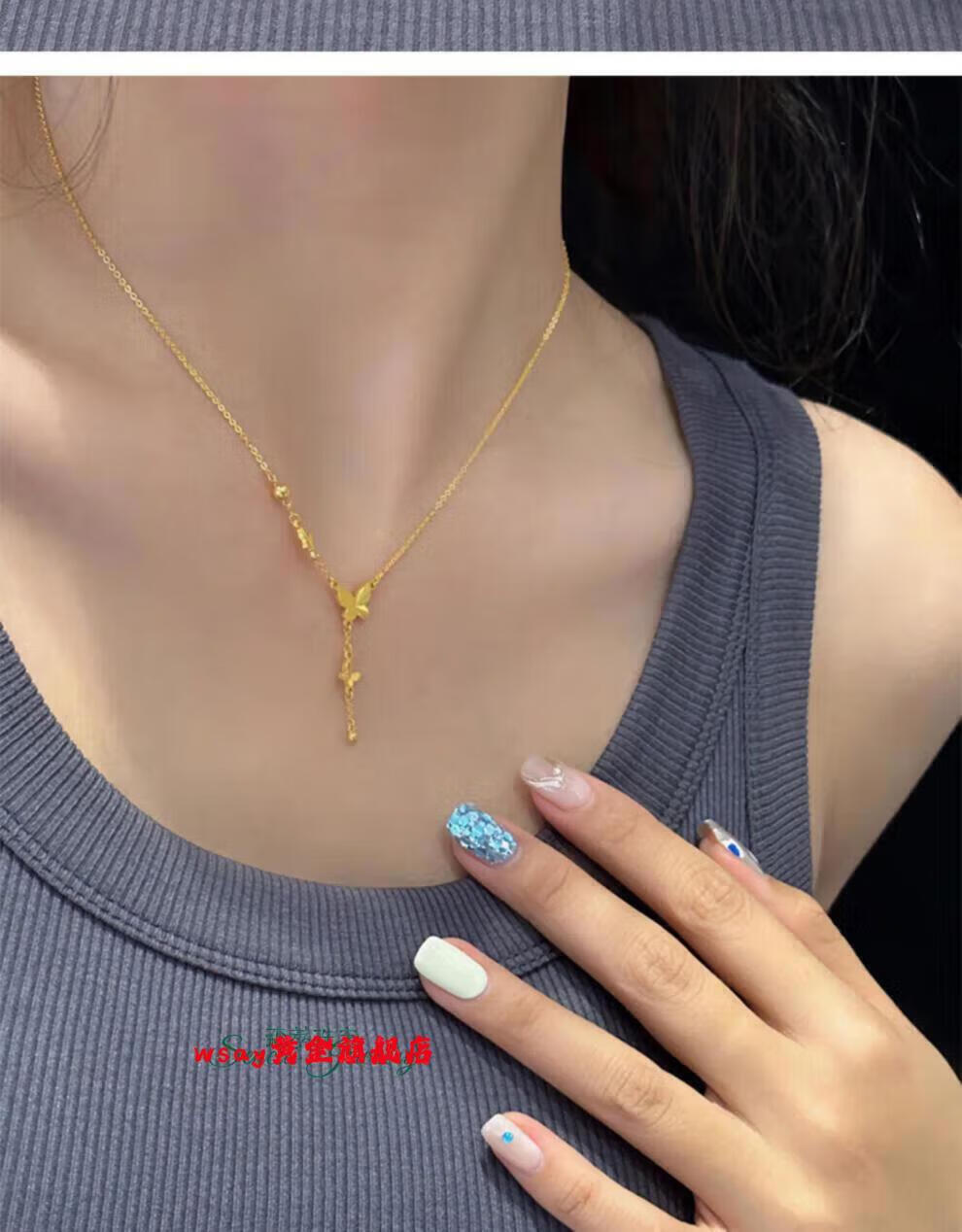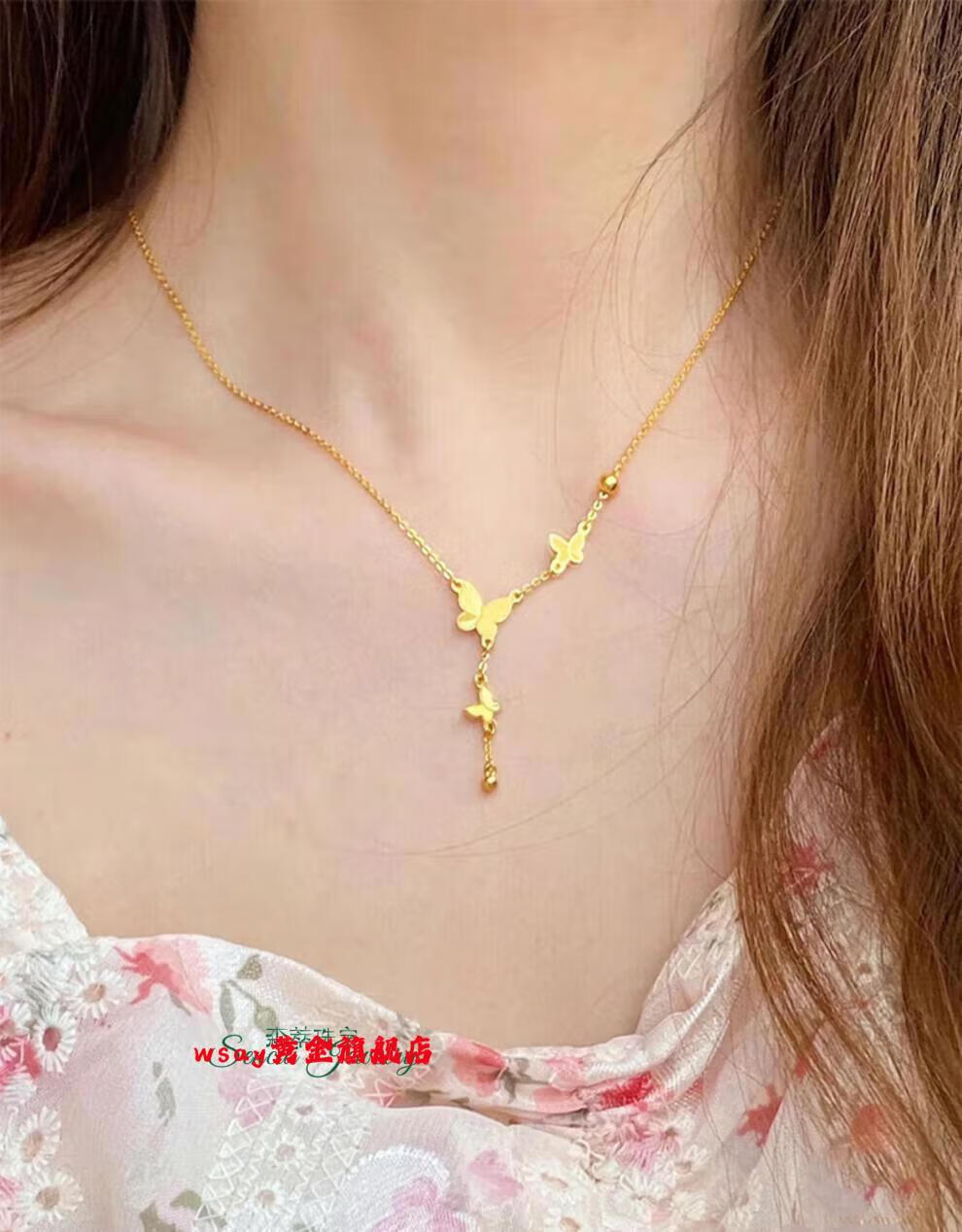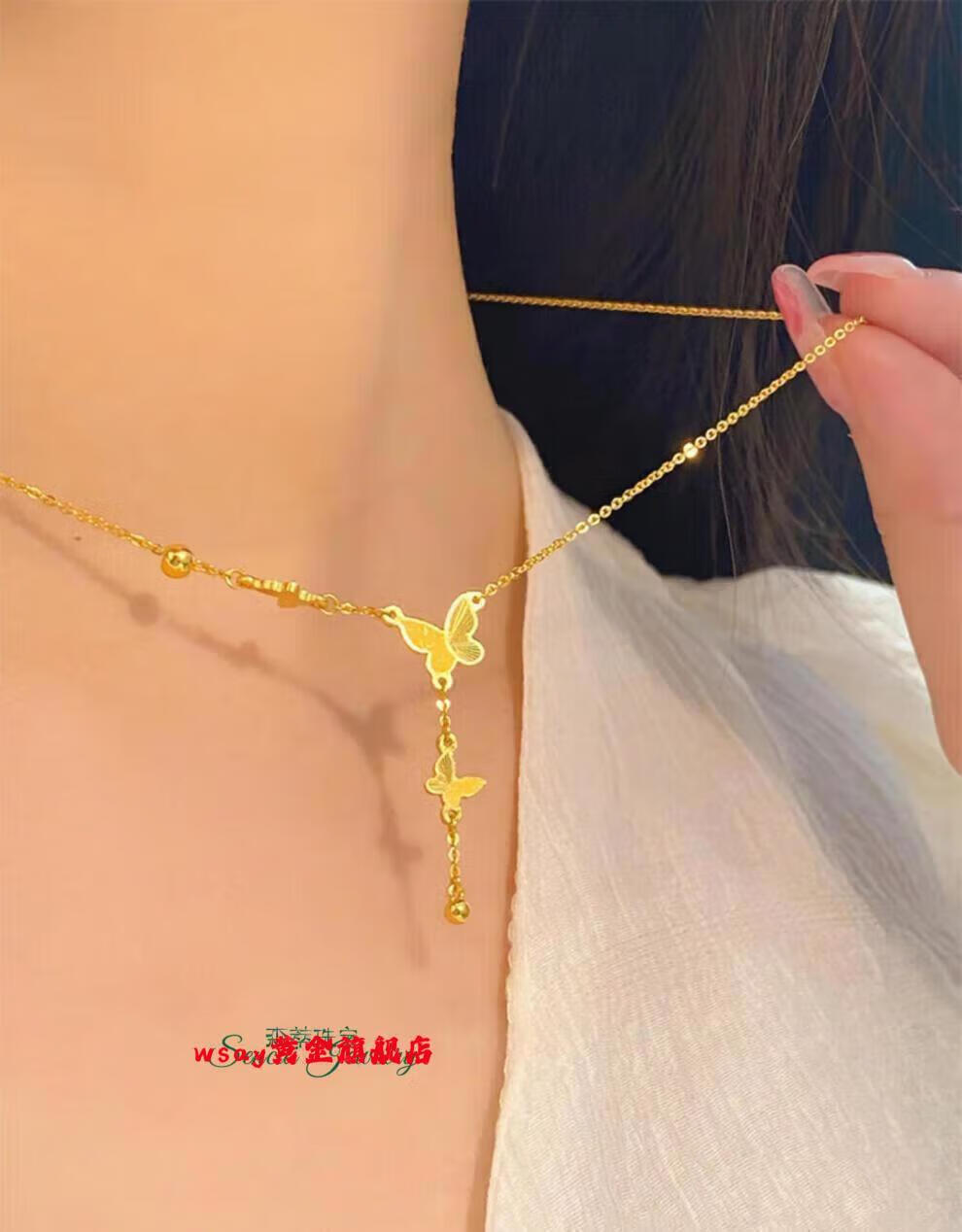 WSAY-Butterfly Necklace Gold Tassel Gold Gold Colorless Clavicle Chain Fashion Simple Free Tassel Butterfly Necklace Supermarket