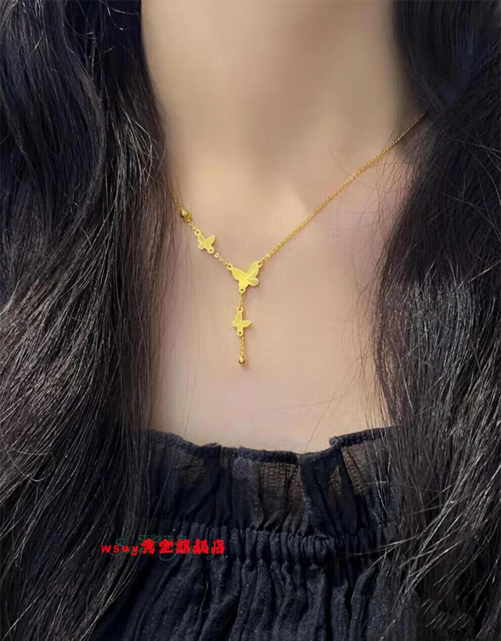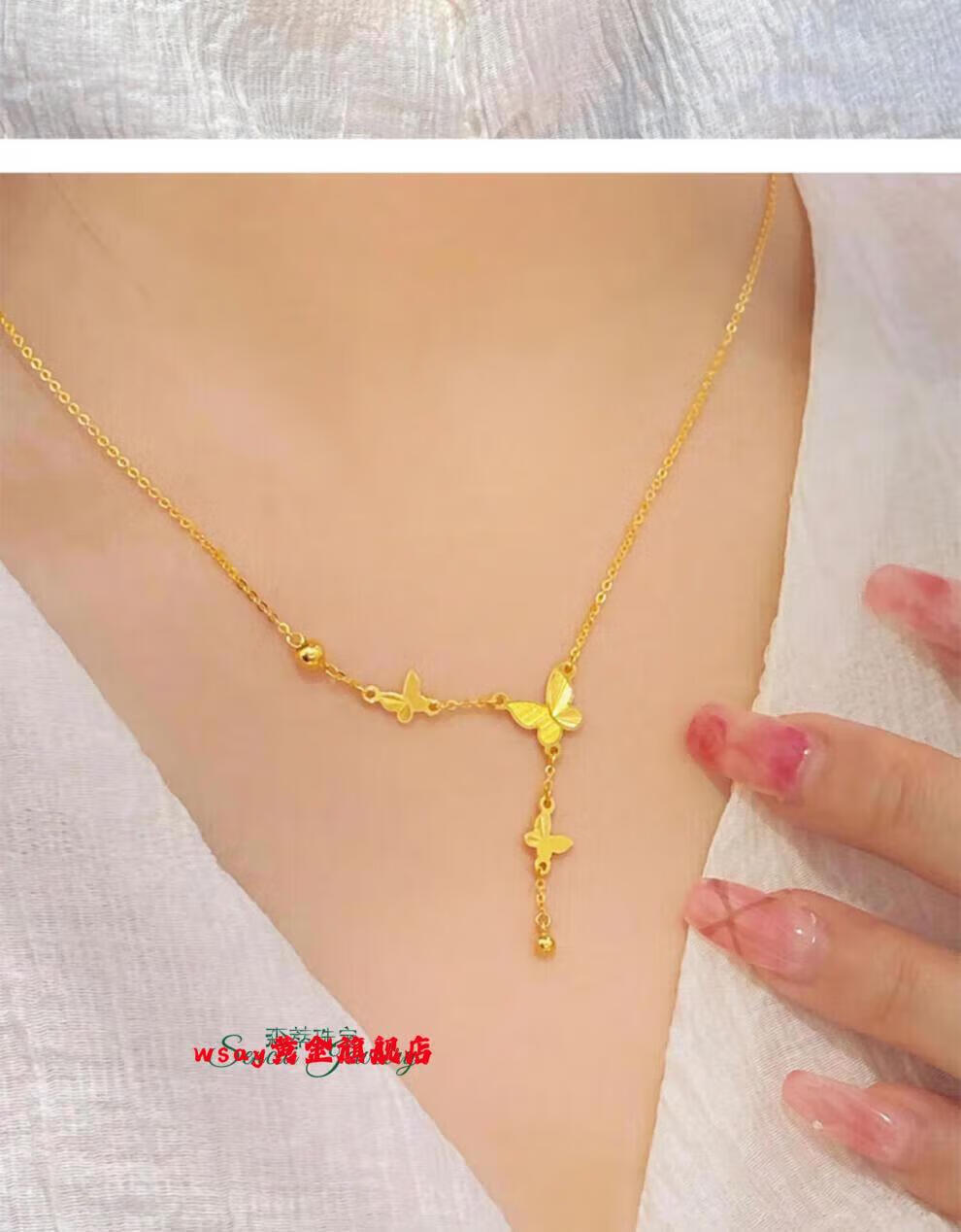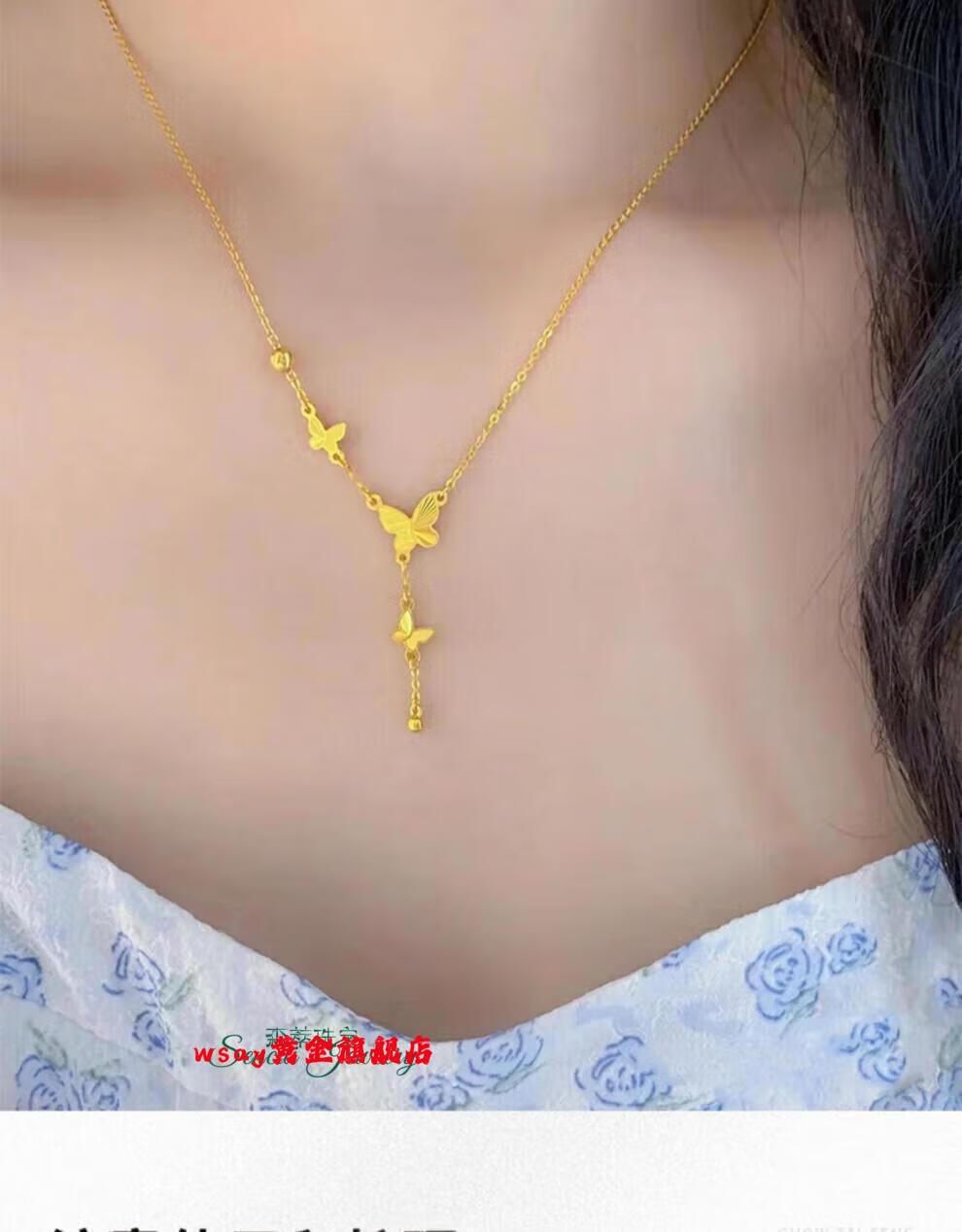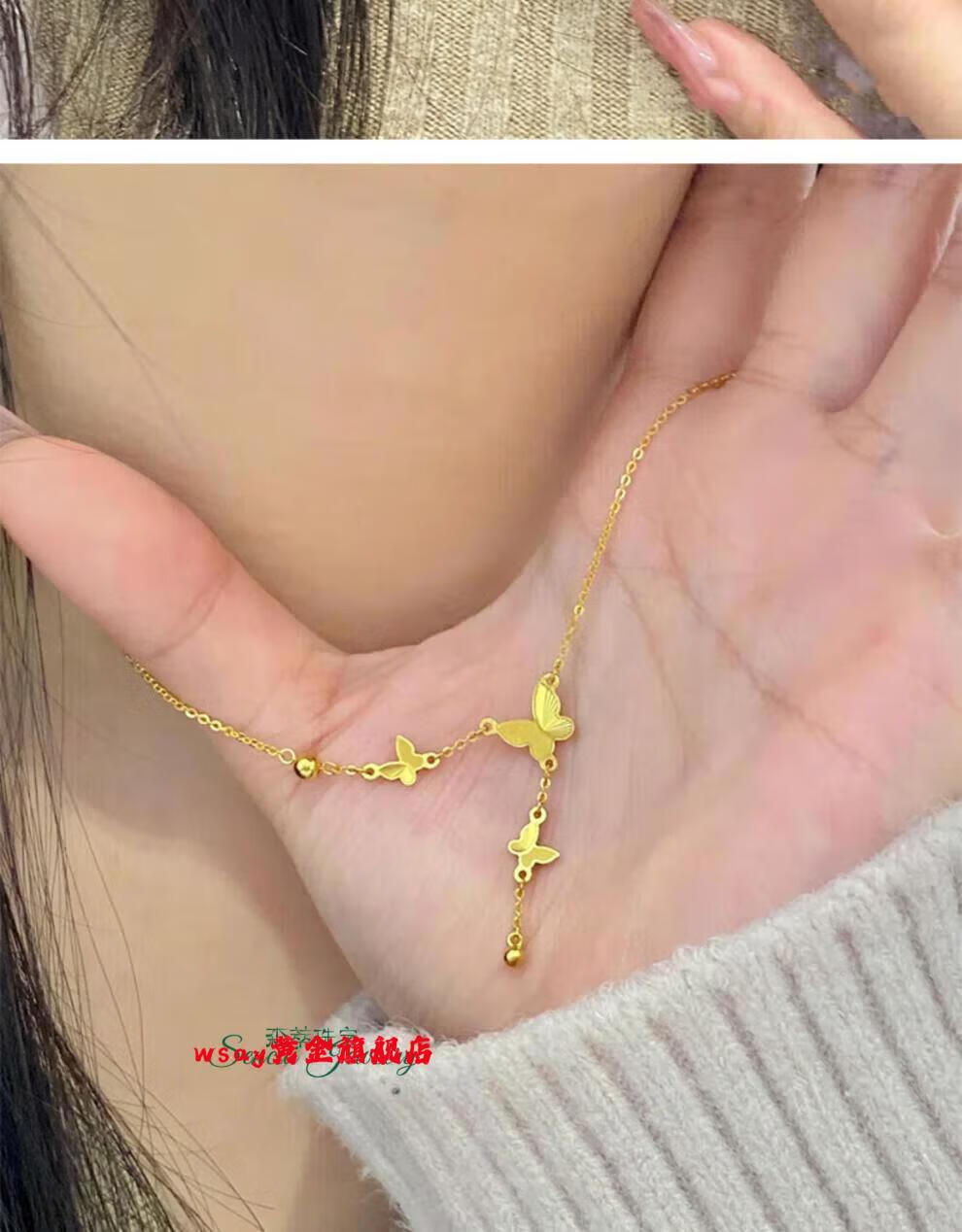 WSAY-Butterfly Necklace Gold Tassel Gold Gold Colorless Clavicle Chain Fashion Simple Free Tassel Butterfly Necklace Supermarket