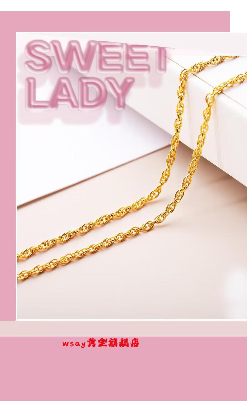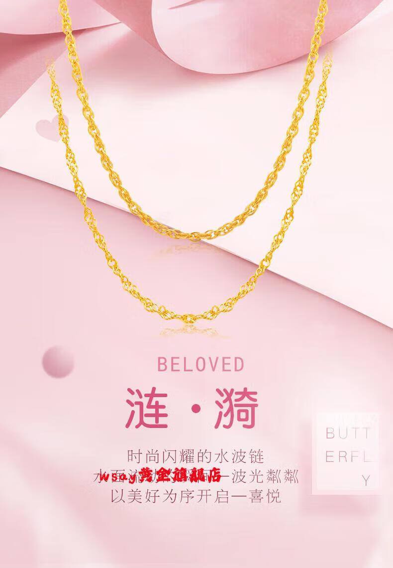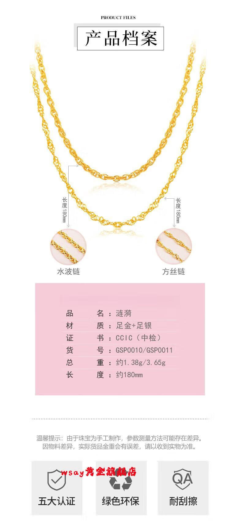 WSAY-Gold covered silver necklace water wave chain gold yellow chain 999 pure gold women's clavicle chain Chopard chain hanging counter GSP0011-2 water wave chain chain length about 1