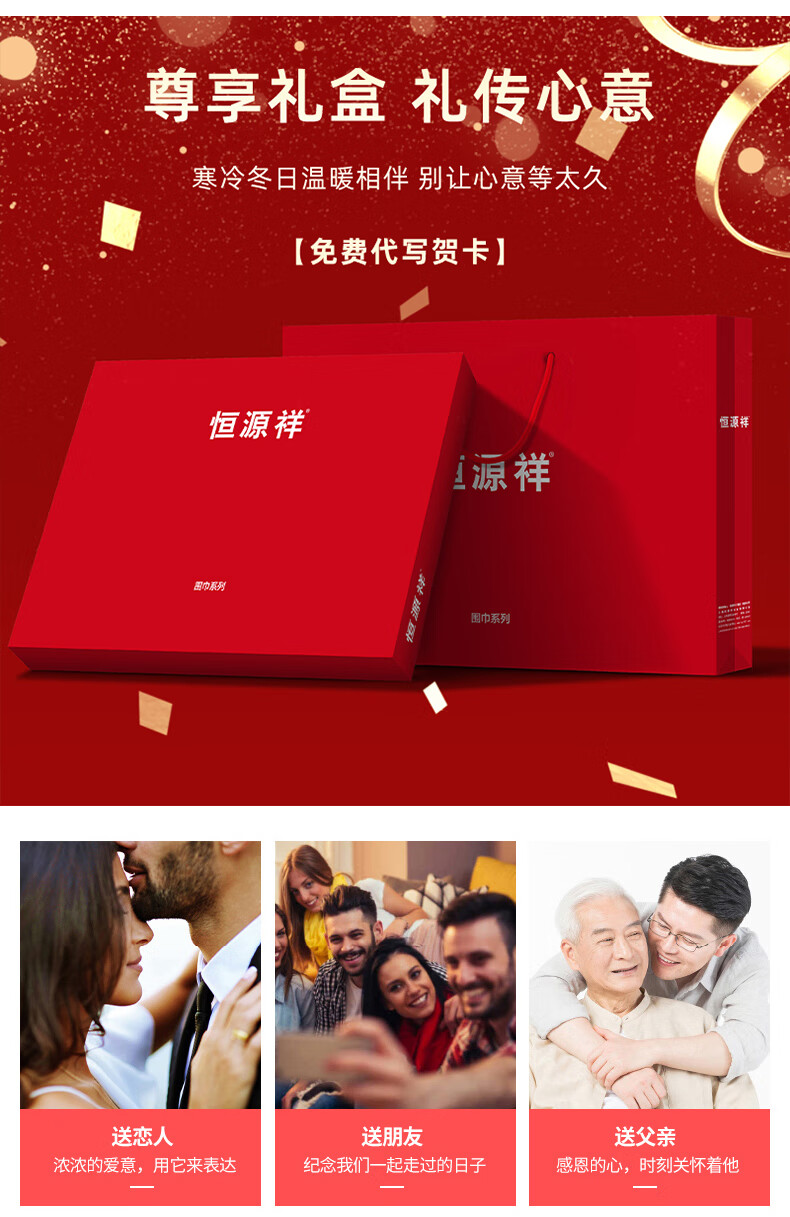 Hengyuanxiang winter scarf men's red thickened versatile high-end red cashmere scarf animal year warm birthday gift 6765 Chinese red gift box