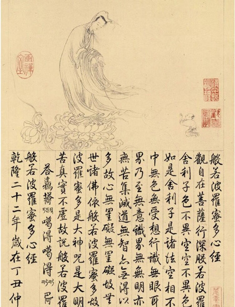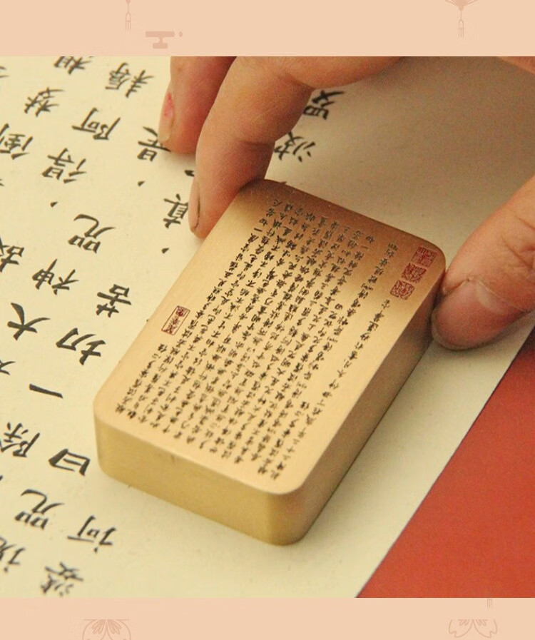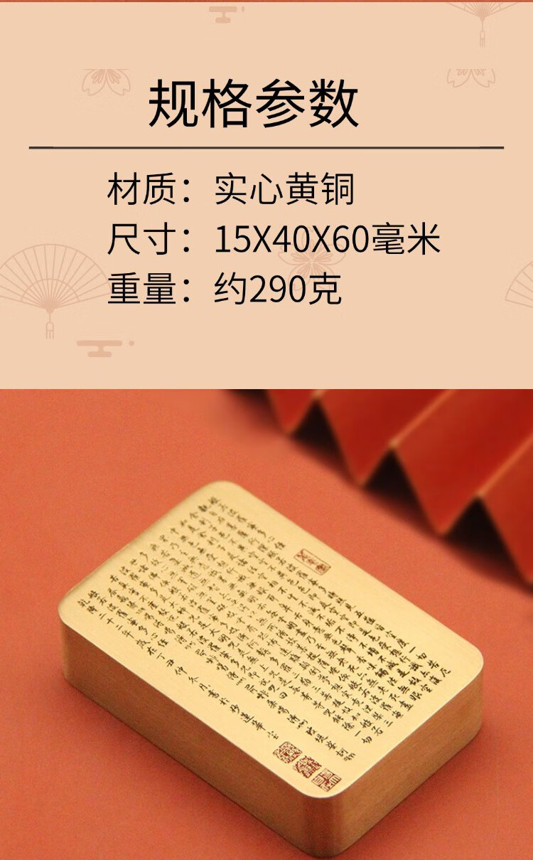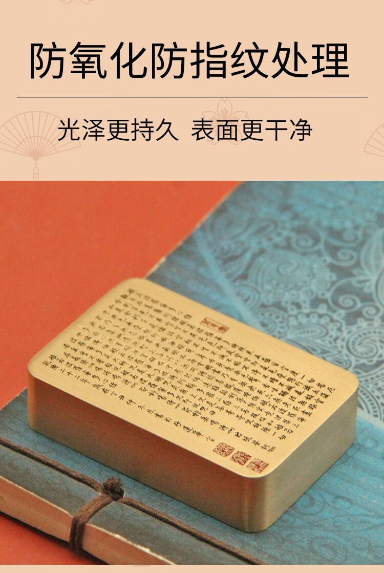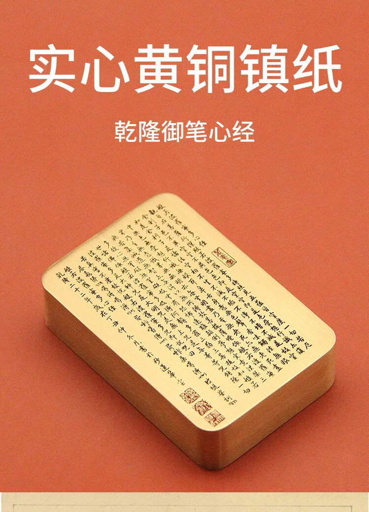 Weiban Emperor Qianlong's Imperial Pen Master Statue and Heart Sutra Diagram Brass Paperweight Four Treasures of the Study Supplies Calligraphy Pressing Paper Cultural and Creative Gifts Calligraphy Ruler Qianlong Imperial Pen Heart Sutra Rectangular Brass Paperweight