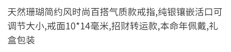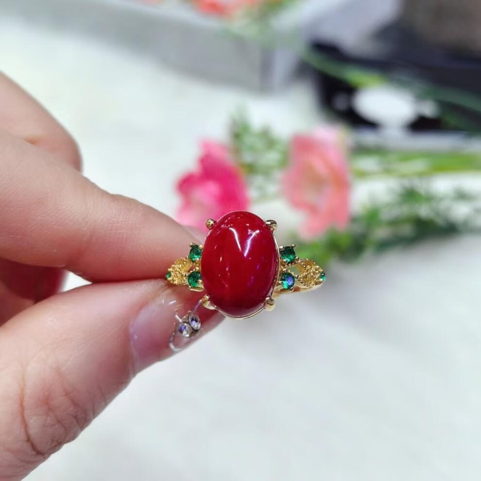 Sanskrit-made natural coral cabochon, simple and versatile ring, sterling silver inlaid with live mouth design, coral ring 99642