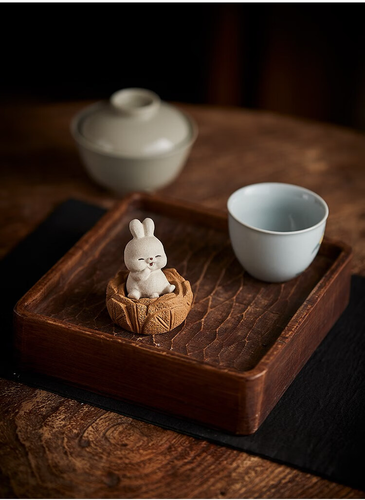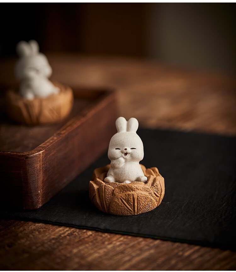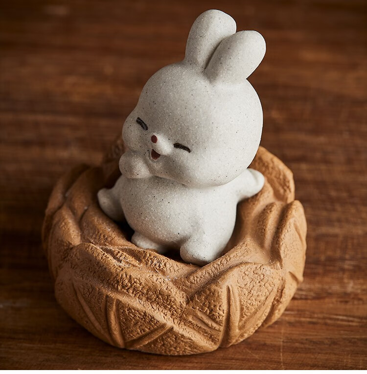 Yixing Zisha Rabbit Tea Pet Cabbage Sitting on the Floor to Make Money White Rabbit Tea Play Can Raise Tea Tray Cute Retro Ornament 1 Sitting on the Floor to Make Money