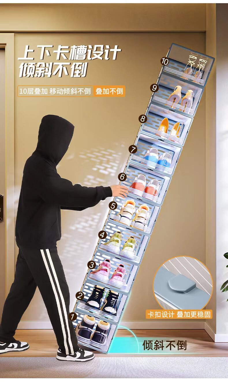 Shoe box storage box transparent thickened shoe cabinet drawer-type folding indoor dust-proof household doorway space-saving artifact. Each piece can be loaded up to 45 yards. No odor.