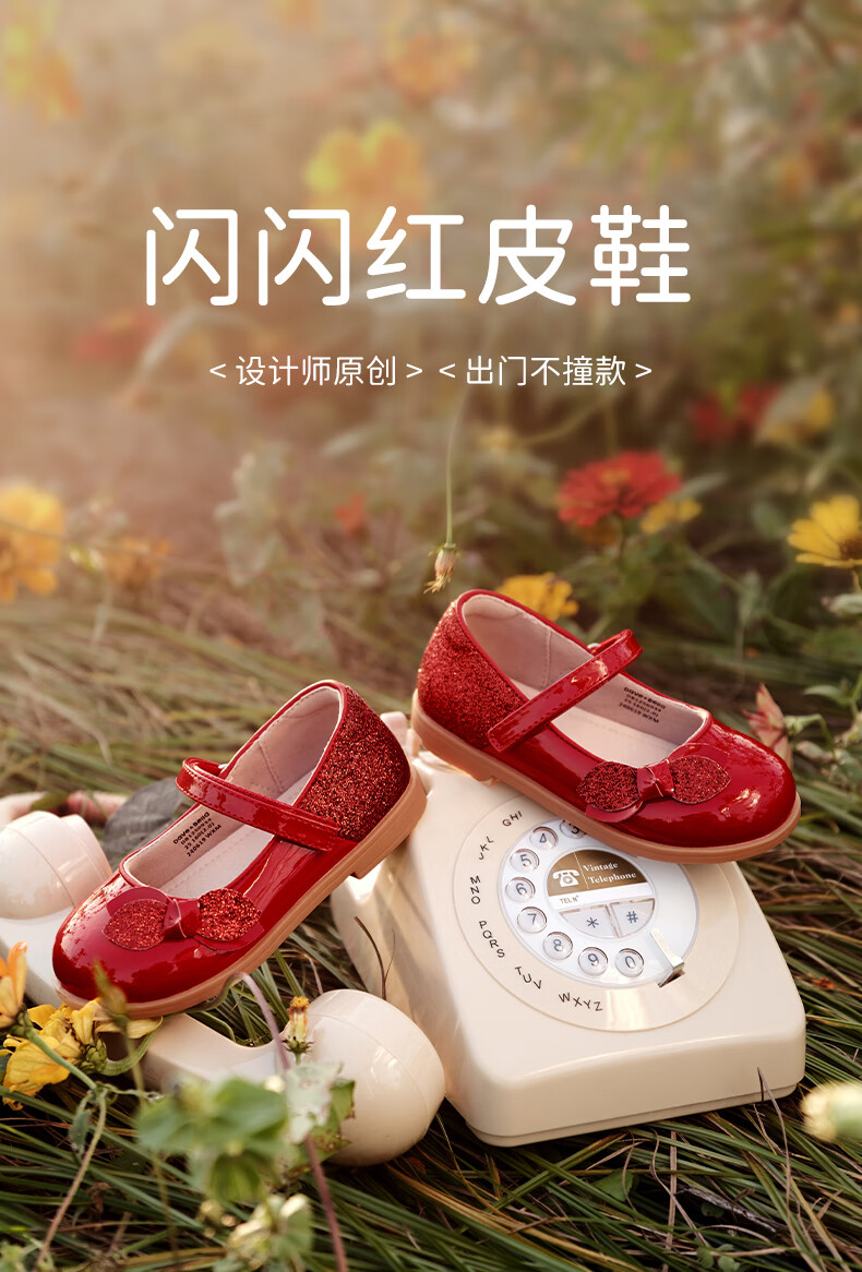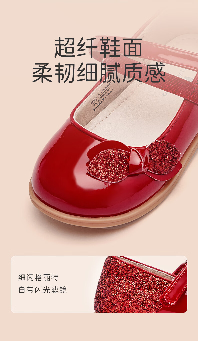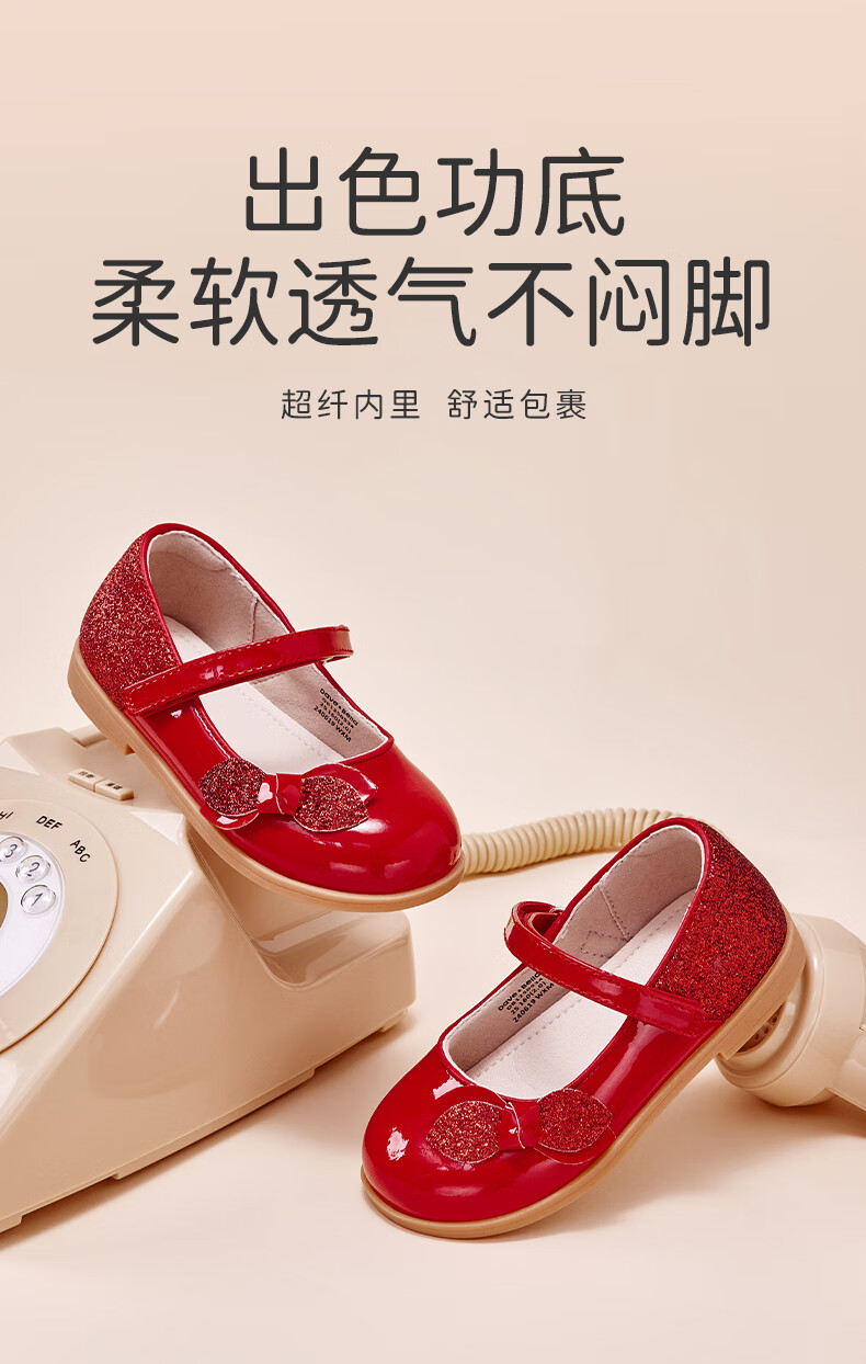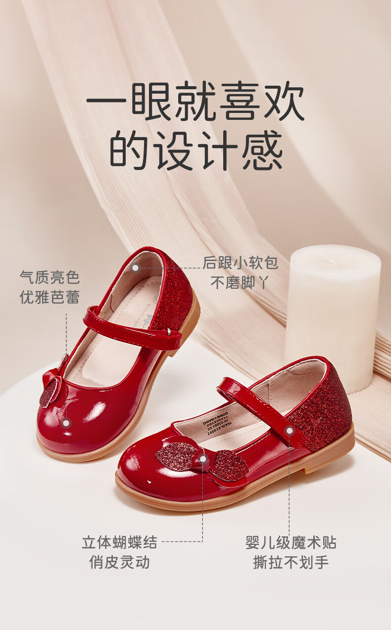 DAVE&BELLA Girls New Year Princess Shoes Children's Red Leather Shoes Children's Performance Shoes Spring New Baby Girls Shoes Red Spot Size 21