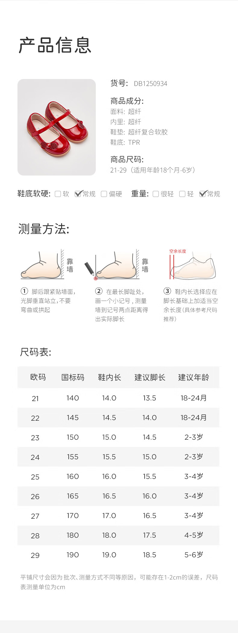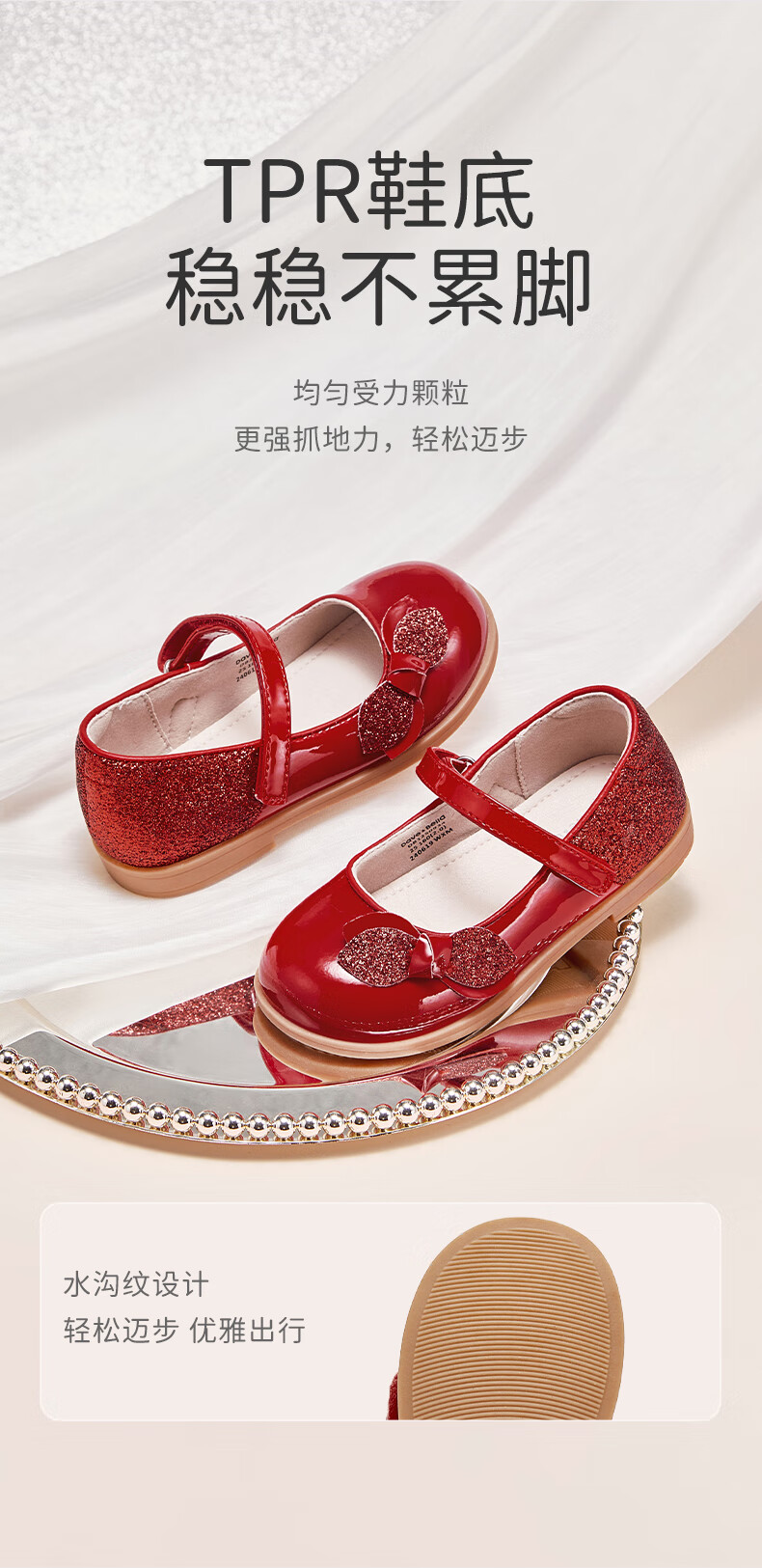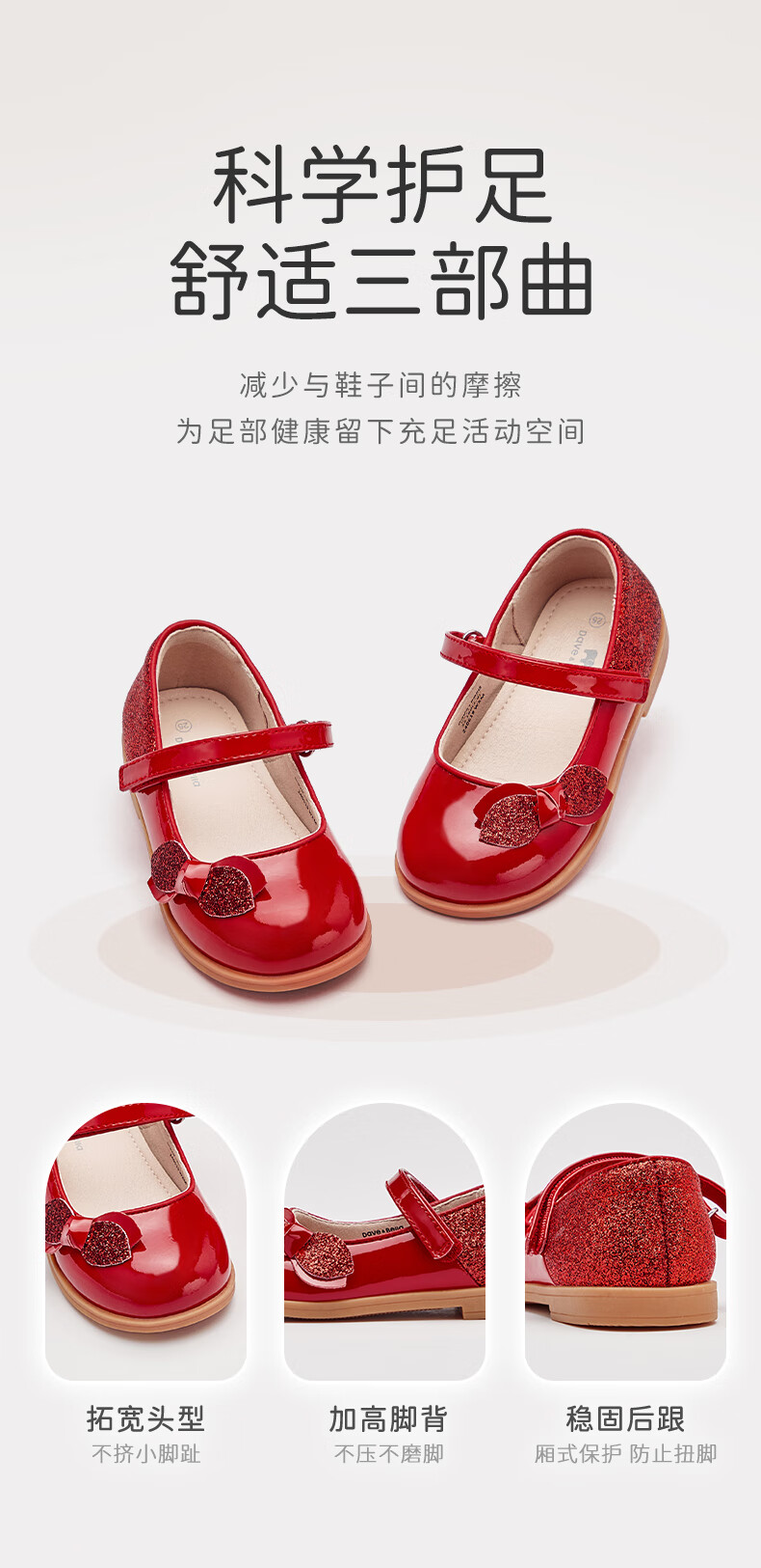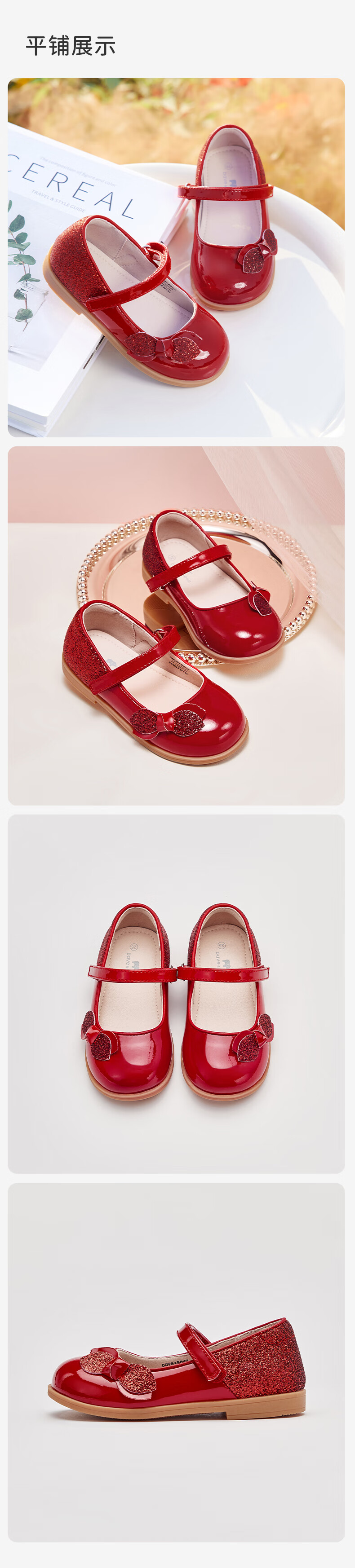 DAVE&BELLA Girls New Year Princess Shoes Children's Red Leather Shoes Children's Performance Shoes Spring New Baby Girls Shoes Red Spot Size 21