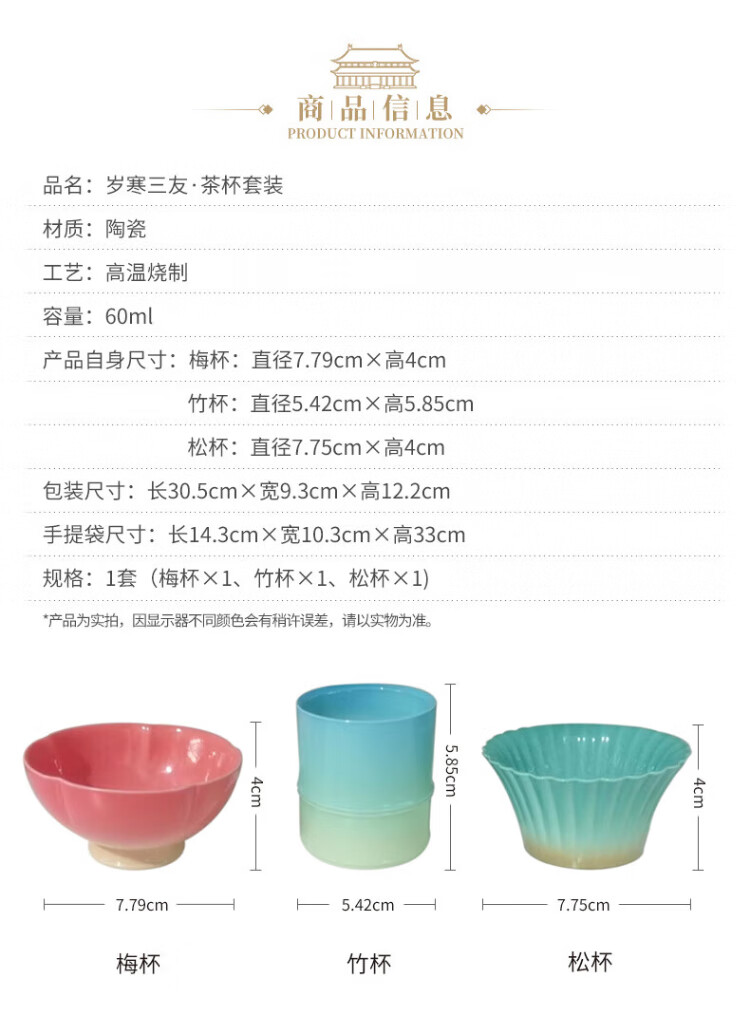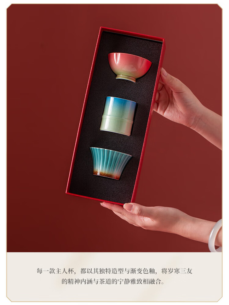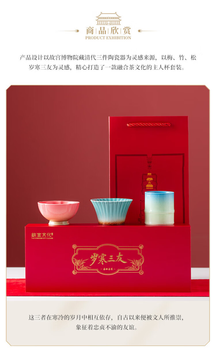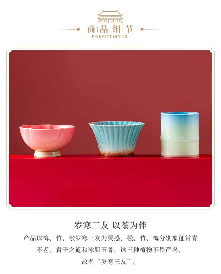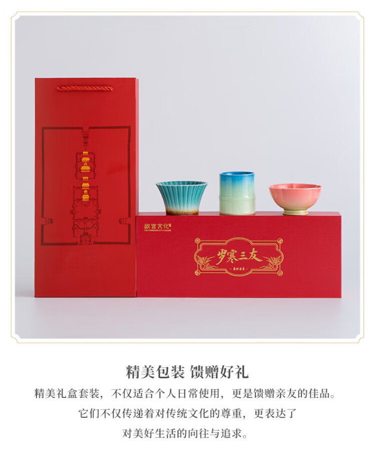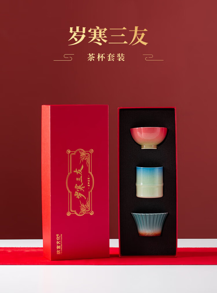 Forbidden City Culture Three Friends of Winter Tea Cup Set Tea Master Cup Ceramic Cup Palace Museum Cultural and Creative Birthday Gift Gift for Elders Gift Box