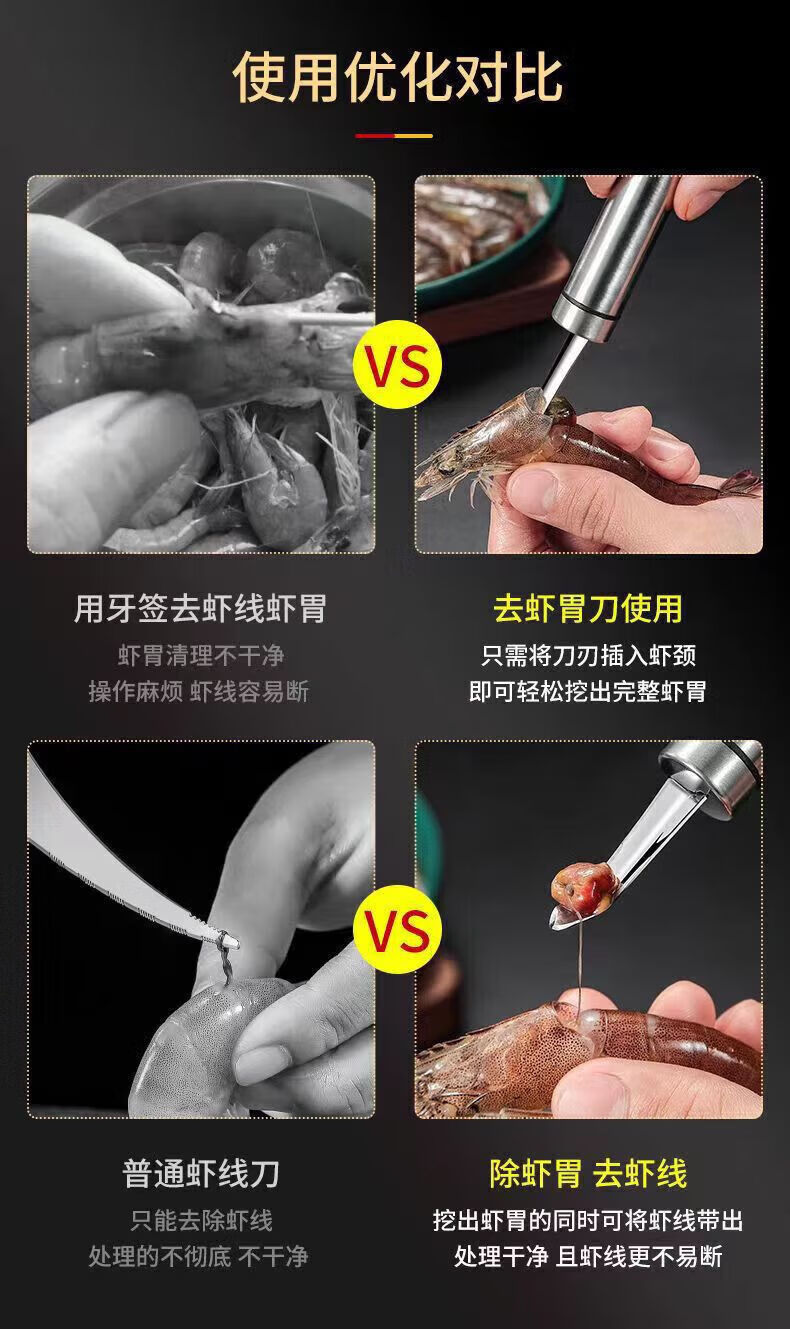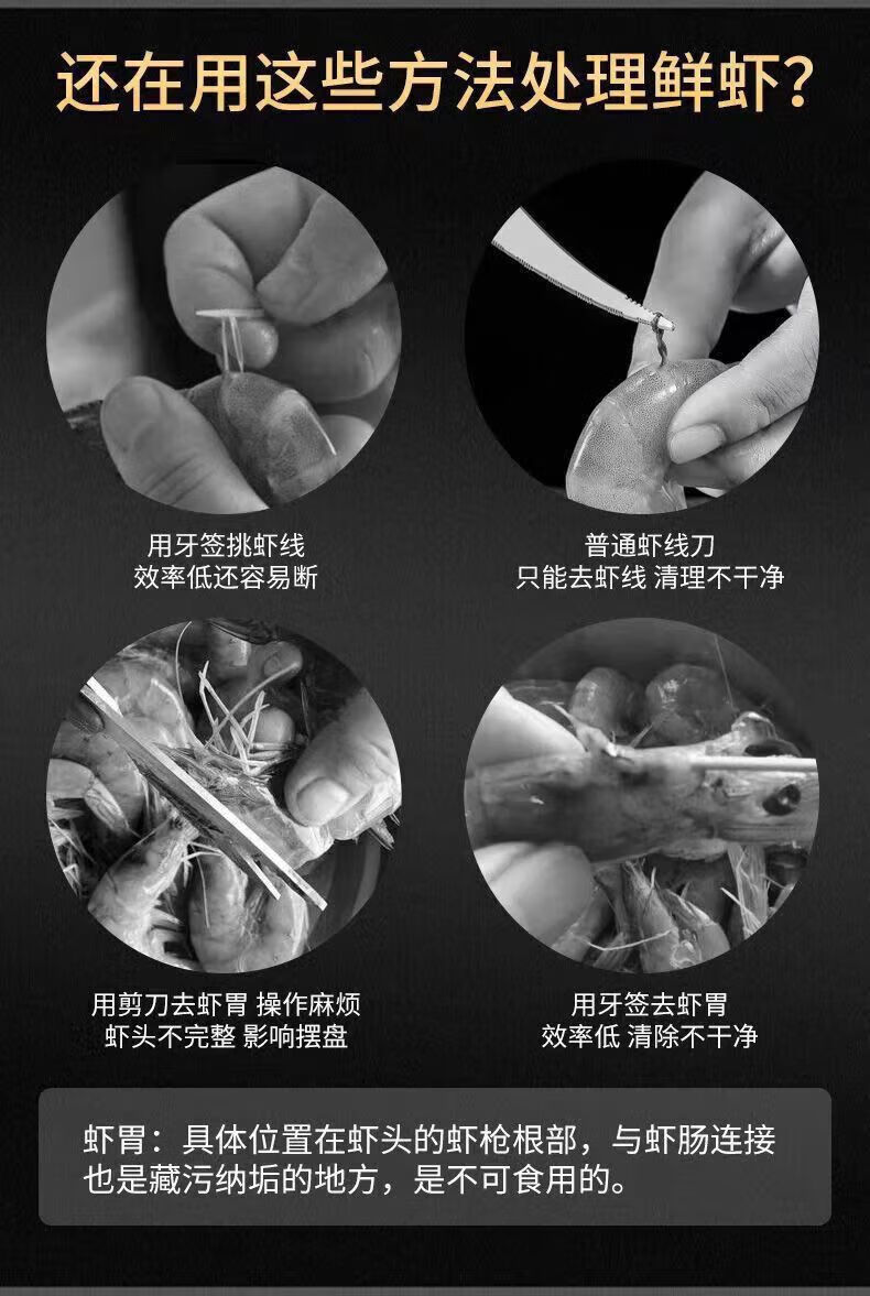 Jidaocook stainless steel shrimp line removal knife digs the shrimp stomach, peels the shrimp shell, takes the shrimp line artifact, picks the shrimp line, opens the shrimp back, removes the longan and cores, removes the shrimp stomach and shrimp line in seconds, upgraded version