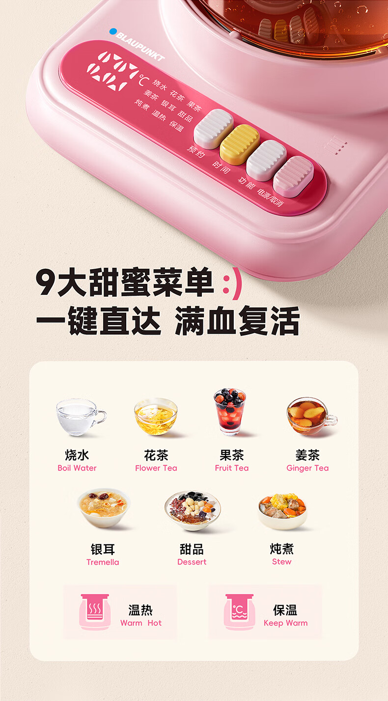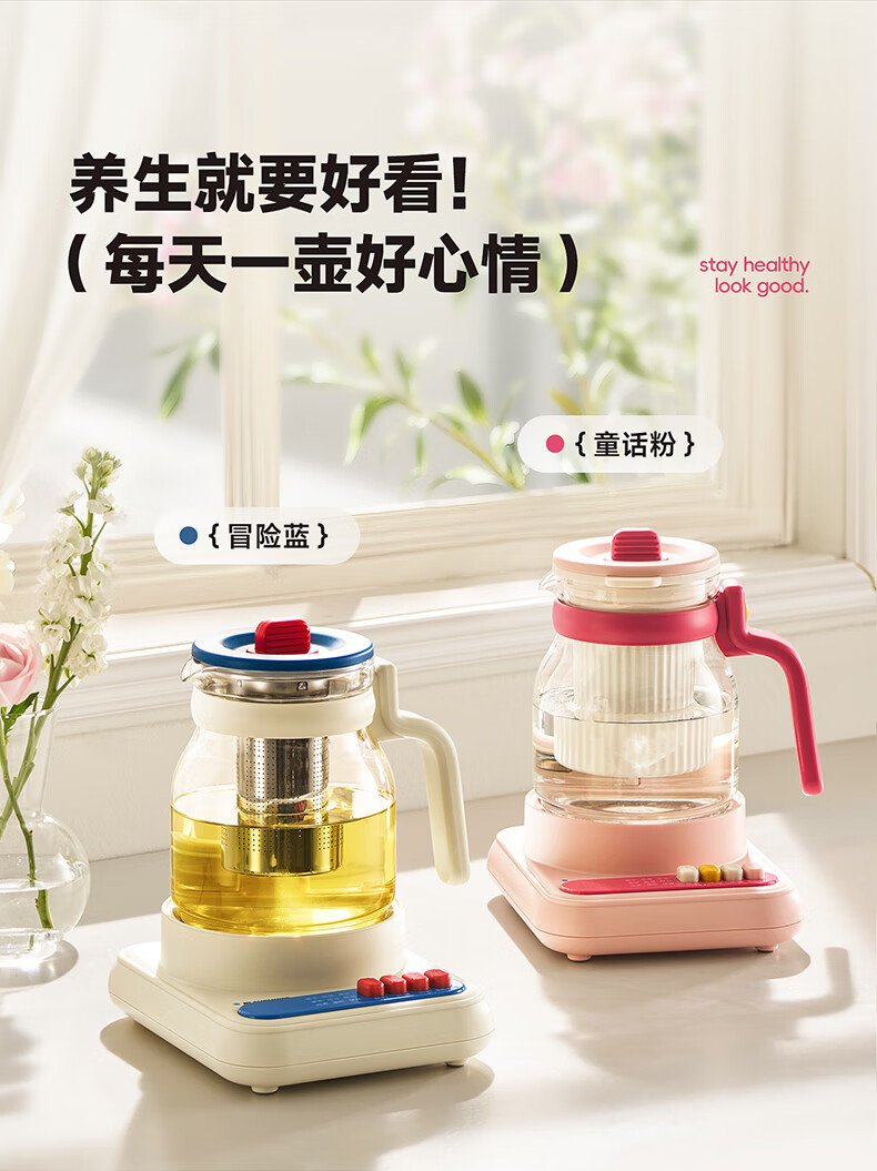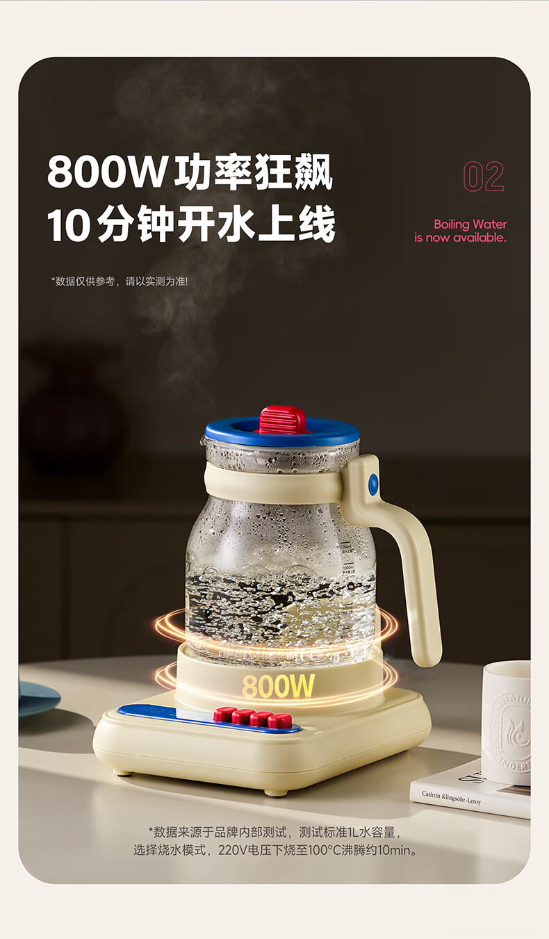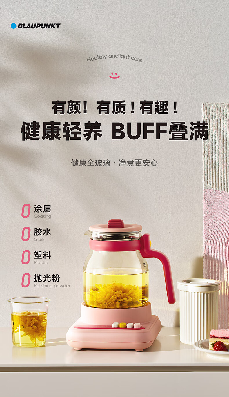 BLAUPUNKT all-glass health kettle, kettle, tea kettle, multifunctional 0-glue split thermostatic kettle, office for one person, household use, high-looking scented tea brewer, anti-paste, anti-spill stewing kettle, fairy powder-tea leakage + stew pot 1.2L, all glass/free one-year glass insurance