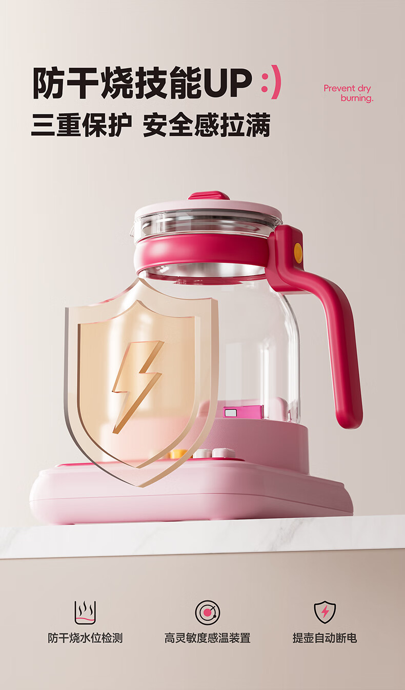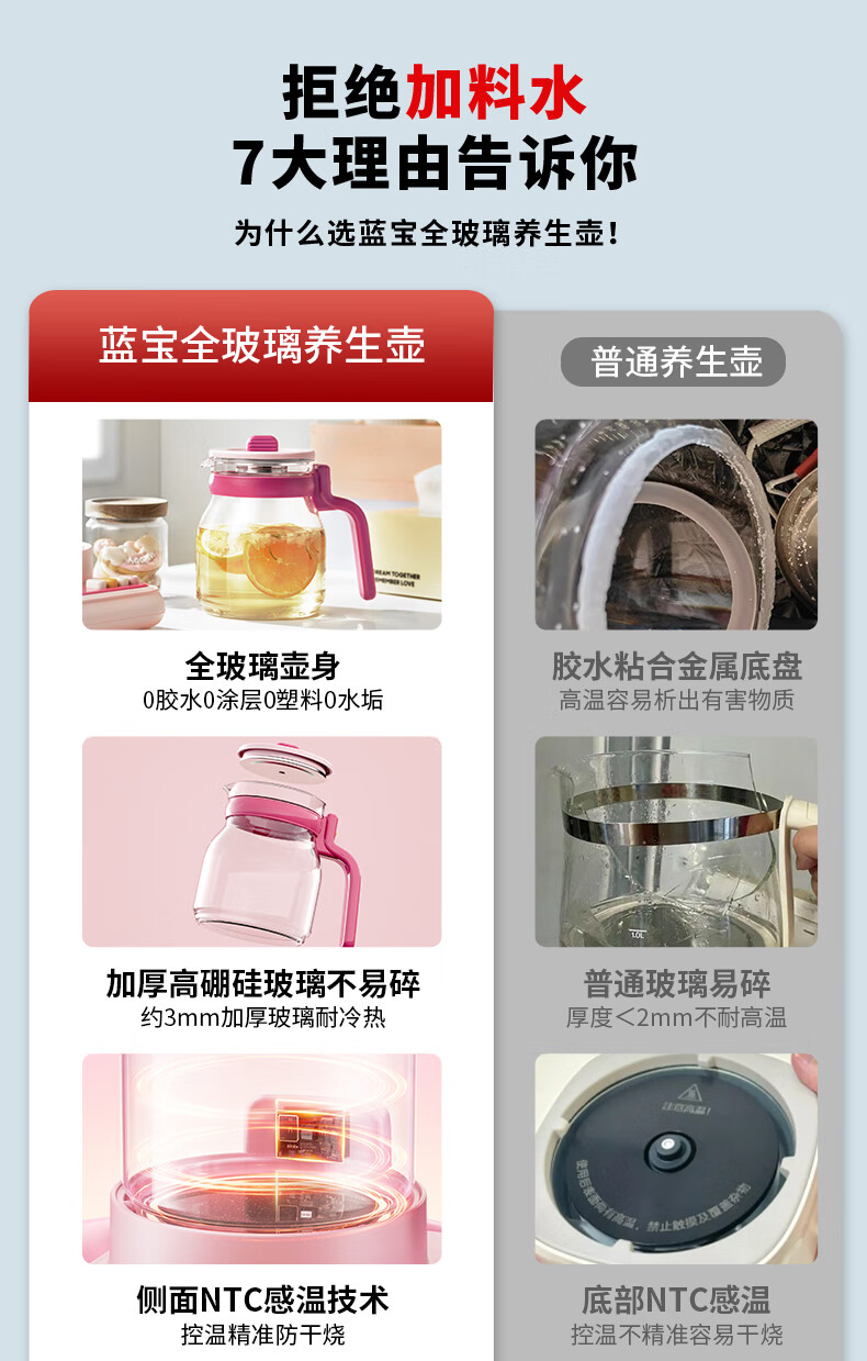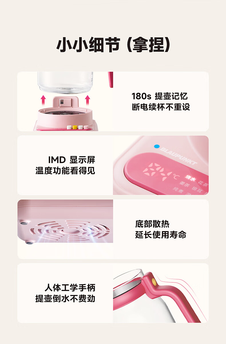 BLAUPUNKT all-glass health kettle, kettle, tea kettle, multifunctional 0-glue split thermostatic kettle, office for one person, household use, high-looking scented tea brewer, anti-paste, anti-spill stewing kettle, fairy powder-tea leakage + stew pot 1.2L, all glass/free one-year glass insurance