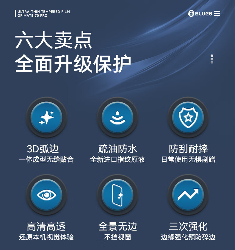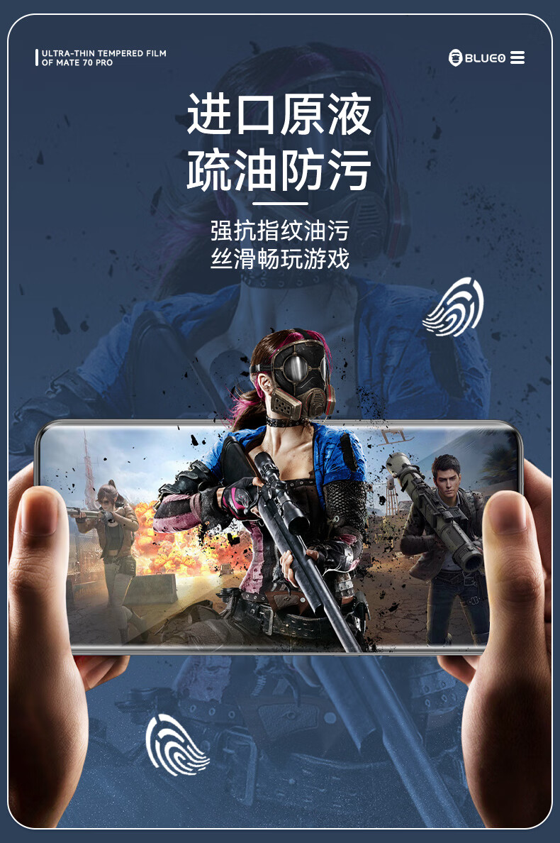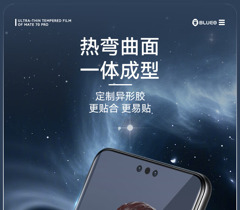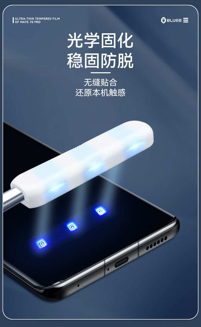 BLUEO Blue Orangutan is suitable for Huawei mate70pro/pro tempered film mate70pro mobile phone film fully transparent UV curved surface high-definition no black edge anti-fingerprint anti-fall protective film Huawei Mate70Pro/Pro+/Premium Edition