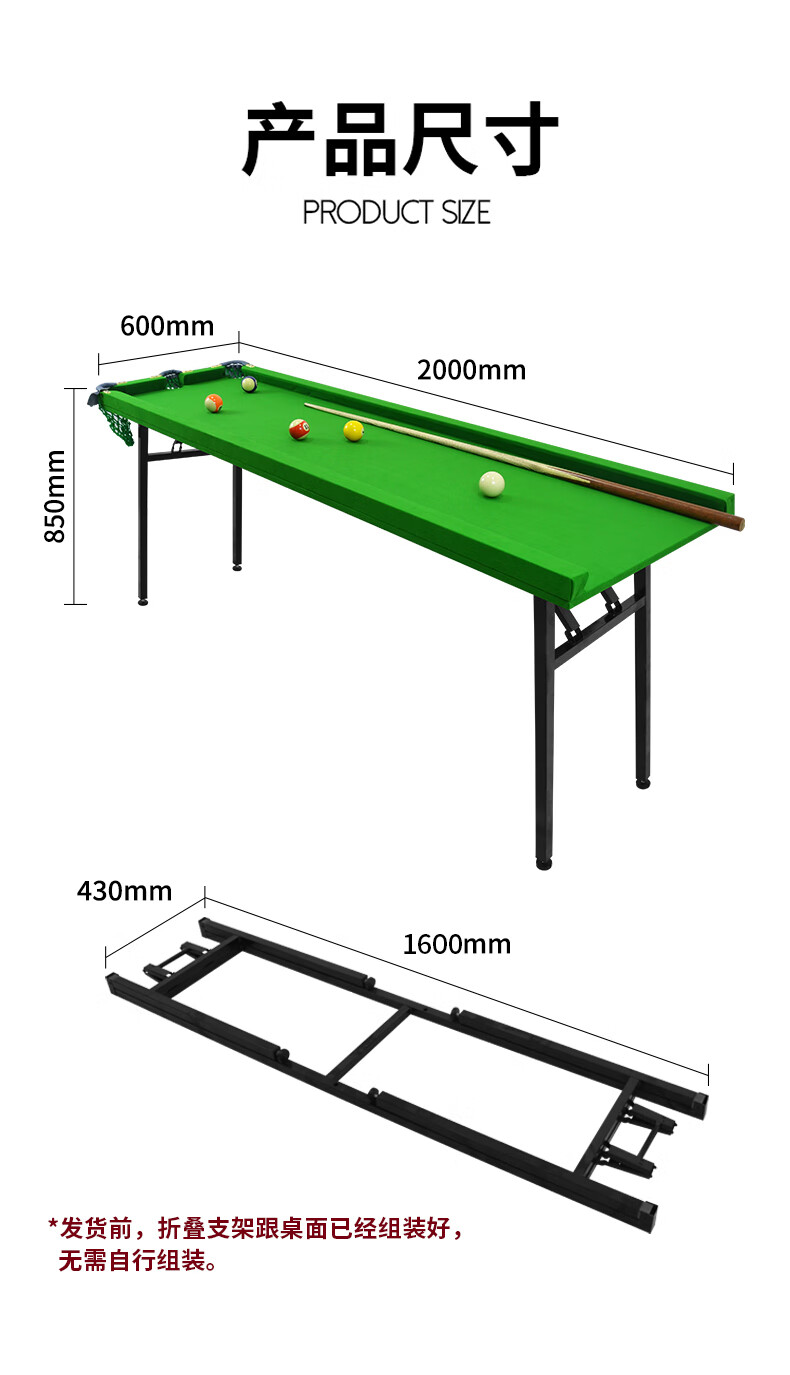Lito five-point pool table home training with edge tape three-hole snooker pocket foldable training table 200cm with edge tape table + bracket 5 balls and 1 pole