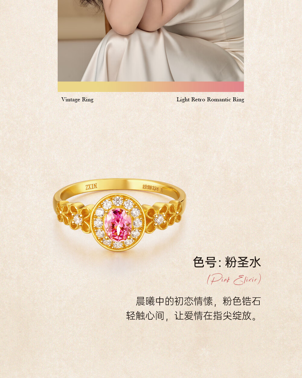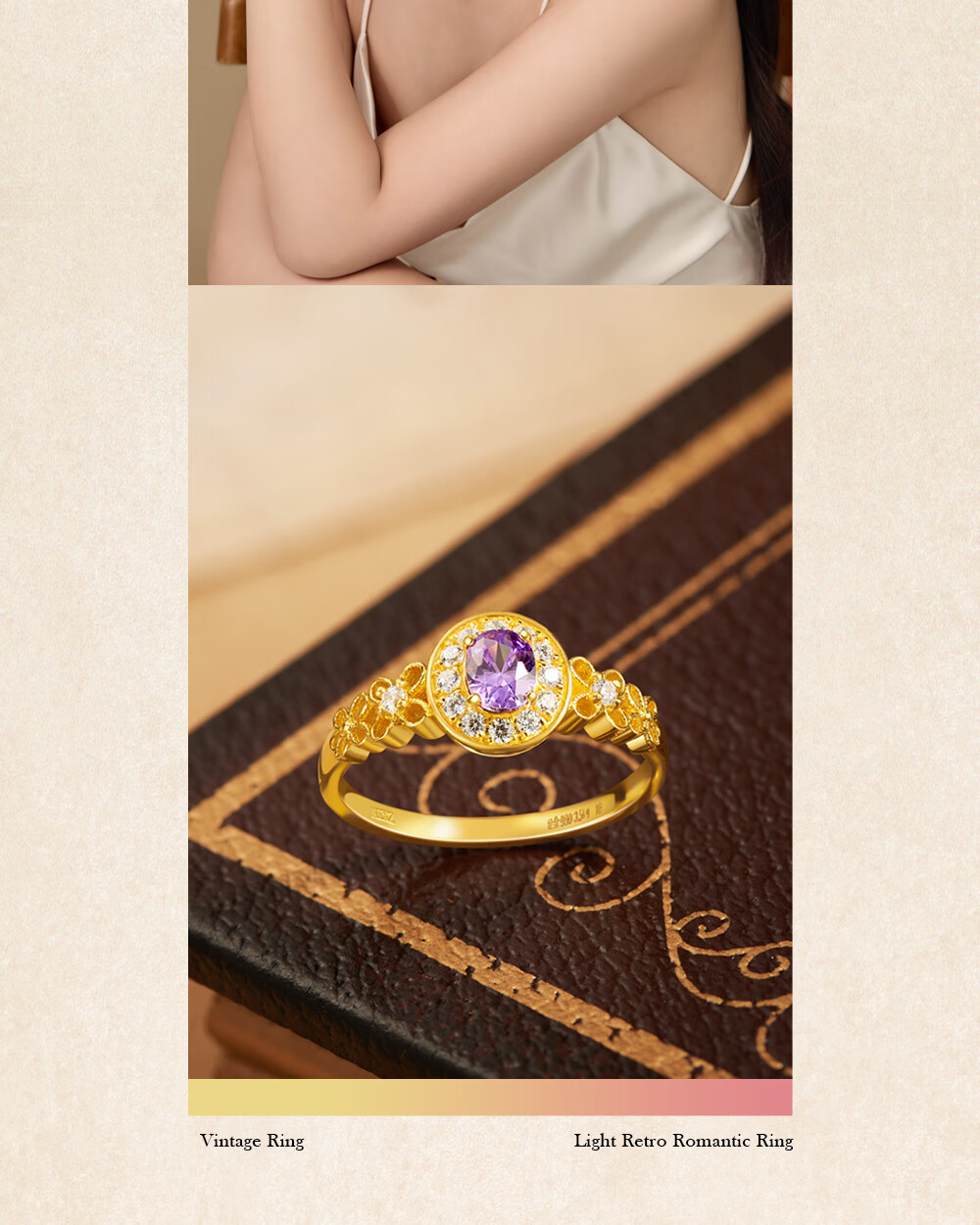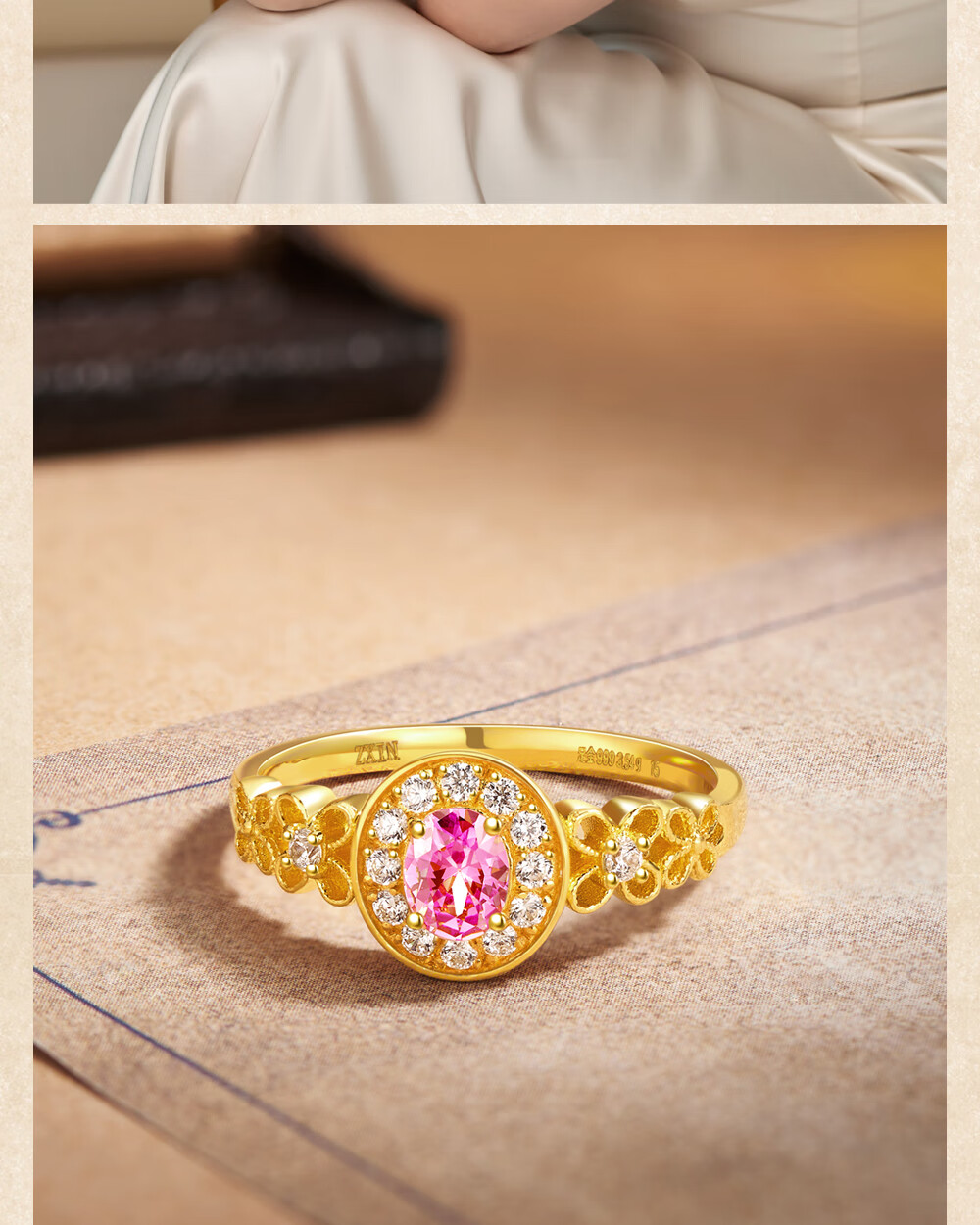Zhongxin Jewelry Small Sugar Cube Series Gold Ring Fairy Ice Translucent Purple Pink Zircon Inlaid Pure Gold Jewelry for Your Girlfriend Rock Sugar Pink Gold Weighs 3.3 Grams (15 Circle Size)