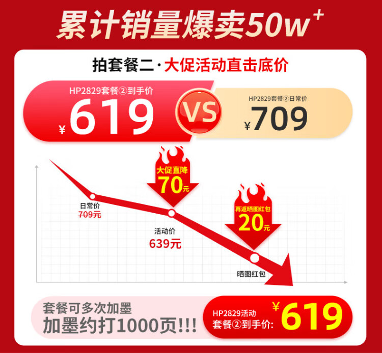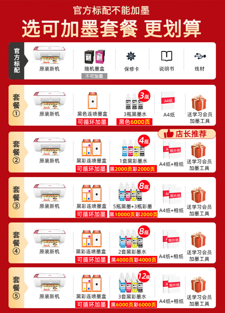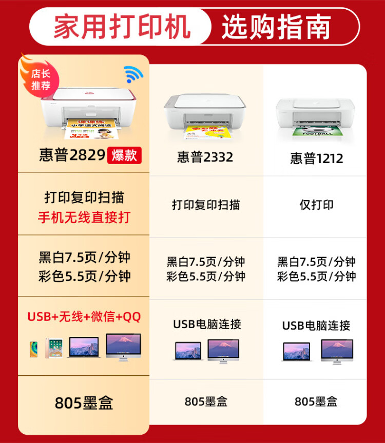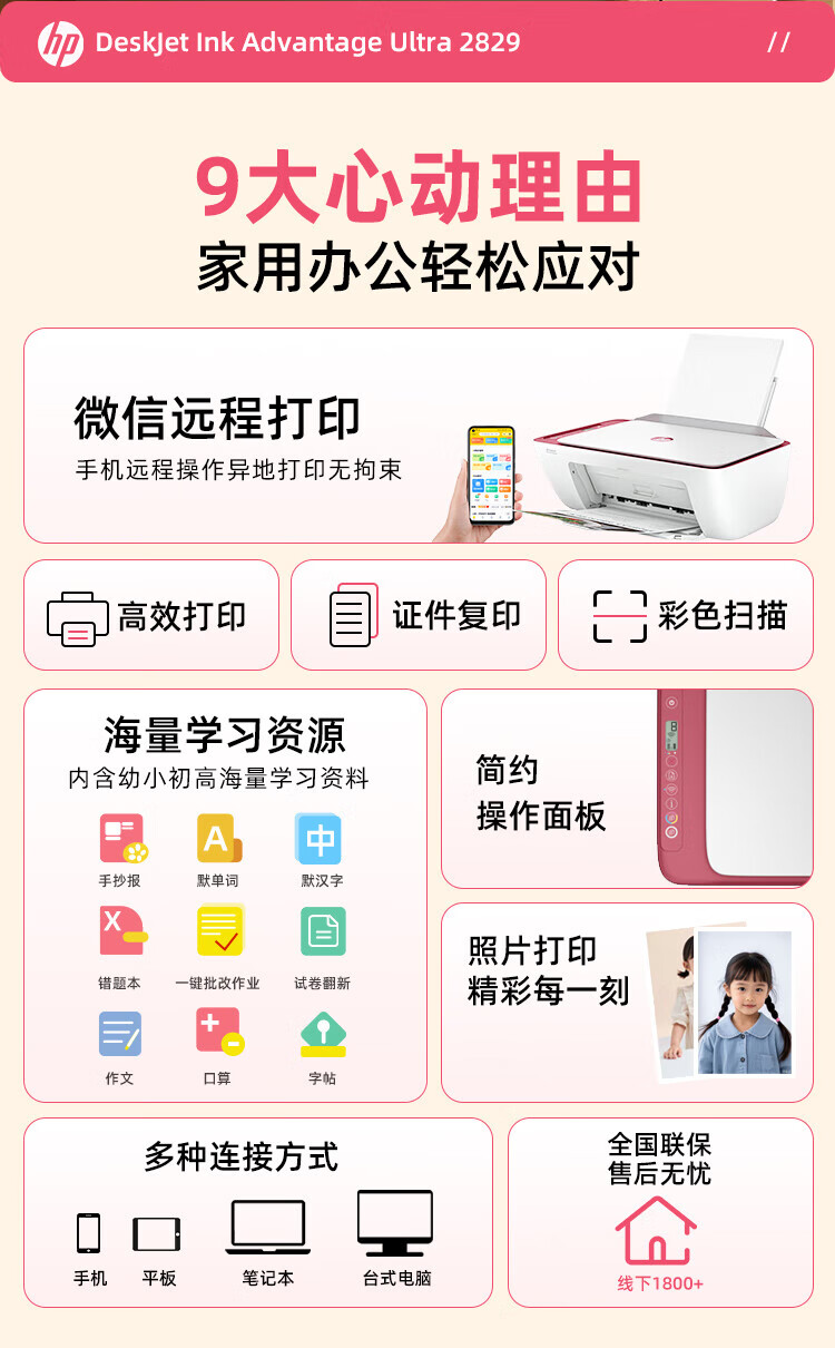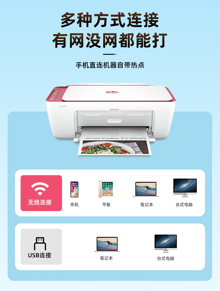 HP 2829/2729/2332 color printer student wireless home office copy and scan inkjet all-in-one small photo A4 paper 2829 newly launched mobile phone computer wireless connection + printing copy scanning official standard (standard ink cartridges cannot be refilled, package packages can be refilled)