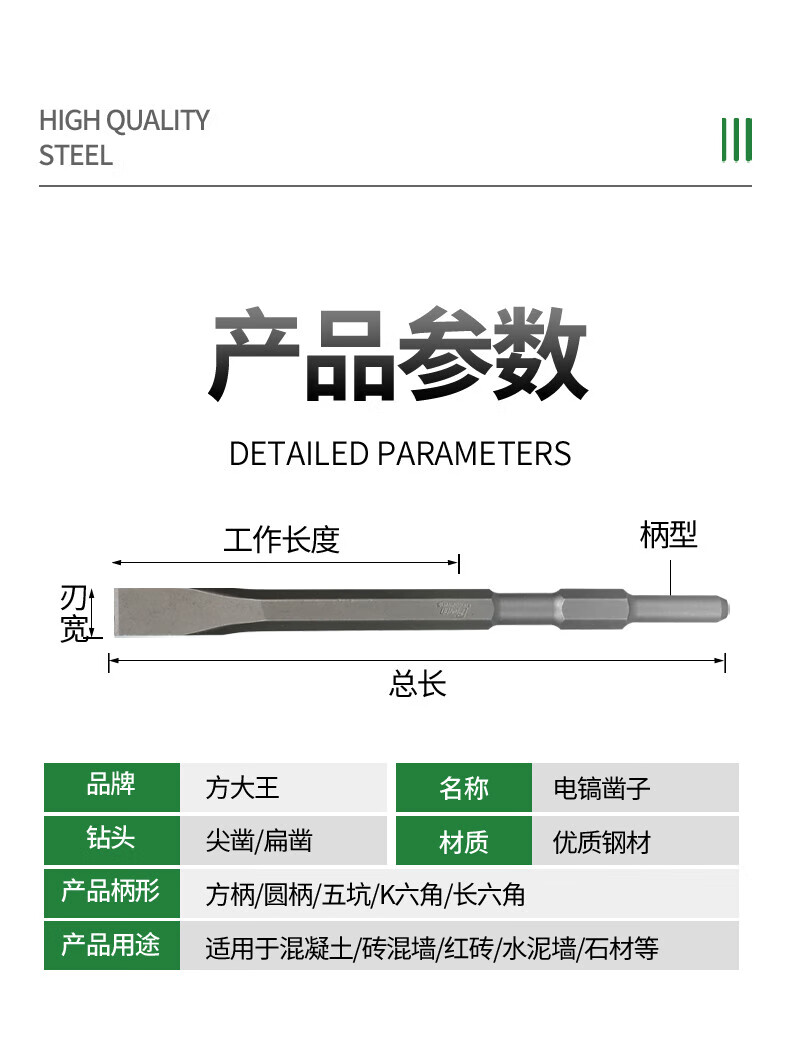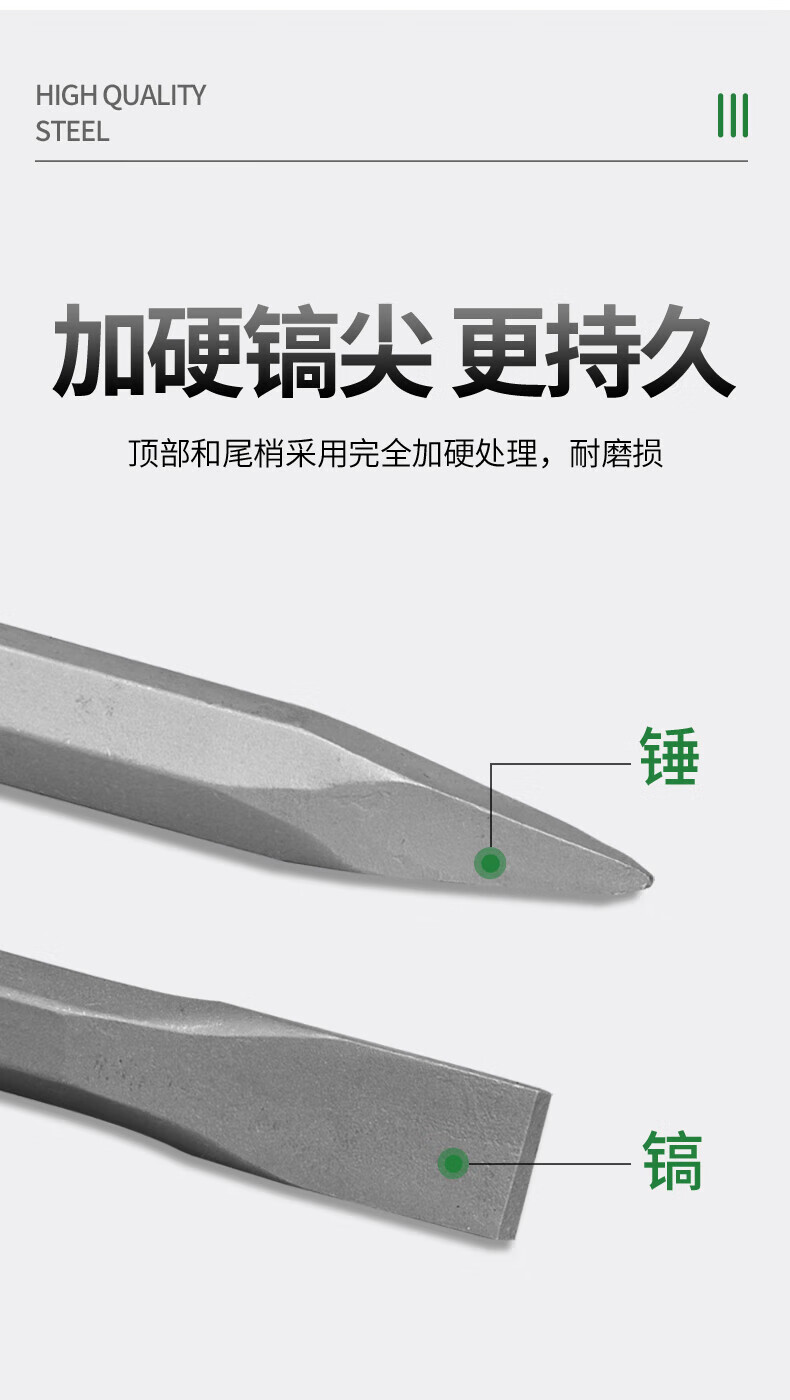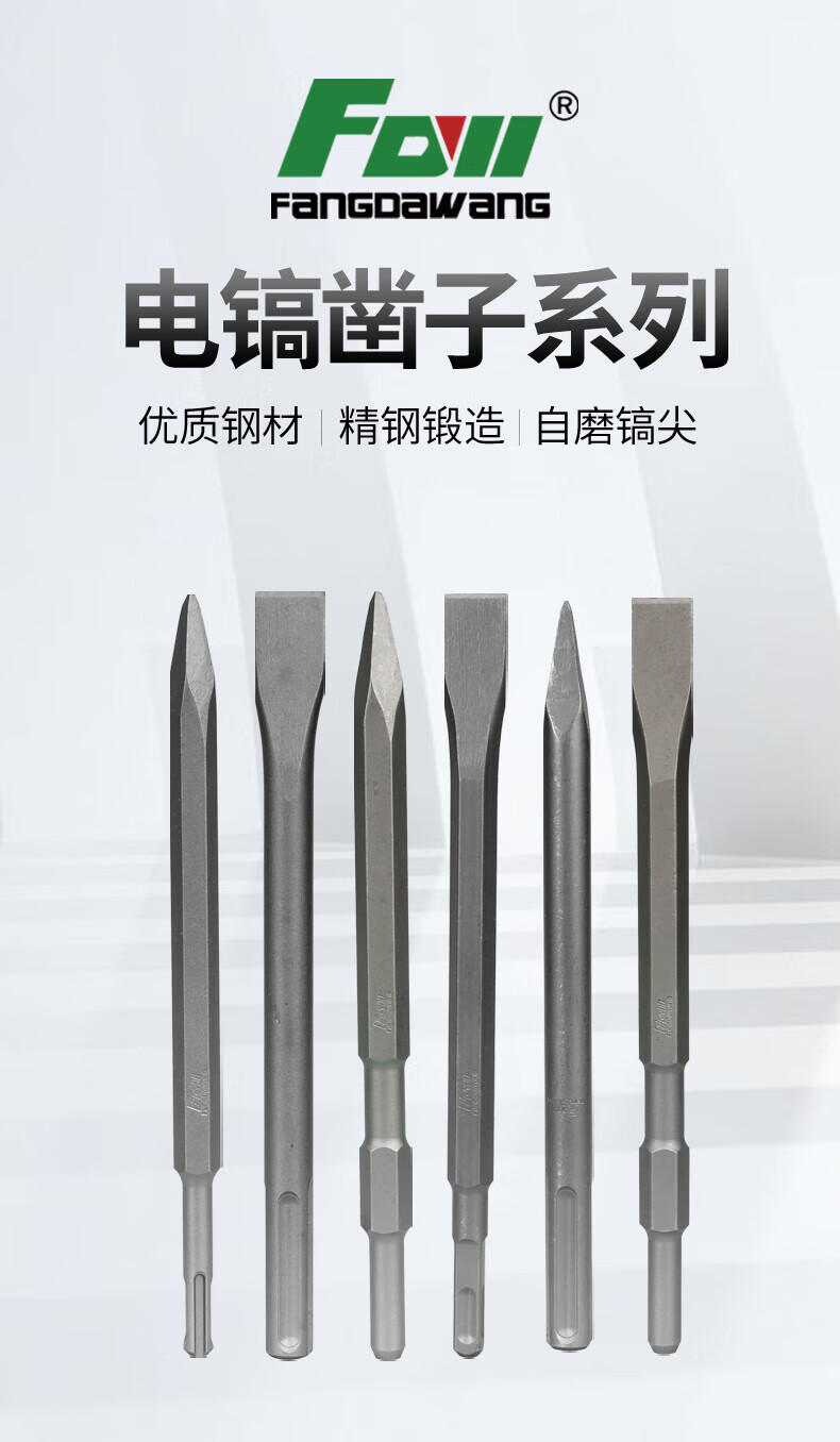 Fang Dawang electric pick chisel pointed chisel flat chisel electric hammer square handle round handle hexagonal five-pit pick hammer impact concrete pick demolition K hexagonal handle 17*280mm sharp chisel