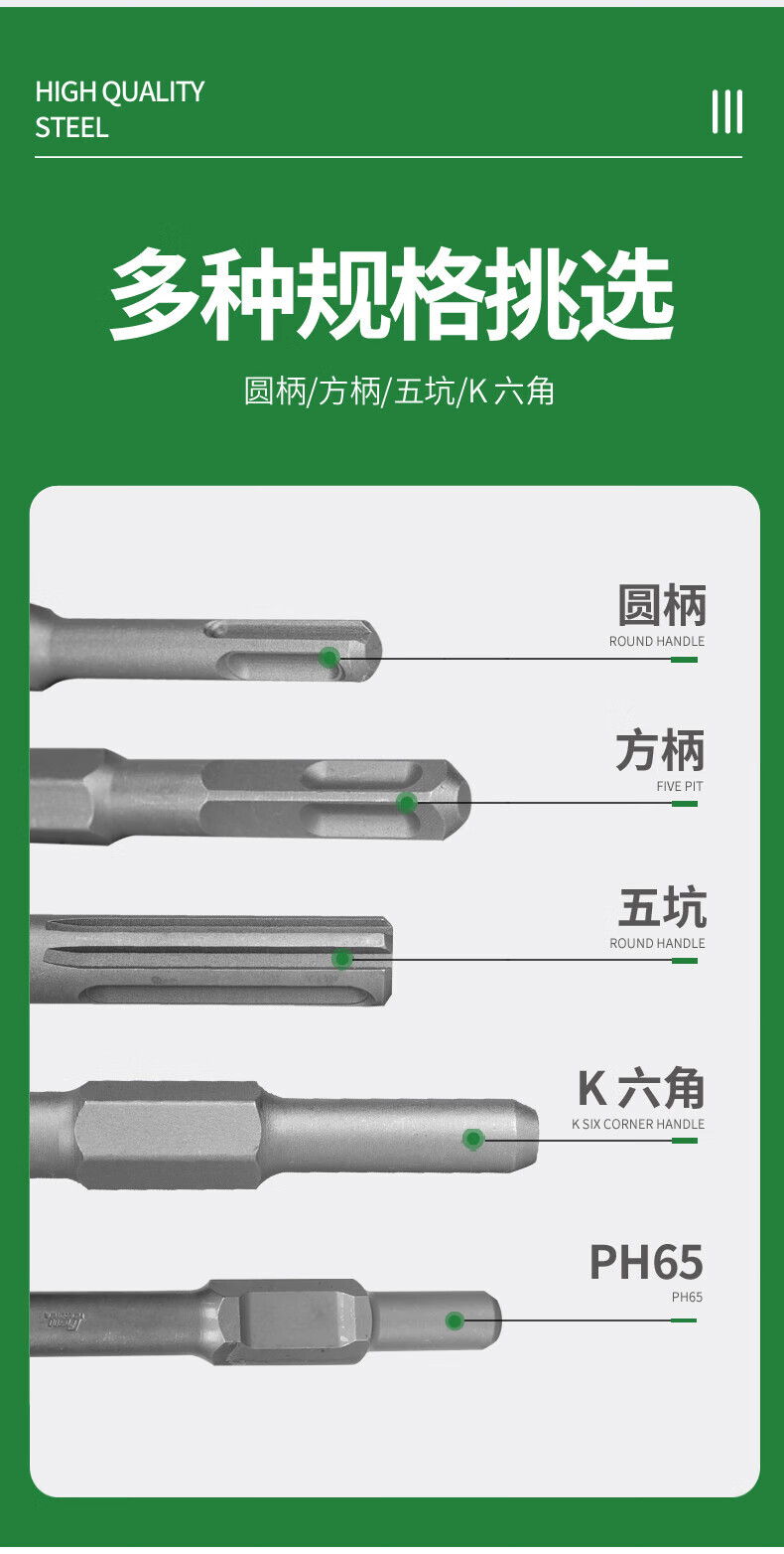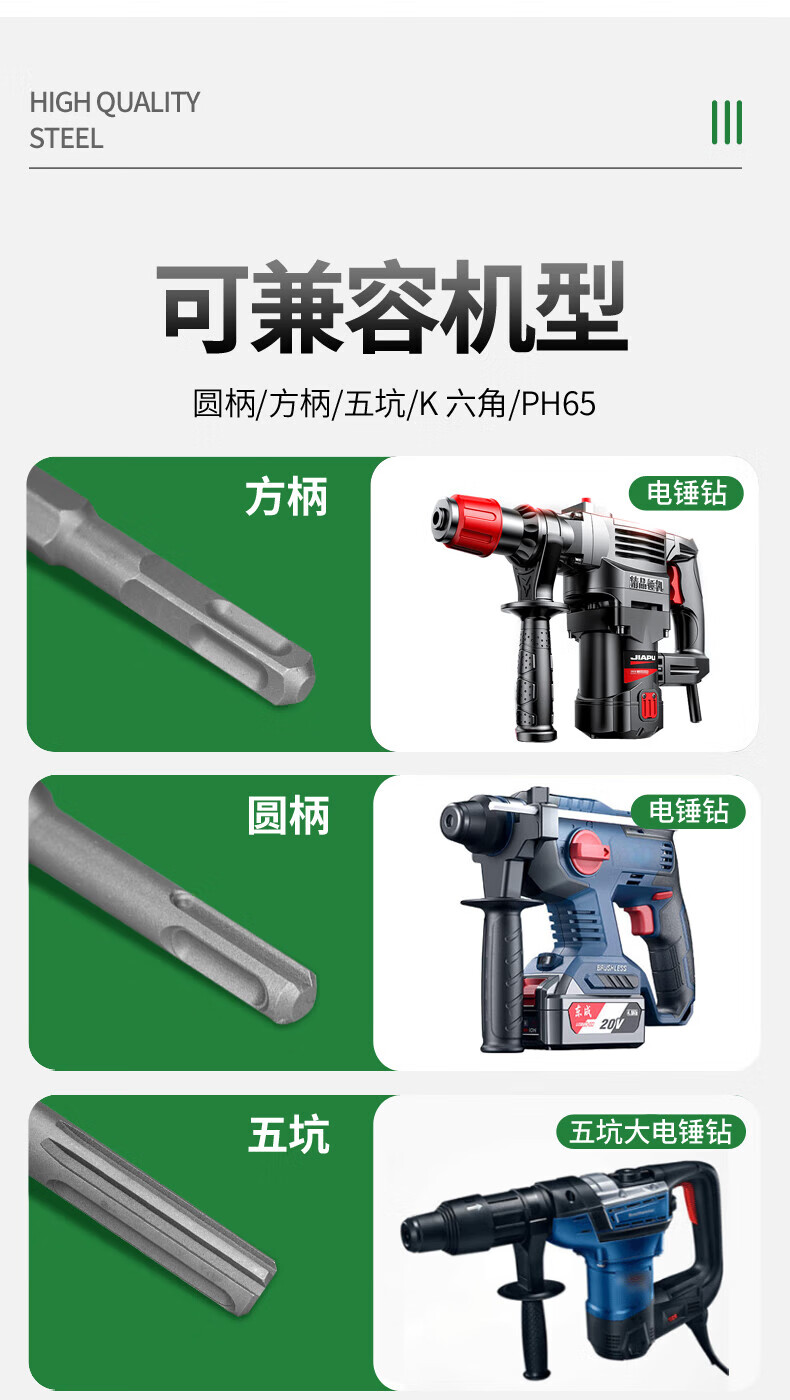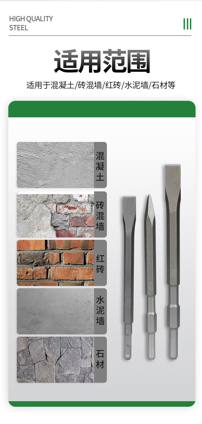 Fang Dawang electric pick chisel pointed chisel flat chisel electric hammer square handle round handle hexagonal five-pit pick hammer impact concrete pick demolition K hexagonal handle 17*280mm sharp chisel