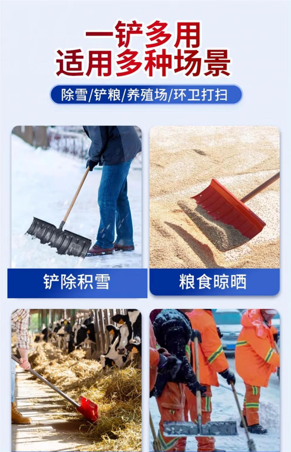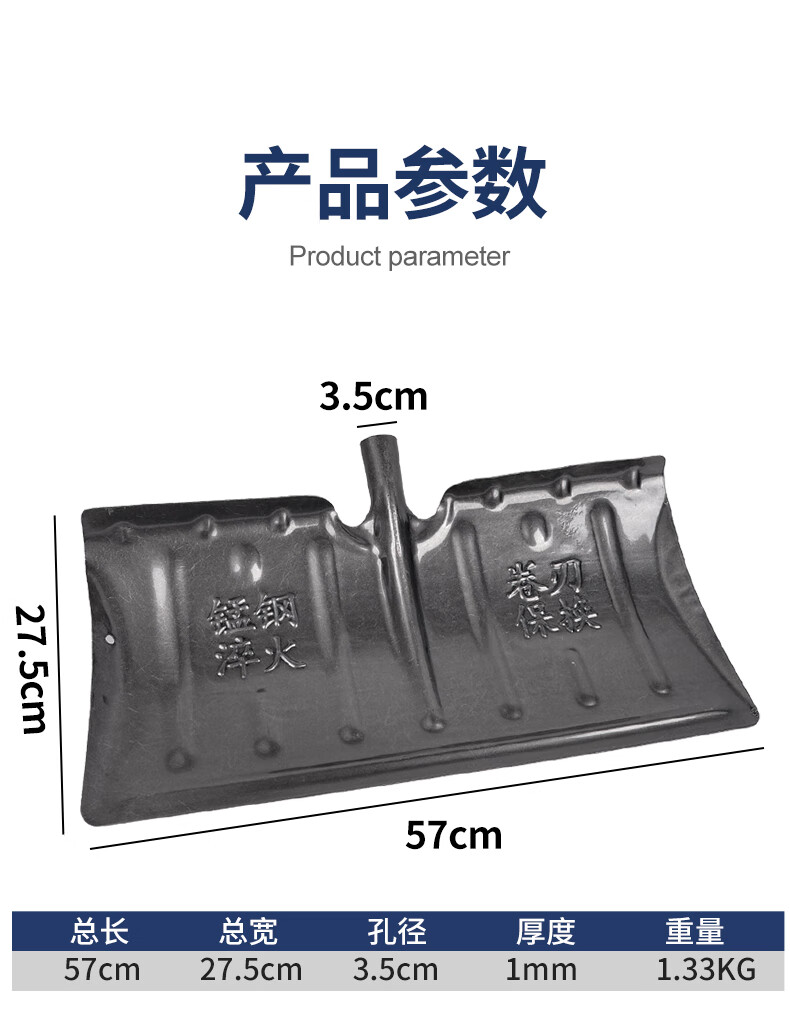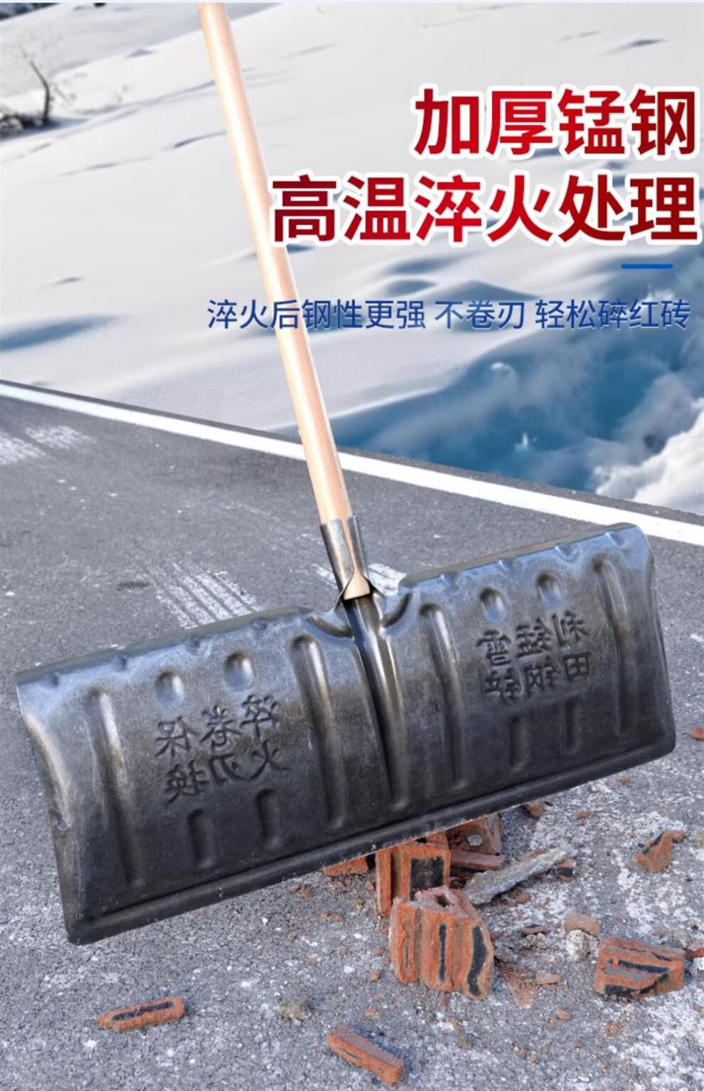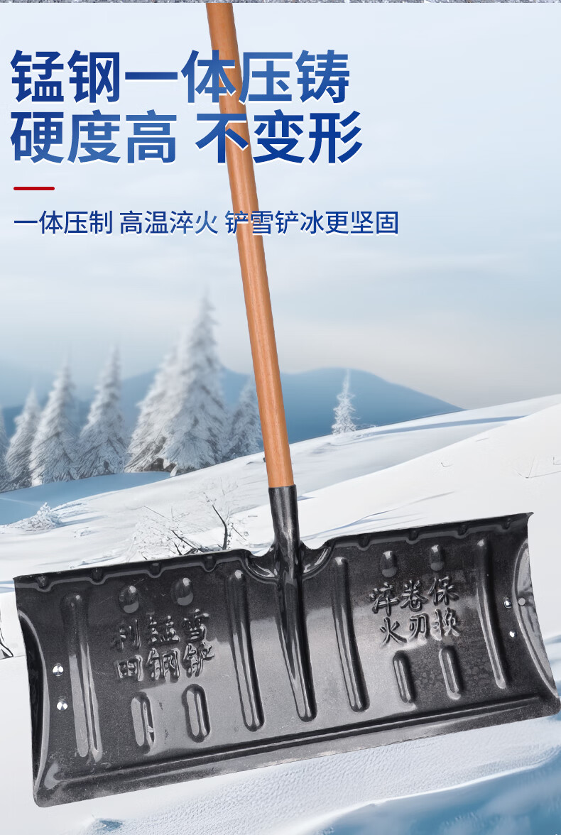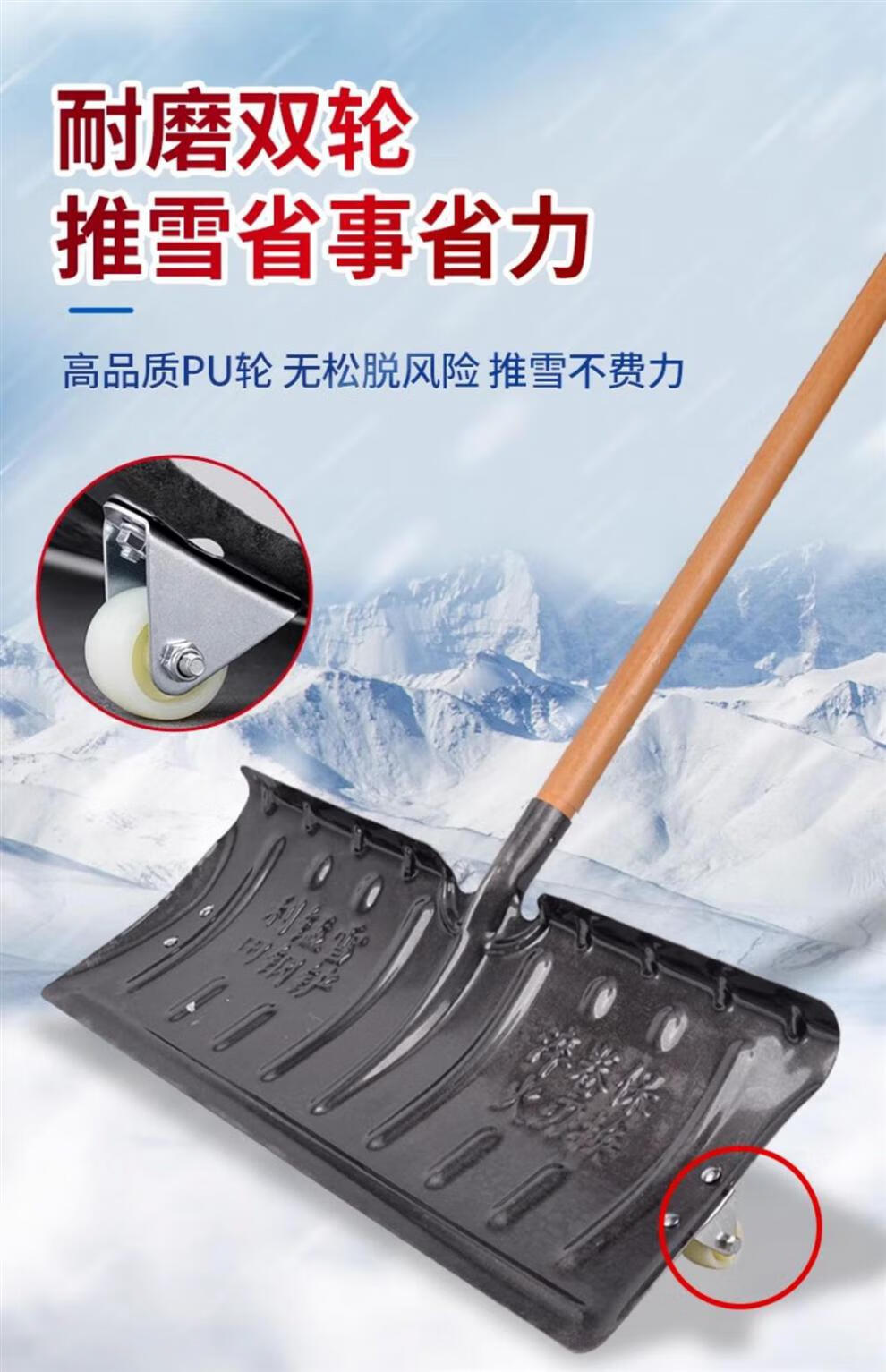 Meschute German snow shovel outdoor winter snow clearing tool push grain shovel board snow removal artifact household wheeled 57cm snow shovel (all metal)