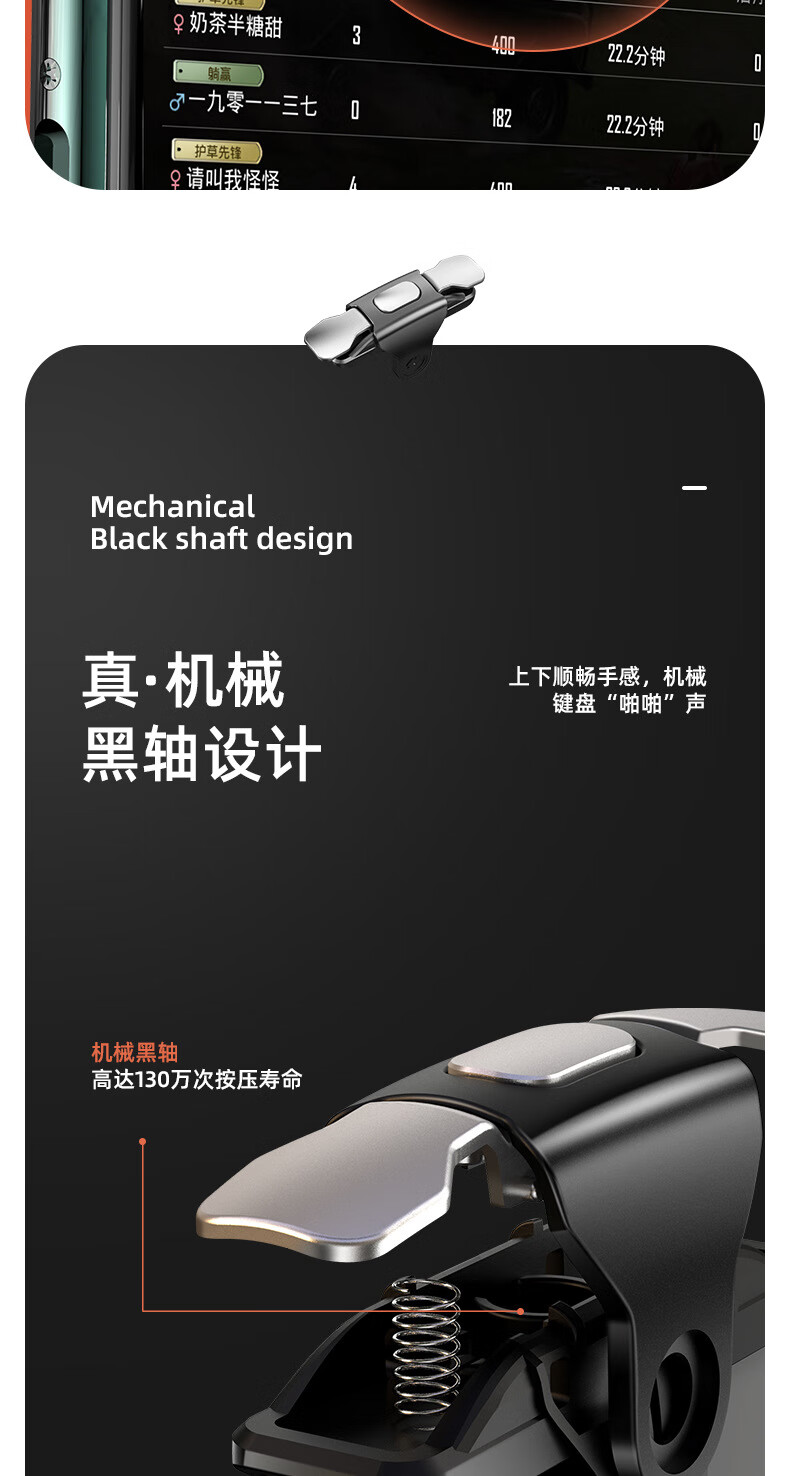 Jingdong Express | Chicken-eating artifact mechanical button handle Peaceful stimulation elite battlefield mobile game superconducting finger cots suitable for Huawei, Apple, Xiaomi mobile phones and tablets Chicken-eating artifact black set Mechanical buttons + superconducting fiber finger cots 1 pair each