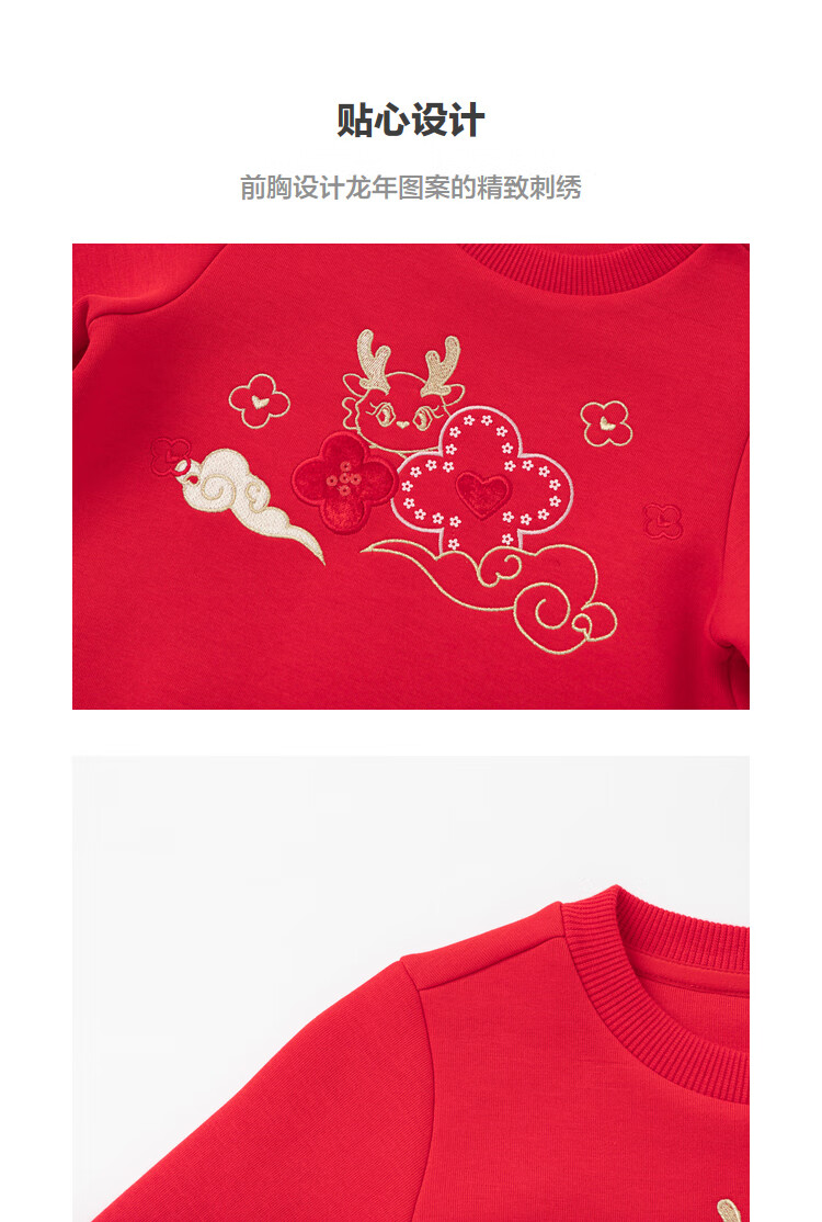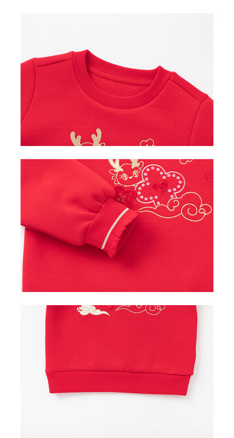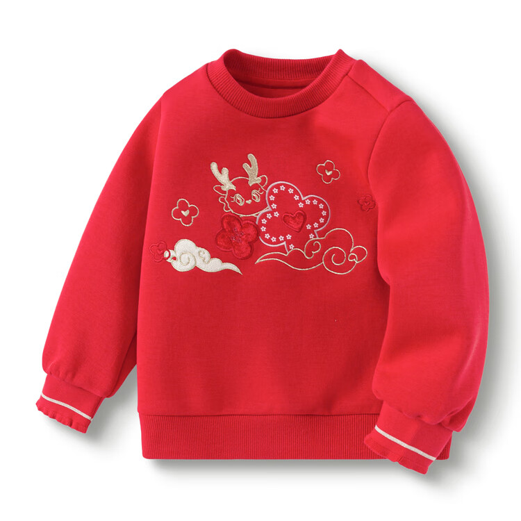 Balabala long-sleeved sweatshirt Spring New Year greetings for girls and toddlers round neck sweatshirt 2011121005 Chinese red 60611 110