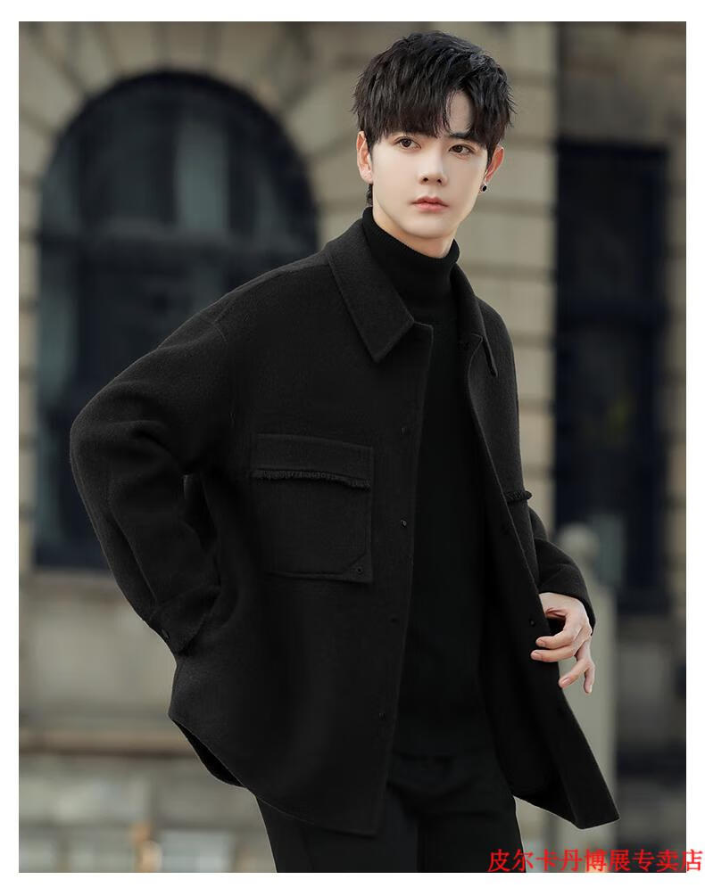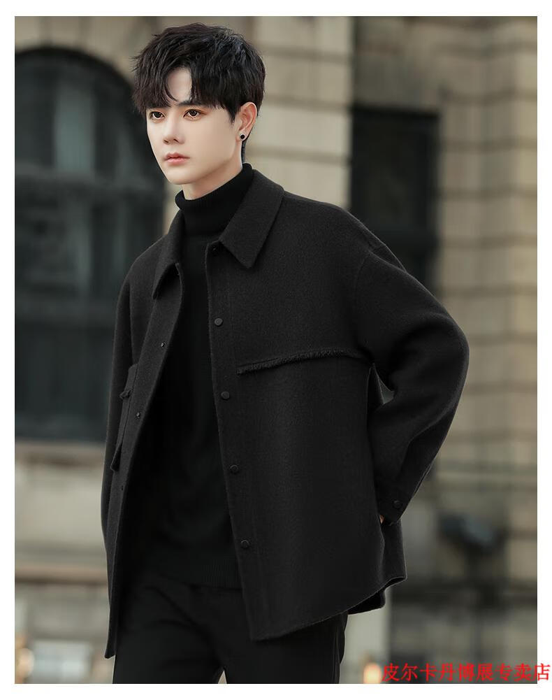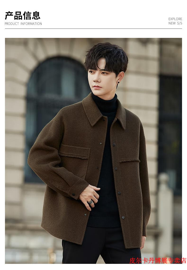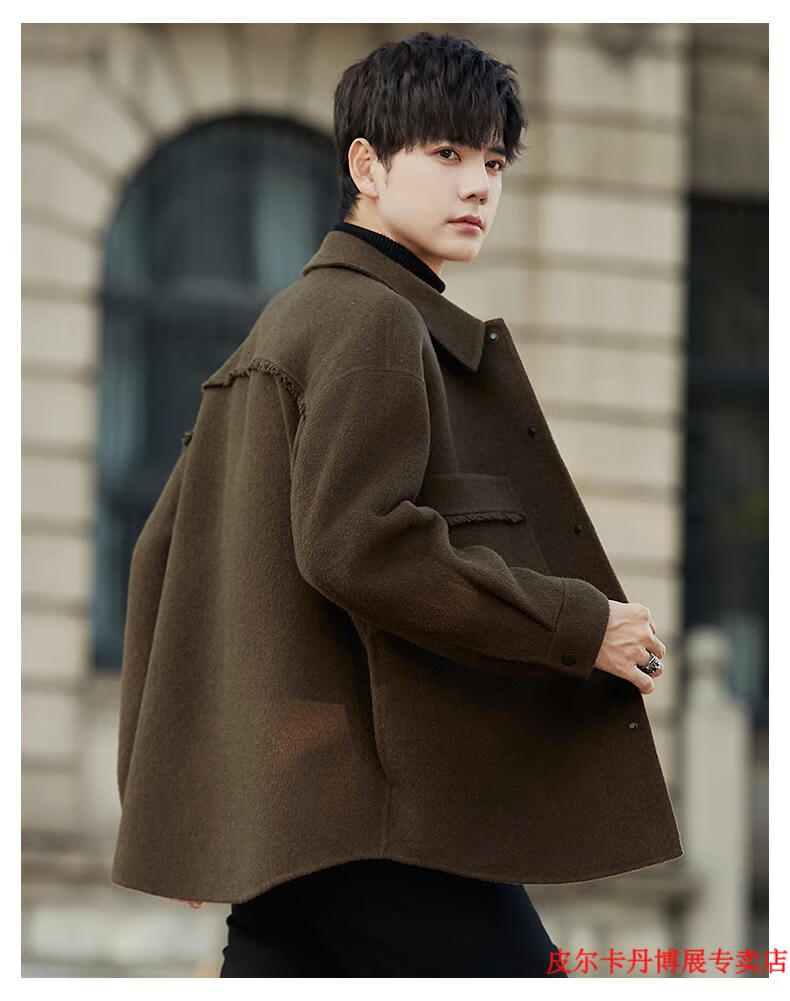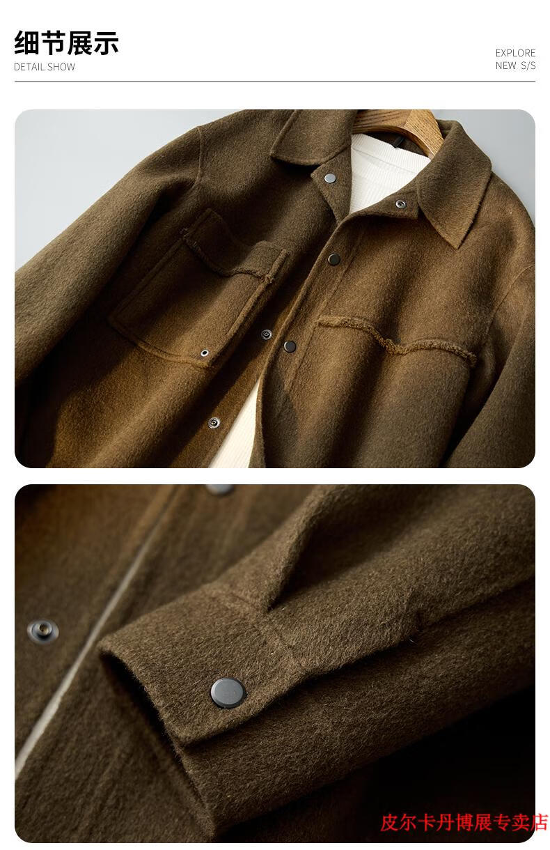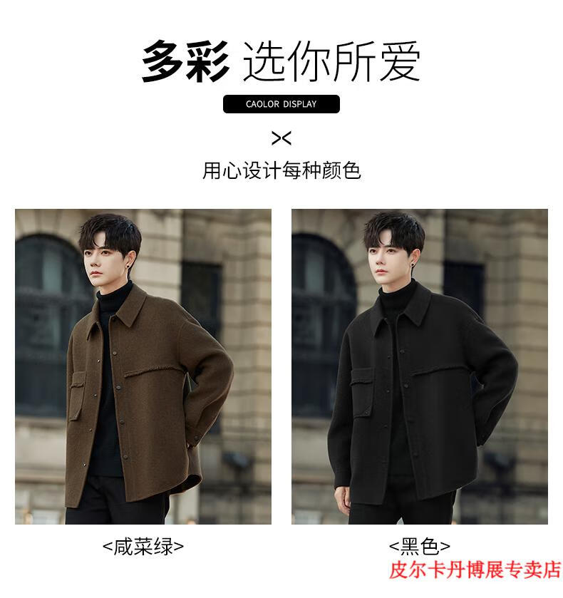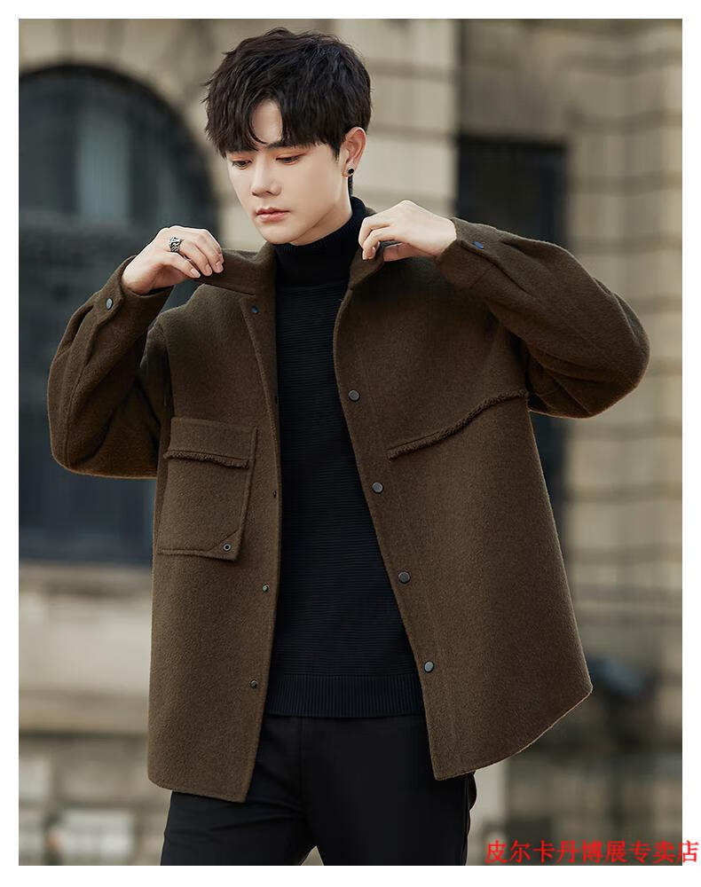 Pierre Cardin high-end double-sided wool jacket men's coat autumn and winter thickened high-end short woolen woolen coat pickle green M (under 130)