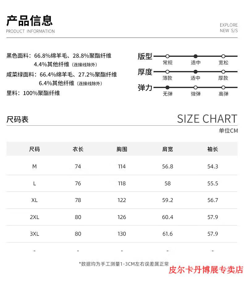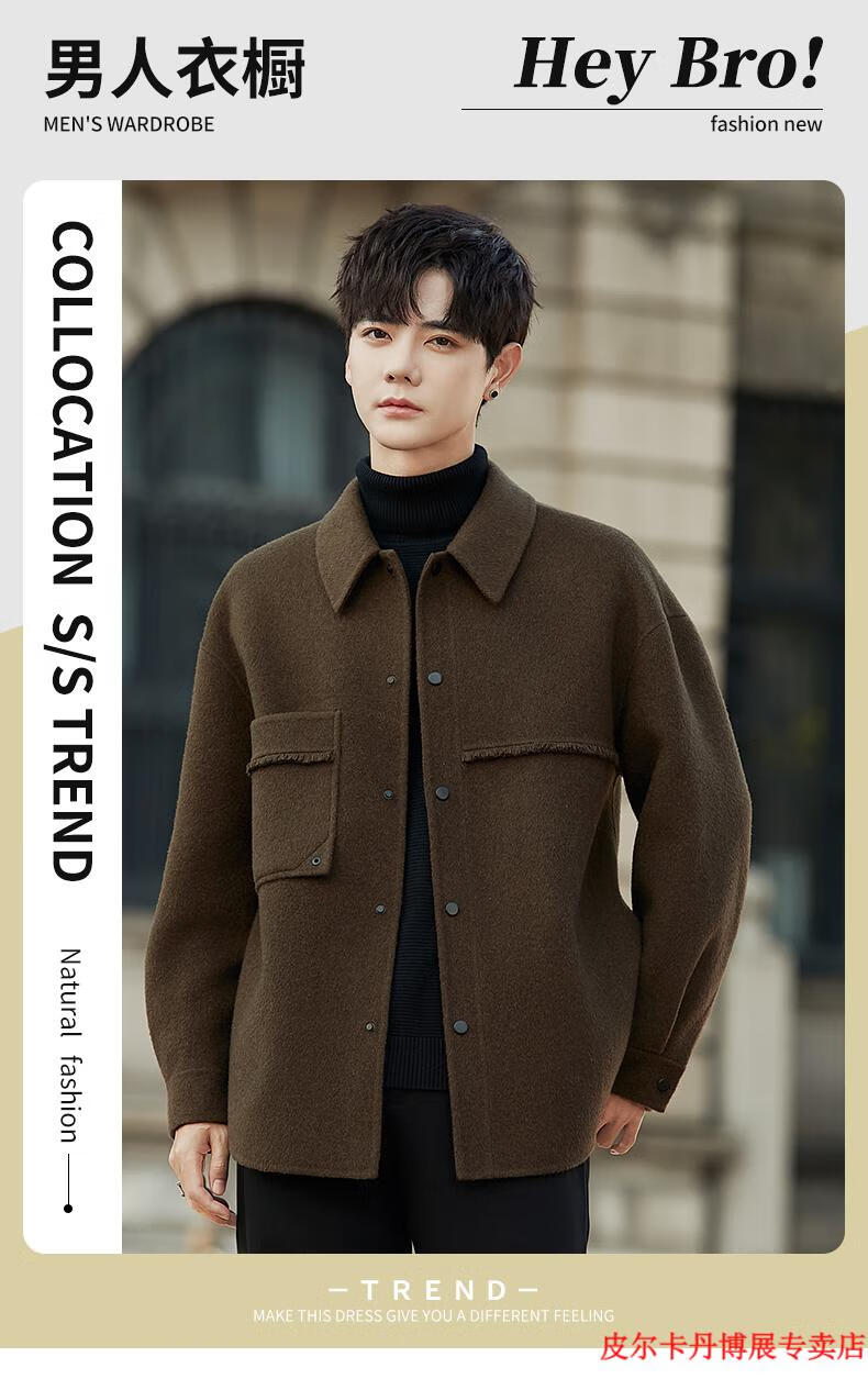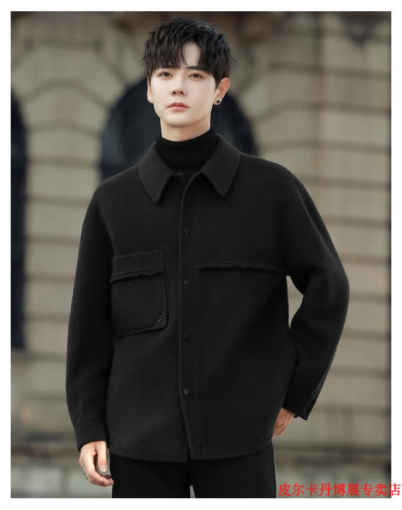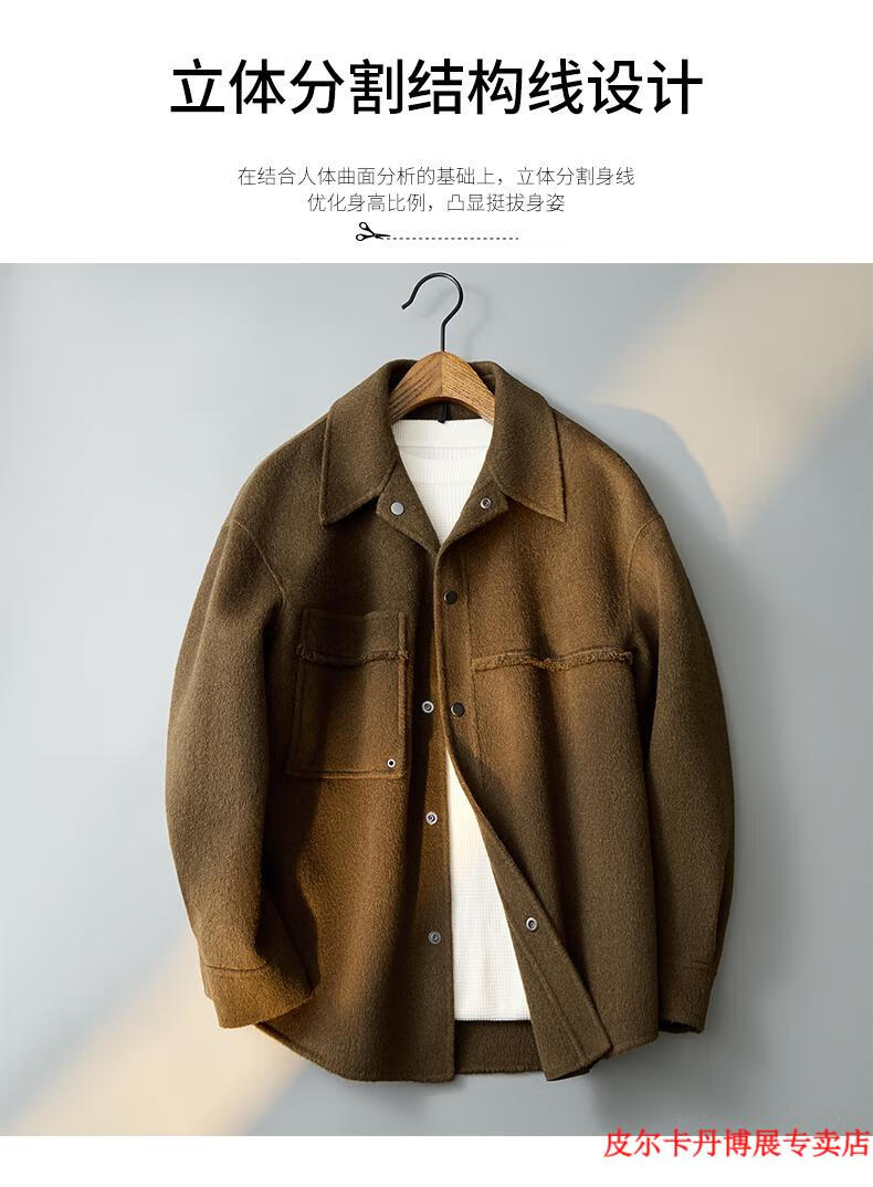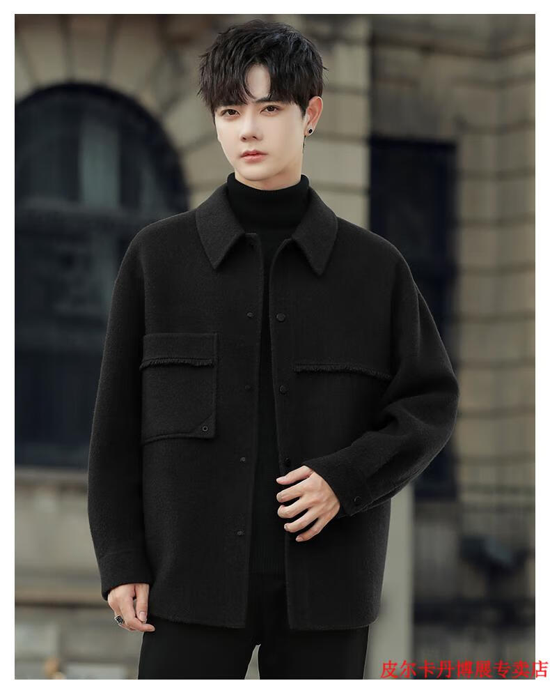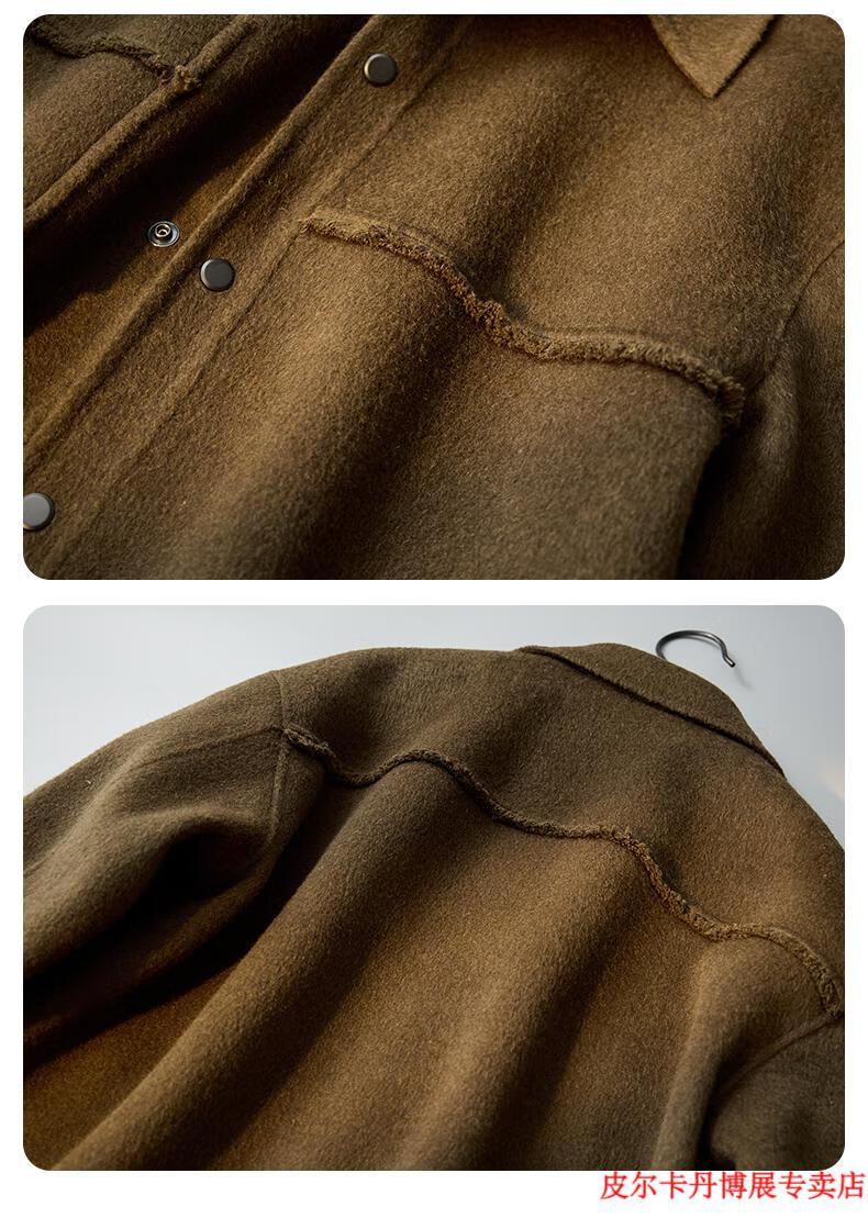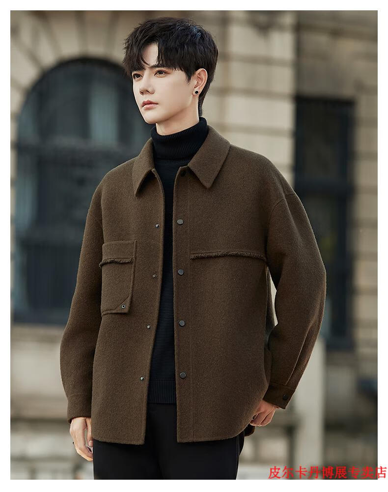 Pierre Cardin high-end double-sided wool jacket men's coat autumn and winter thickened high-end short woolen woolen coat pickle green M (under 130)