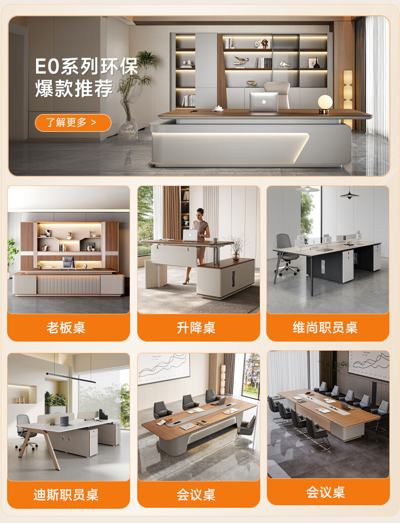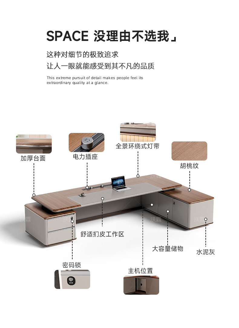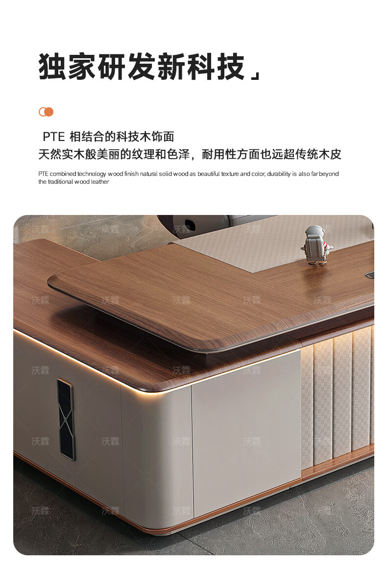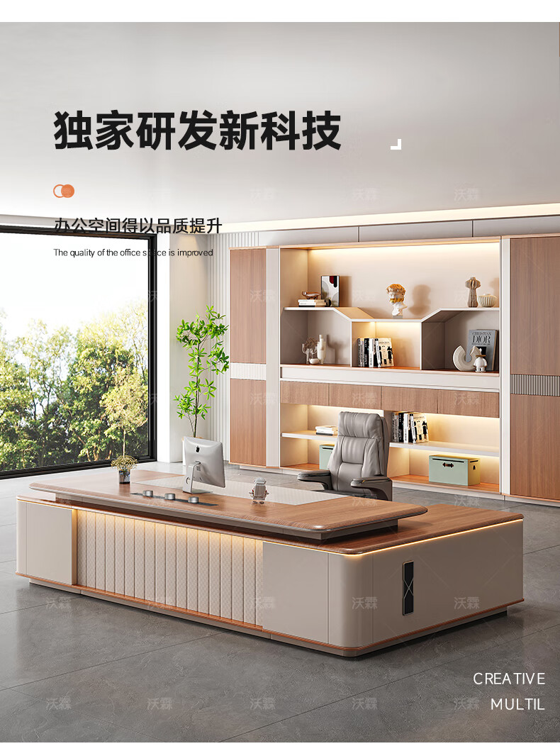 Wolin E0 level boss desk modern desk president chairman high-end office home office desk and chair combination 3.6 meters boss desk-double cabinet