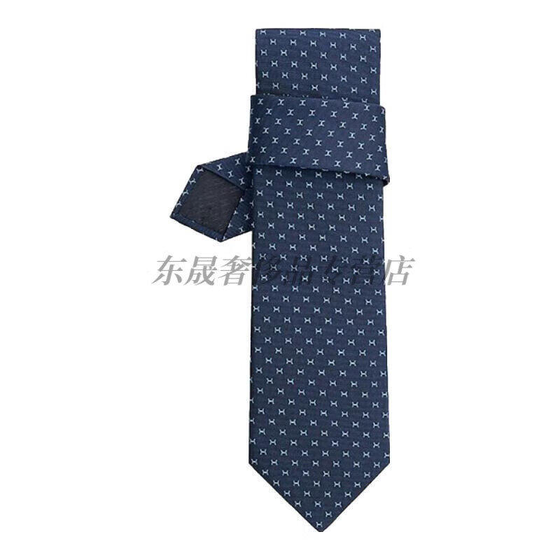 Hermès Men's Fine H Tie Silk Hand-sewn Tie Gift Box for Boyfriend or Husband Navy Blue/Sky Blue/White