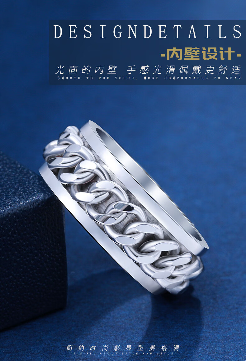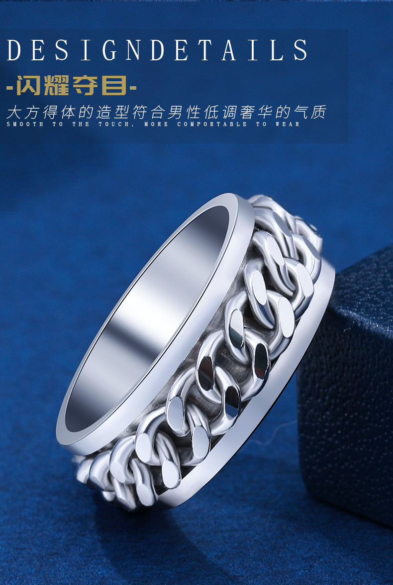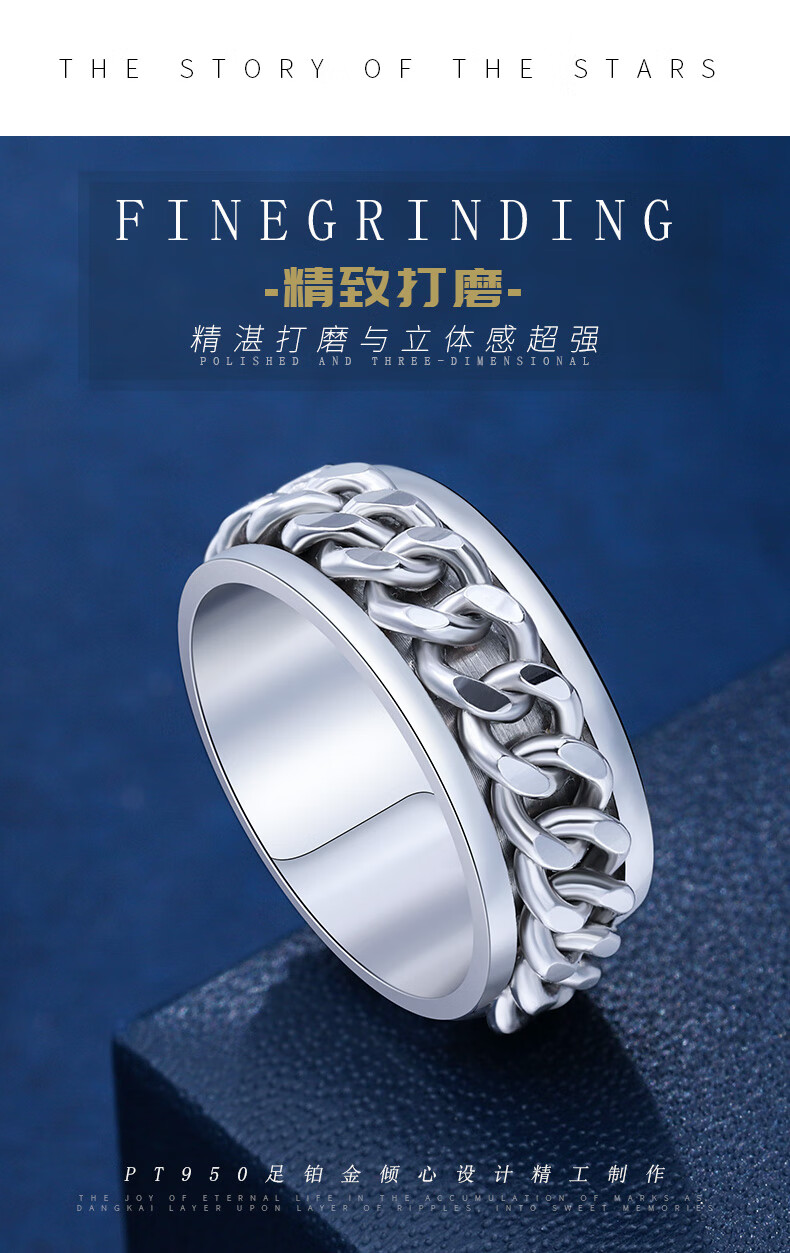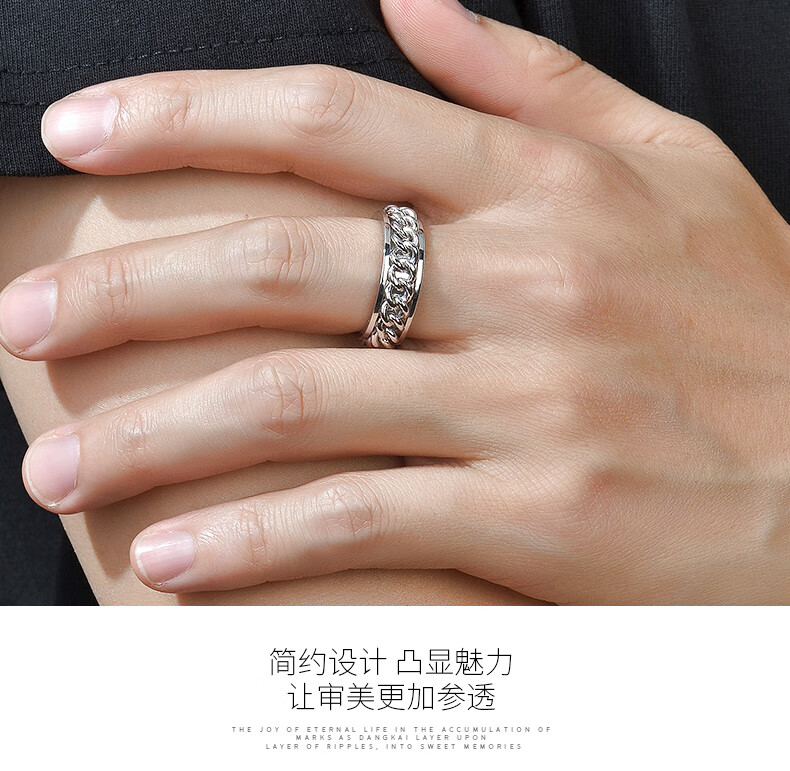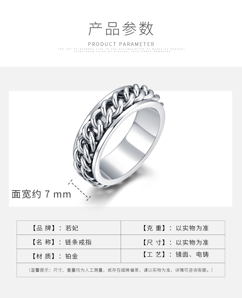 Ruofei ring men's wide ring pt950 chain men's ring fashionable rotatable plate ring plain ring ring custom engraving gift platinum 950 chain ring No. 24 15-16 grams