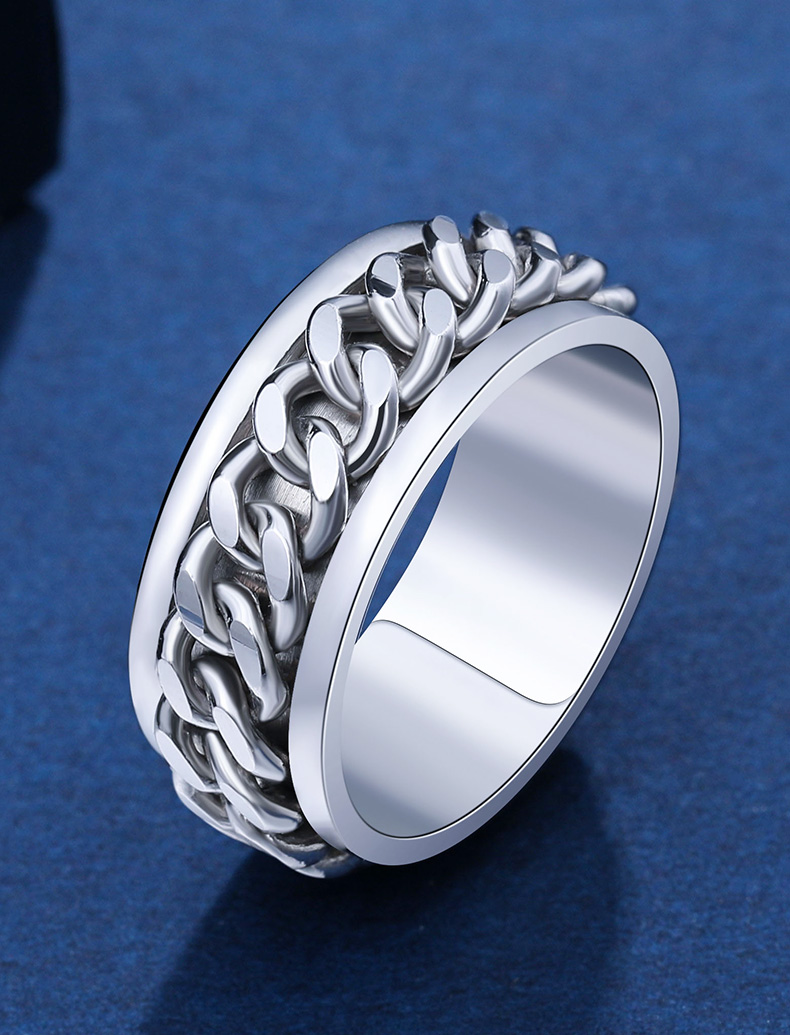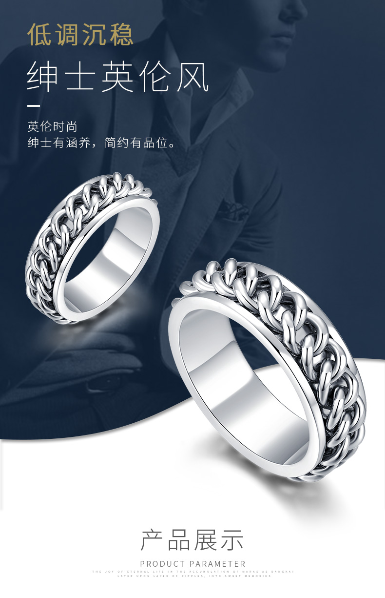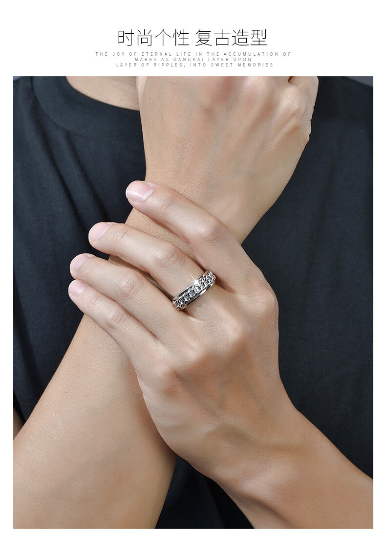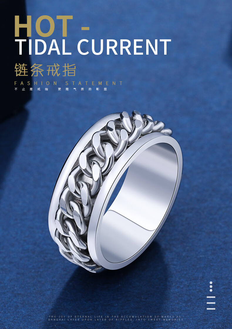 Ruofei ring men's wide ring pt950 chain men's ring fashionable rotatable plate ring plain ring ring custom engraving gift platinum 950 chain ring No. 24 15-16 grams