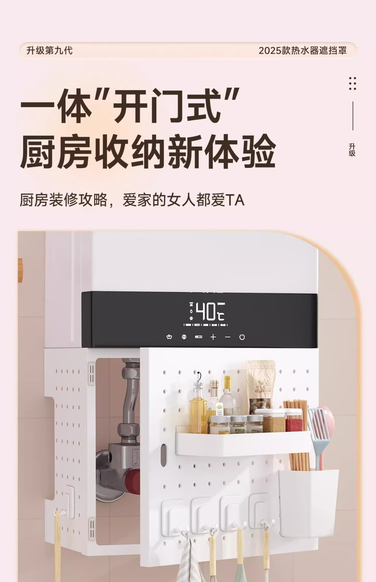 L AMAVO gas water heater shield can open the door without punching natural gas pipeline hole plate storage rack to hide the ugly decorative cover white can open the door customized special shot