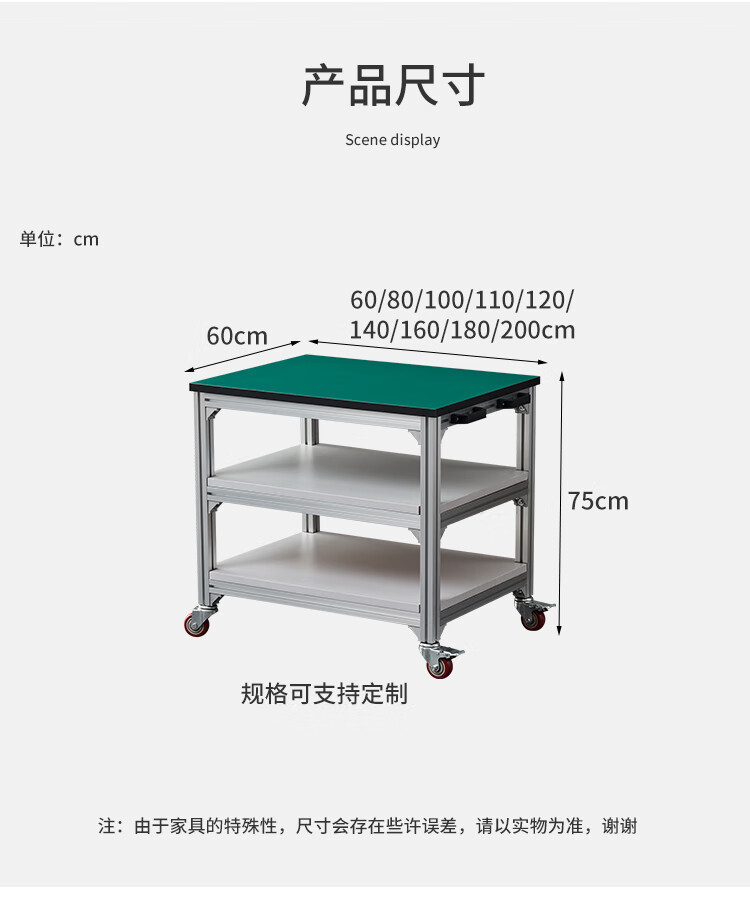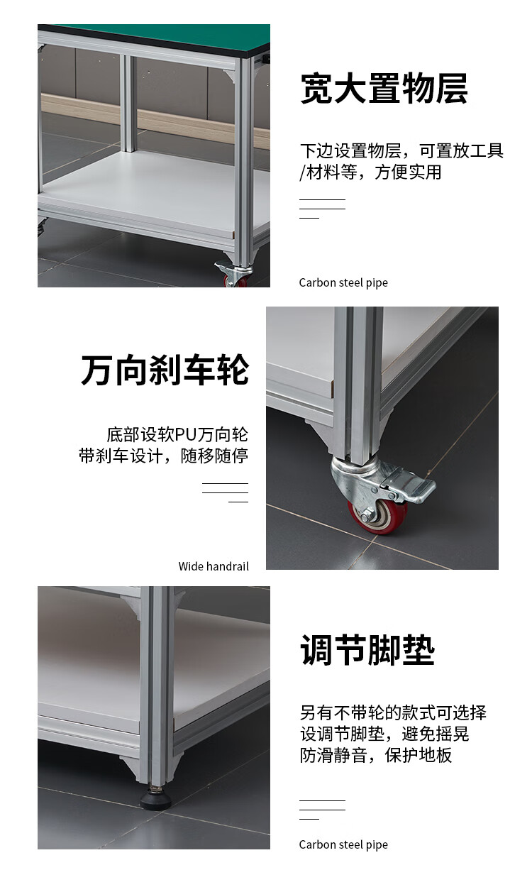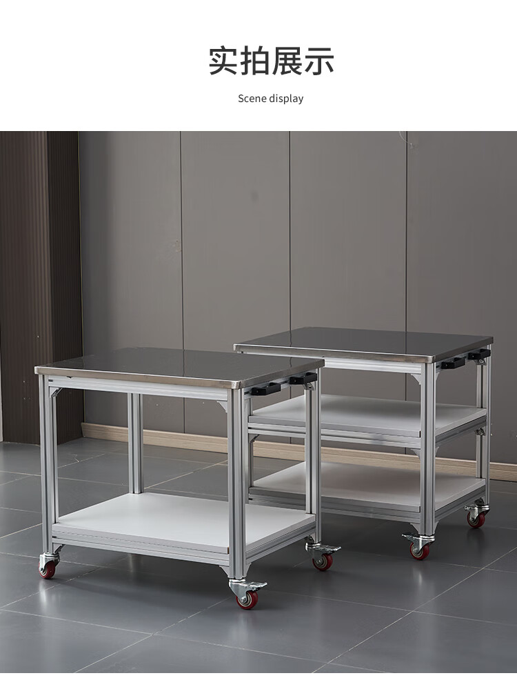 Xinian aluminum alloy workbench workshop stainless steel cart aluminum profile mobile tool cart multi-functional production line turnover cart double layer + aluminum alloy + table top 100*80*75