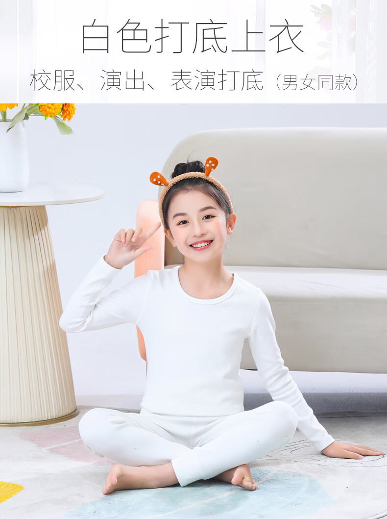 Feng Lingniao Children's White T-shirt Tight Flesh Color Dance Suit Girls White Bottoming Shirt Suit Middle School Uniform for Boys, Plus Velvet (White Suit) 120 cm (If you want a close fit, don't buy a big one)