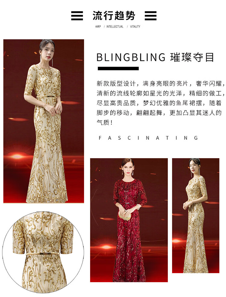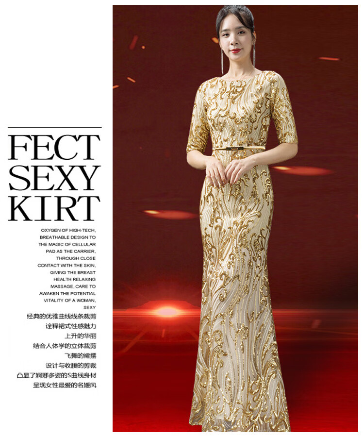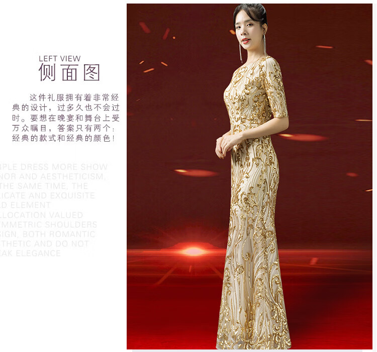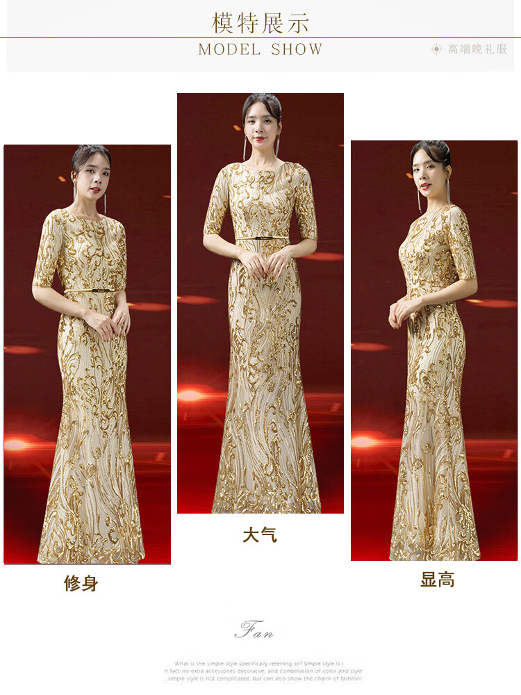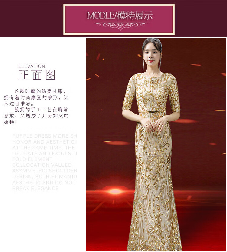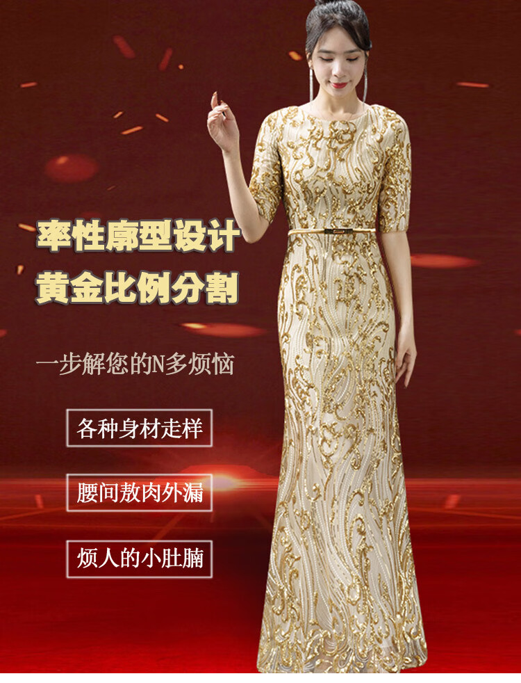 2025 new autumn style grandma-in-law wedding banquet dress high-end noble young foreign temperament high-end wedding mother evening dress gold M