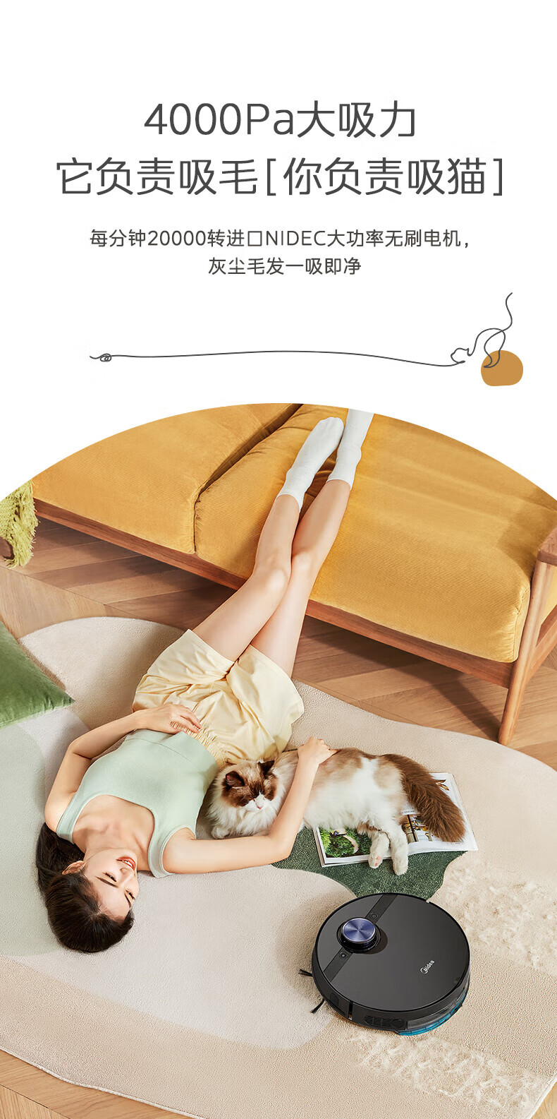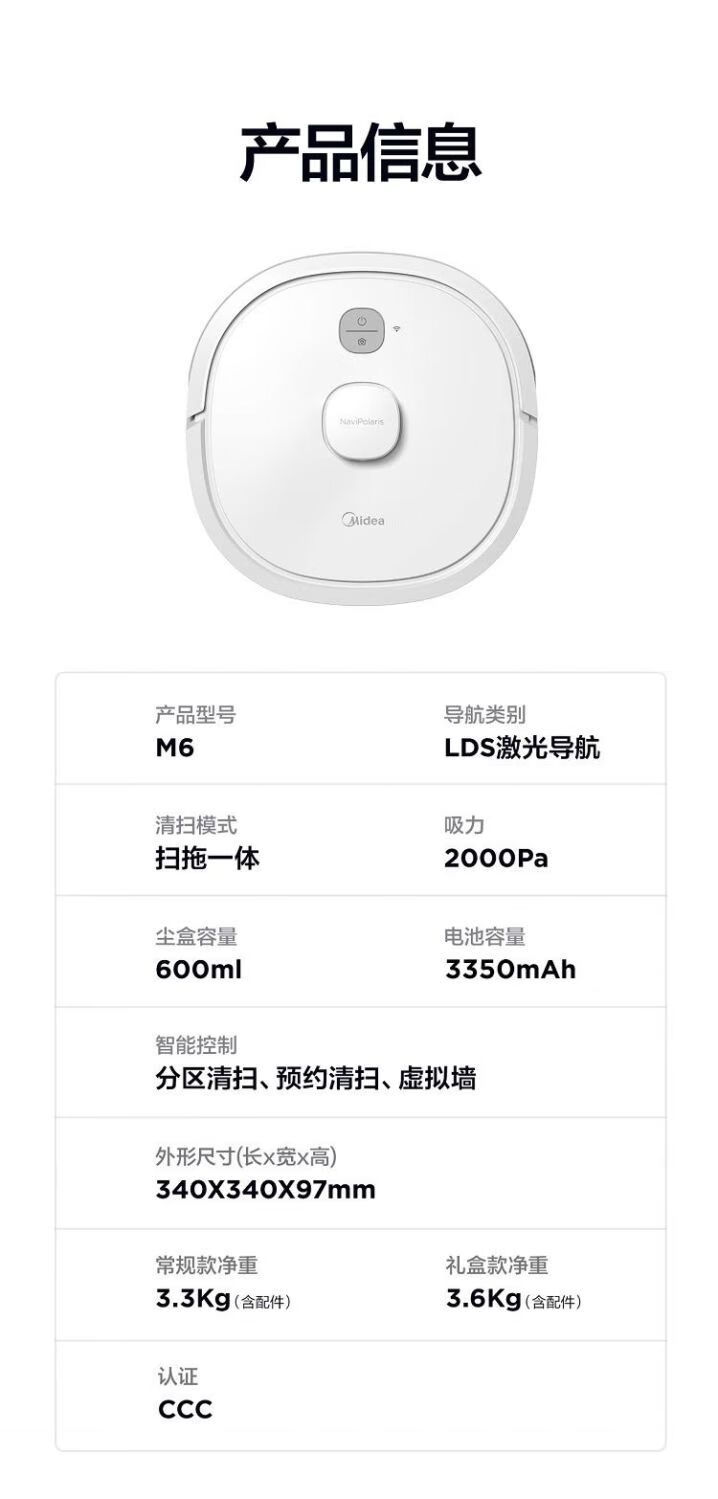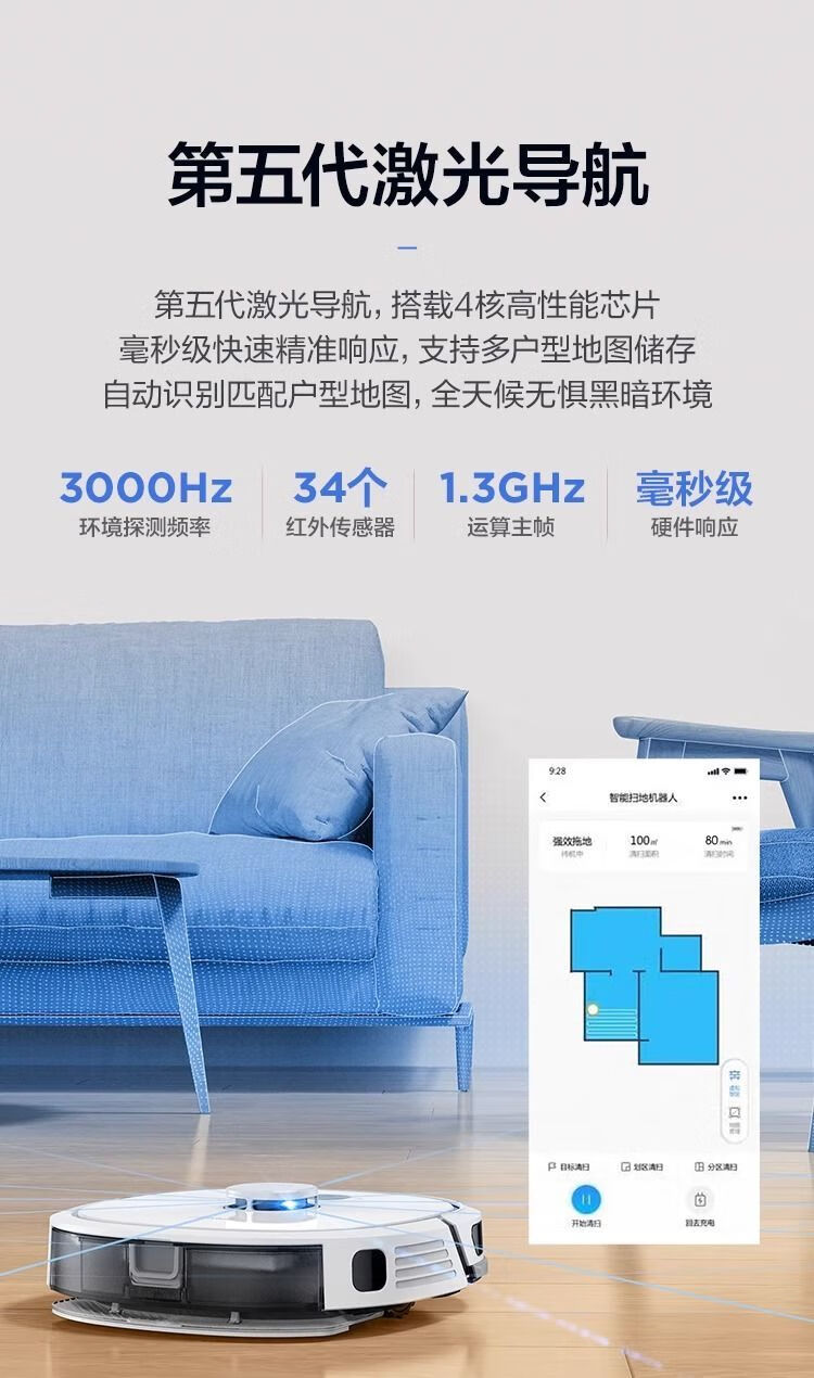 Midea sweeping robot fully automatic smart home sweeping, suction and mopping integrated laser navigation APP one-click intelligent control vacuum cleaner 5000Pa high suction power new i7 EVO