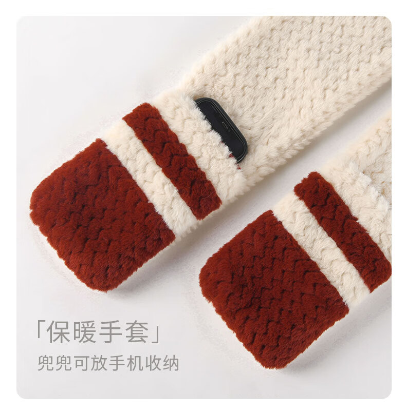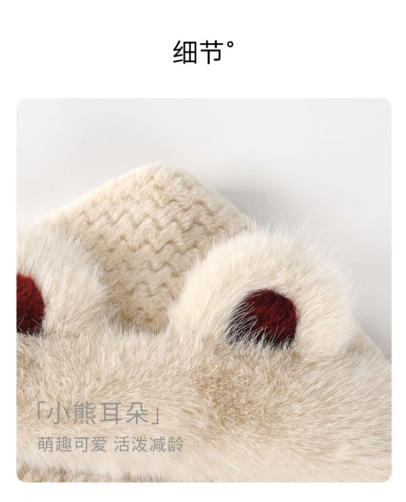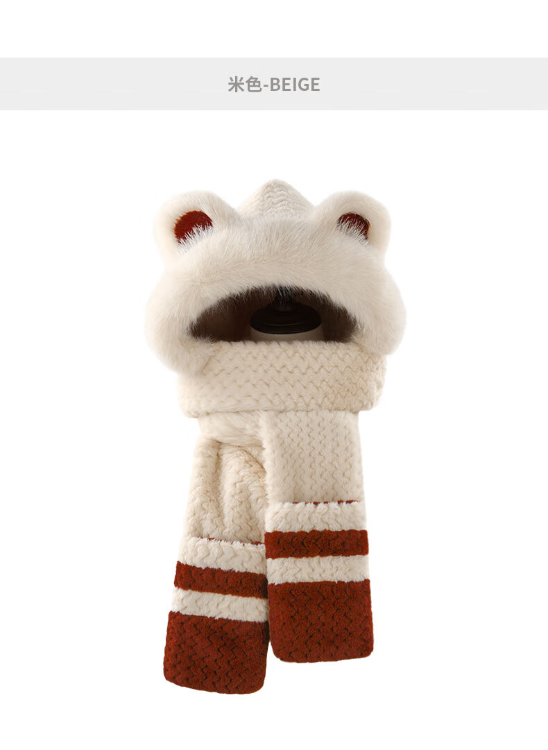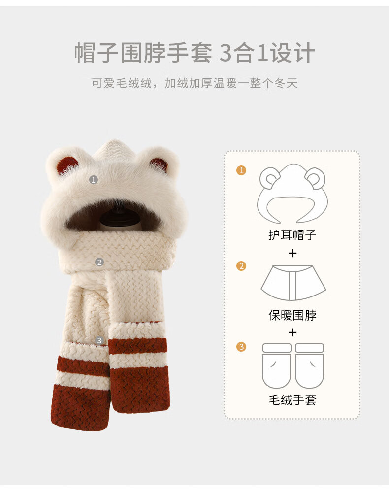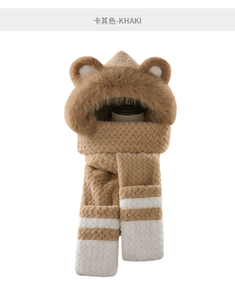 TonLion 2025 new cold-proof and warm bear plush hat scarf gloves all-in-one women's winter thickened ear protection cycling hat red