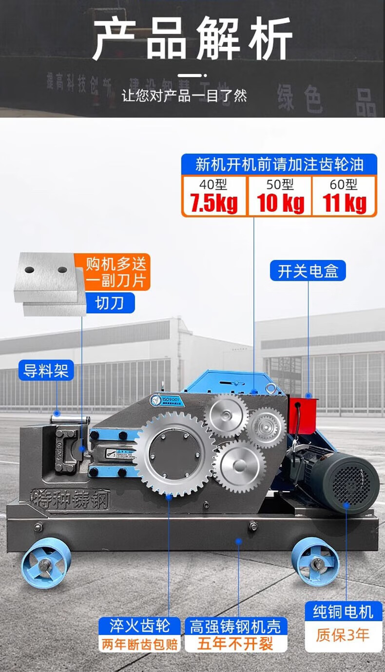 Axis steel bar cutting machine shearing machine automatic heavy-duty steel cutting machine square steel round steel flat steel rebar shearing machine 40 type weighted cutting machine 4-32MM (flat knife)