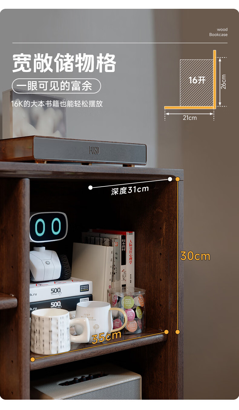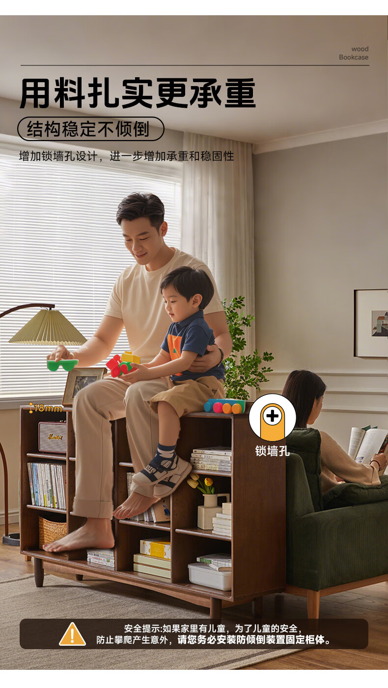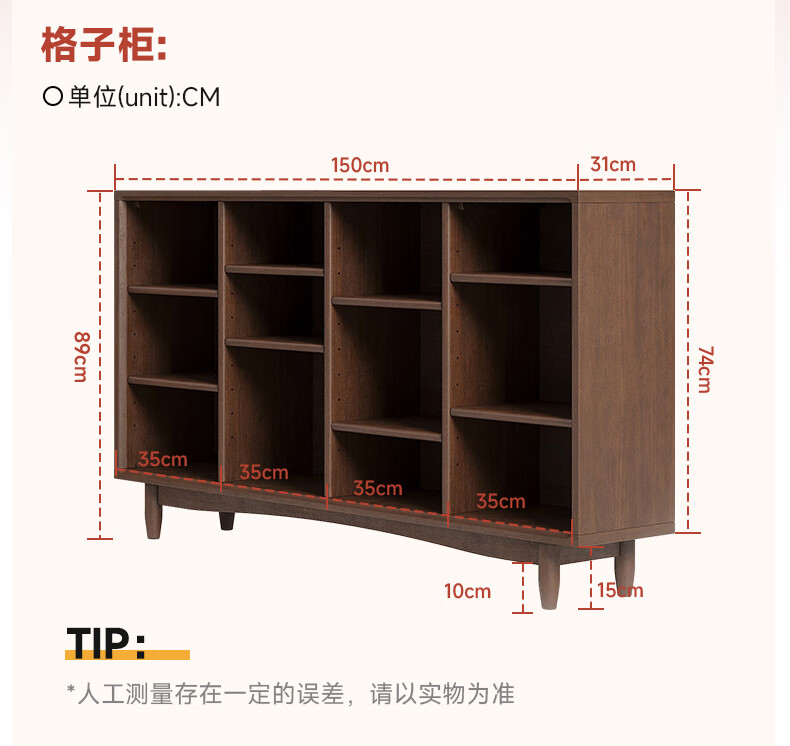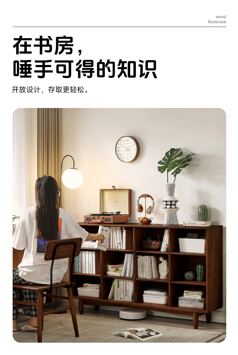 Qingju pure solid wood bookshelf storage rack floor-standing solid wood bookcase integrated wall-mounted children's living room storage low cabinet lattice cabinet 12 compartments | walnut color 150cm shipped in one package 3A grade rubber wood + adjustable shelves + door-to-door delivery