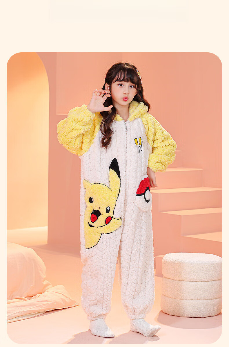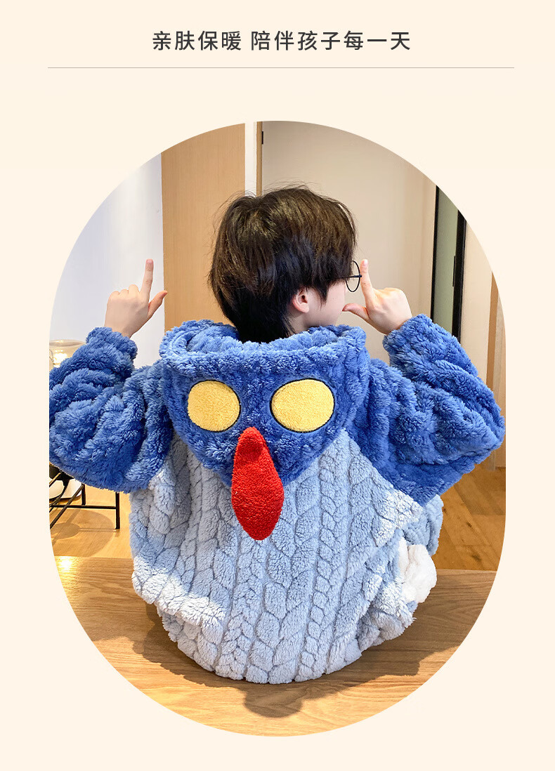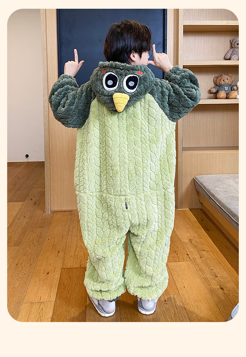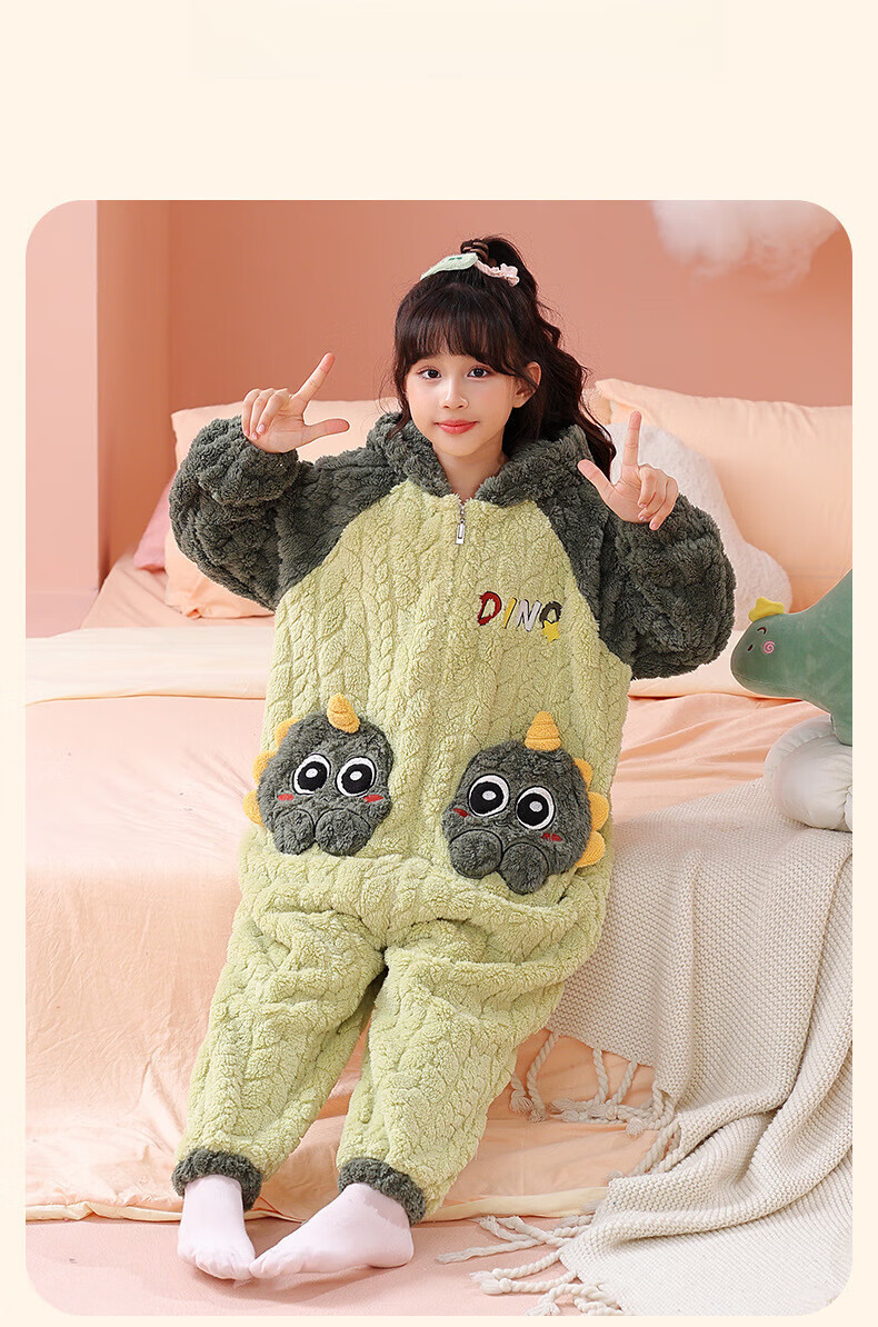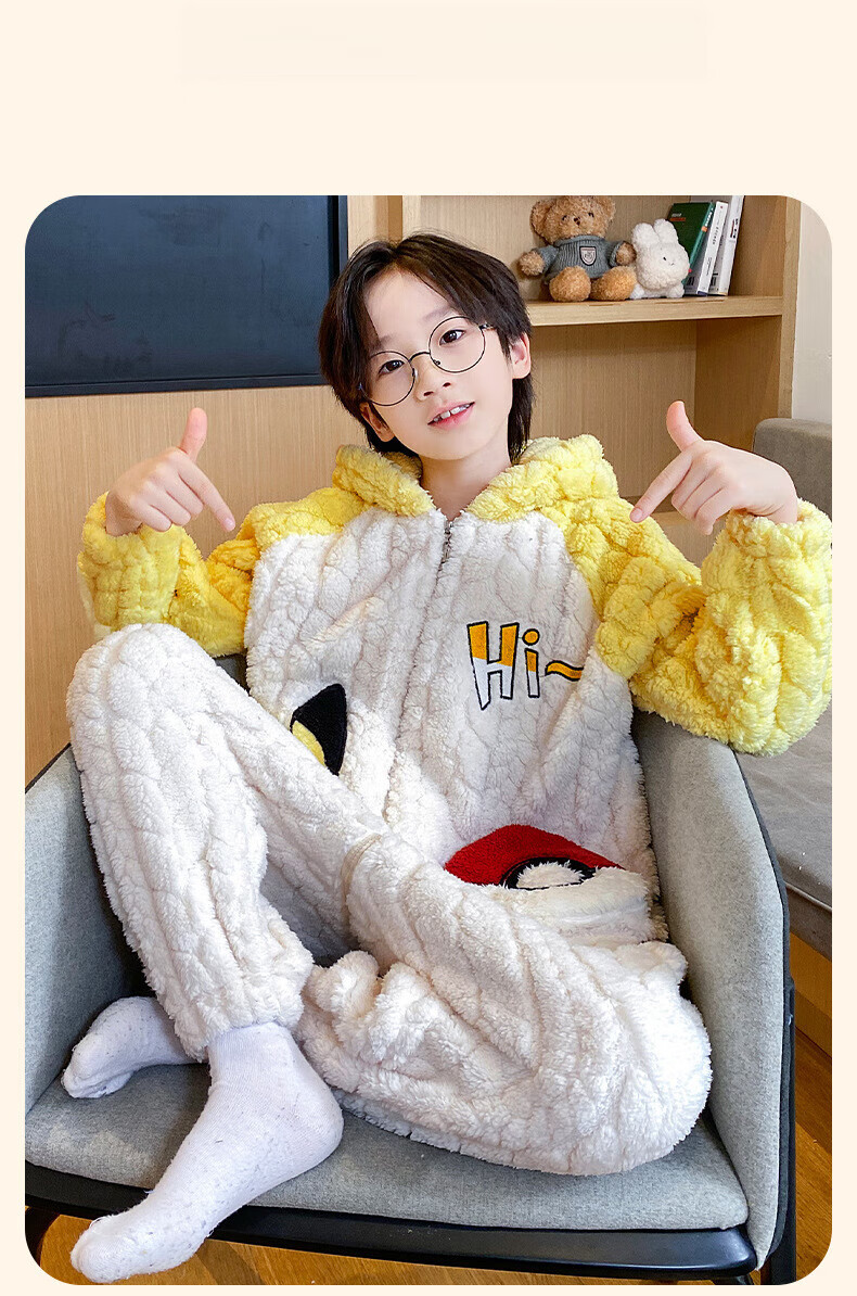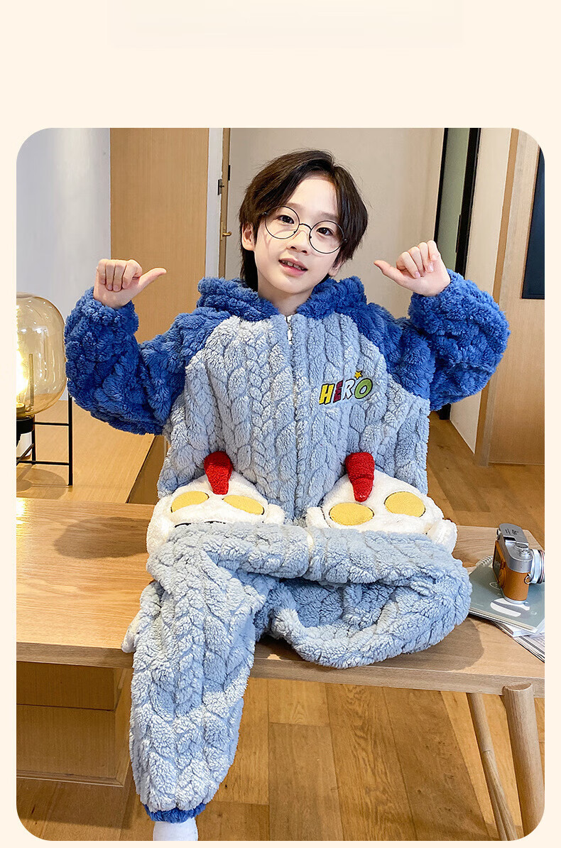 G.DUCKKIDS2024 Autumn and Winter Children's One-piece Pajamas Coral Velvet Hooded Cartoon Girls' Sleeping Bags for Big Children and Girls Home Clothes KYM One-piece Velvet-226 Egg Boy One Size 12