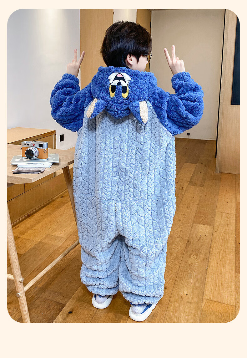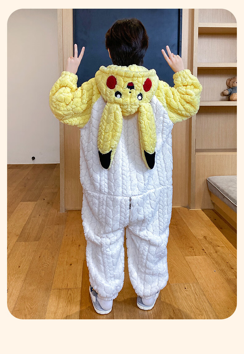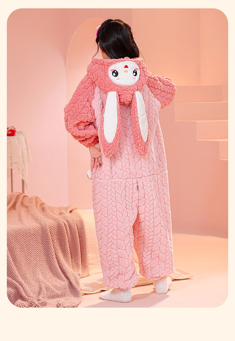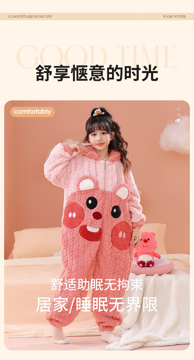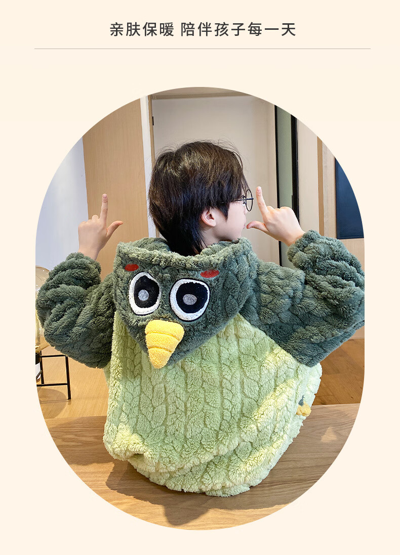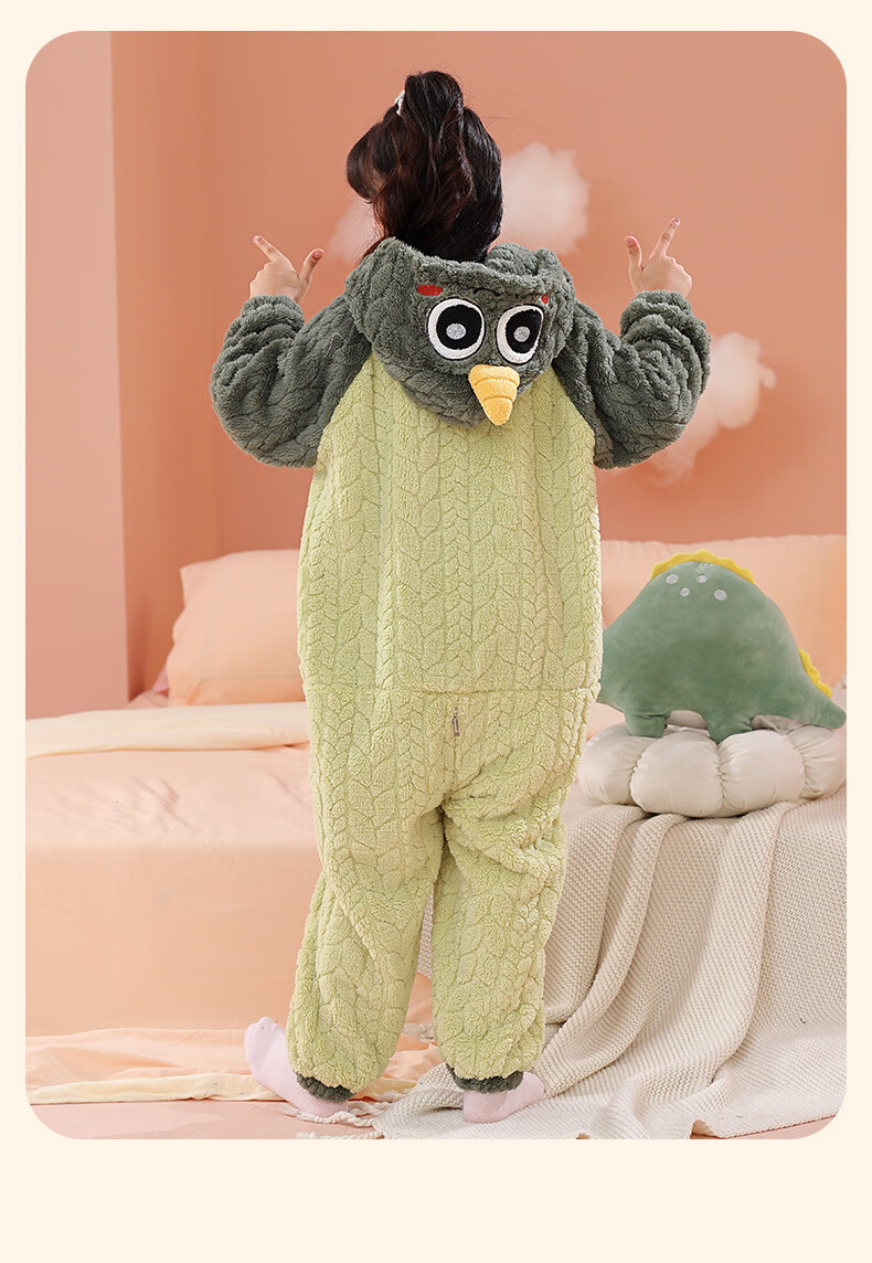 G.DUCKKIDS2024 Autumn and Winter Children's One-piece Pajamas Coral Velvet Hooded Cartoon Girls' Sleeping Bags for Big Children and Girls Home Clothes KYM One-piece Velvet-226 Egg Boy One Size 12