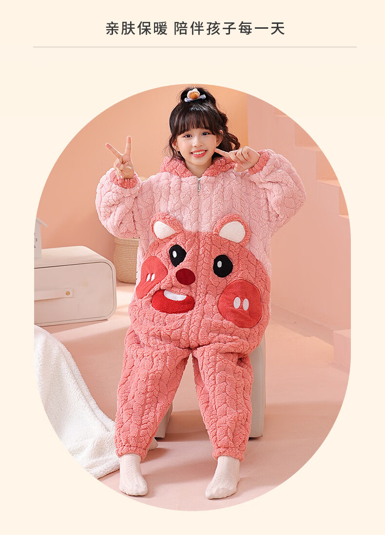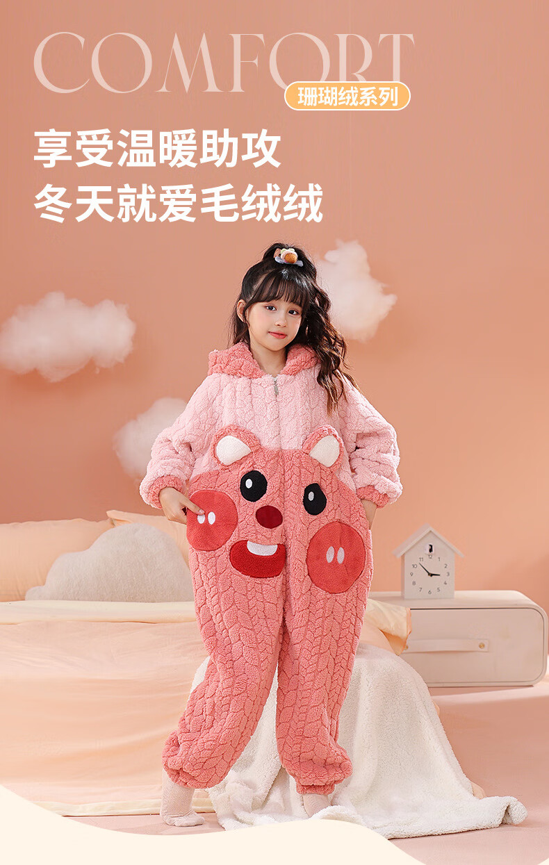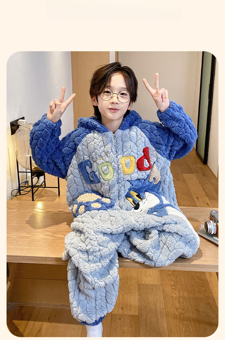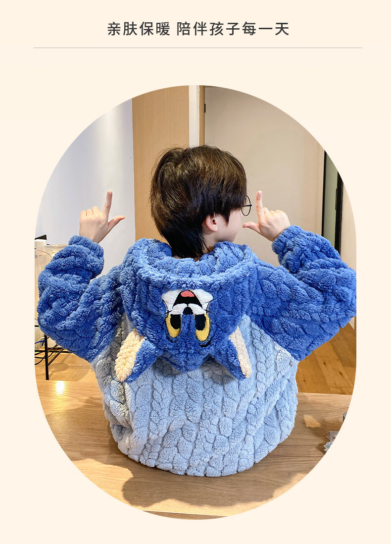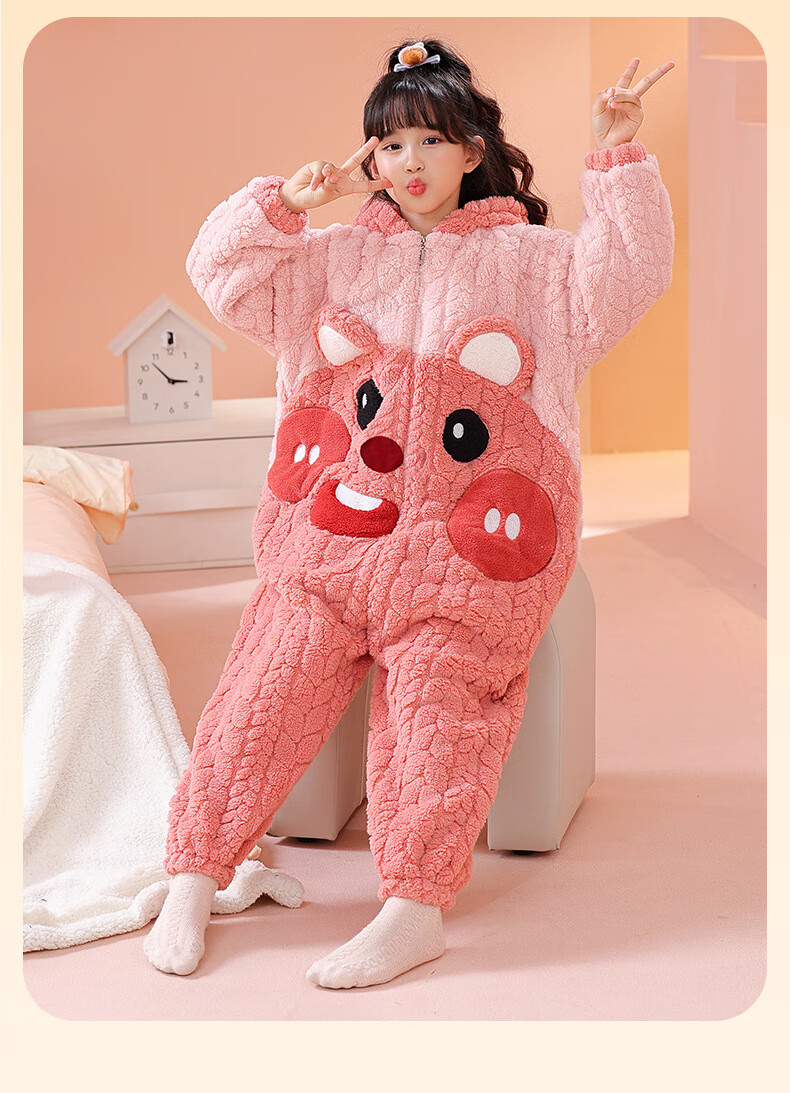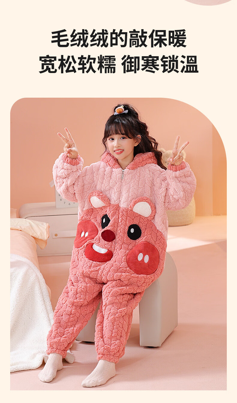 G.DUCKKIDS2024 Autumn and Winter Children's One-piece Pajamas Coral Velvet Hooded Cartoon Girls' Sleeping Bags for Big Children and Girls Home Clothes KYM One-piece Velvet-226 Egg Boy One Size 12