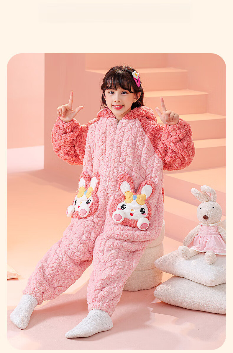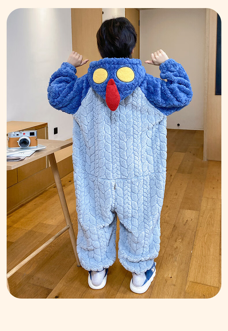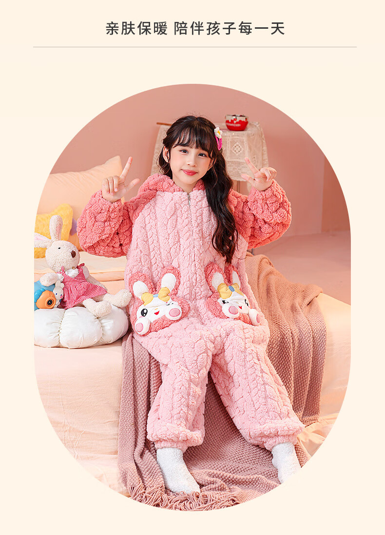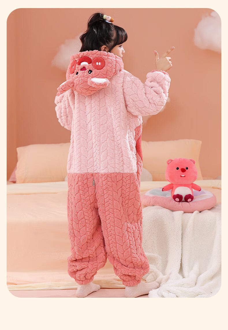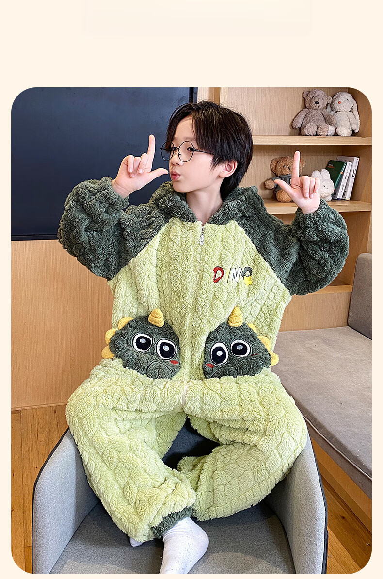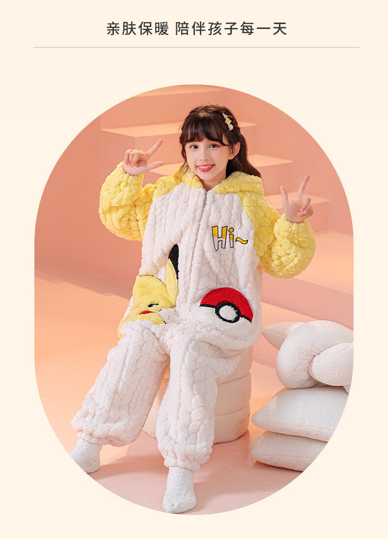G.DUCKKIDS2024 Autumn and Winter Children's One-piece Pajamas Coral Velvet Hooded Cartoon Girls' Sleeping Bags for Big Children and Girls Home Clothes KYM One-piece Velvet-226 Egg Boy One Size 12
