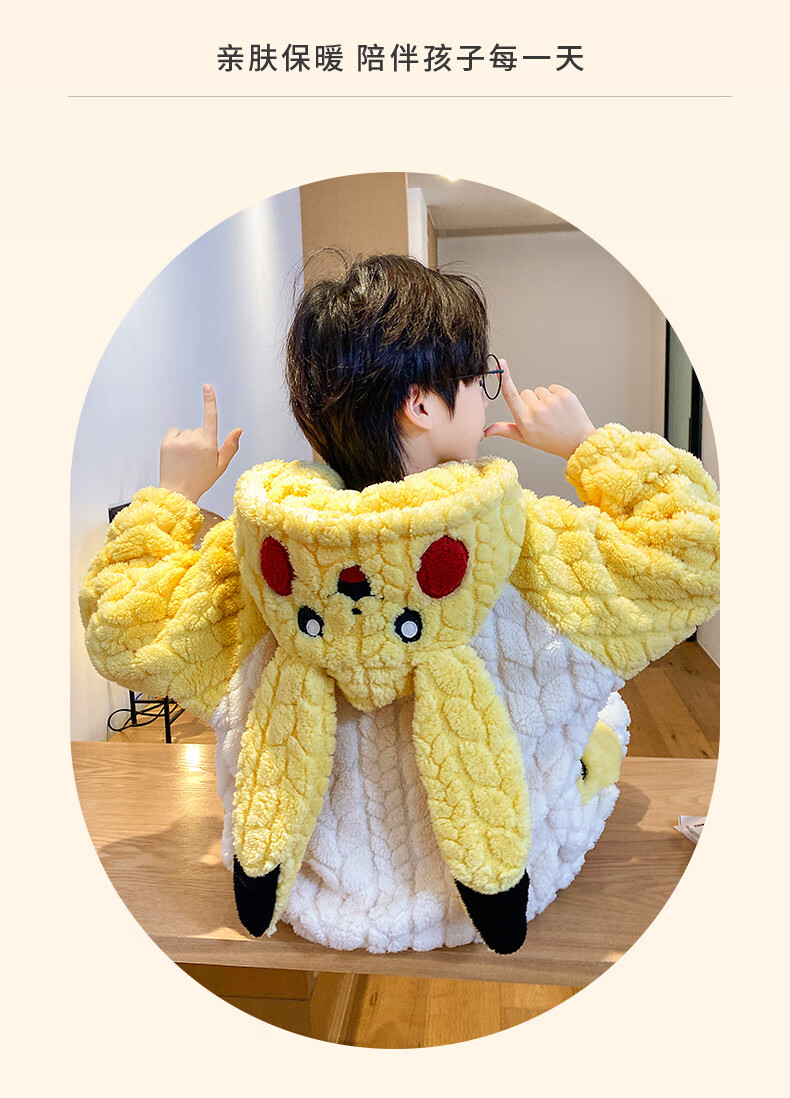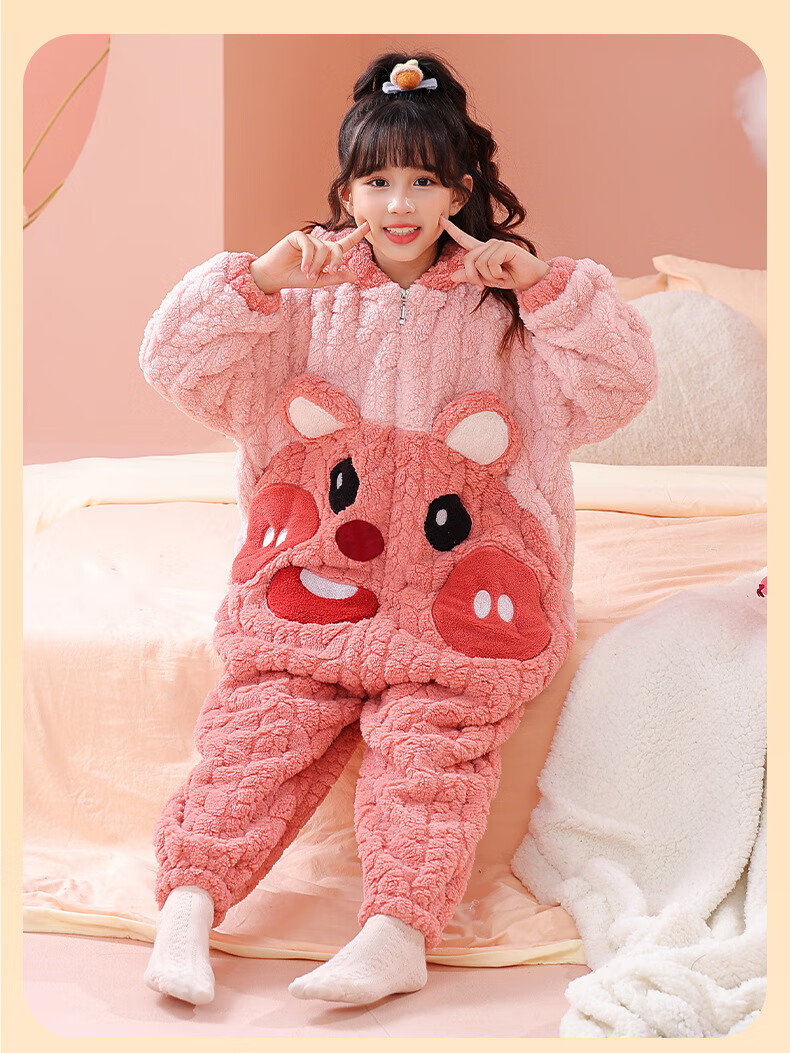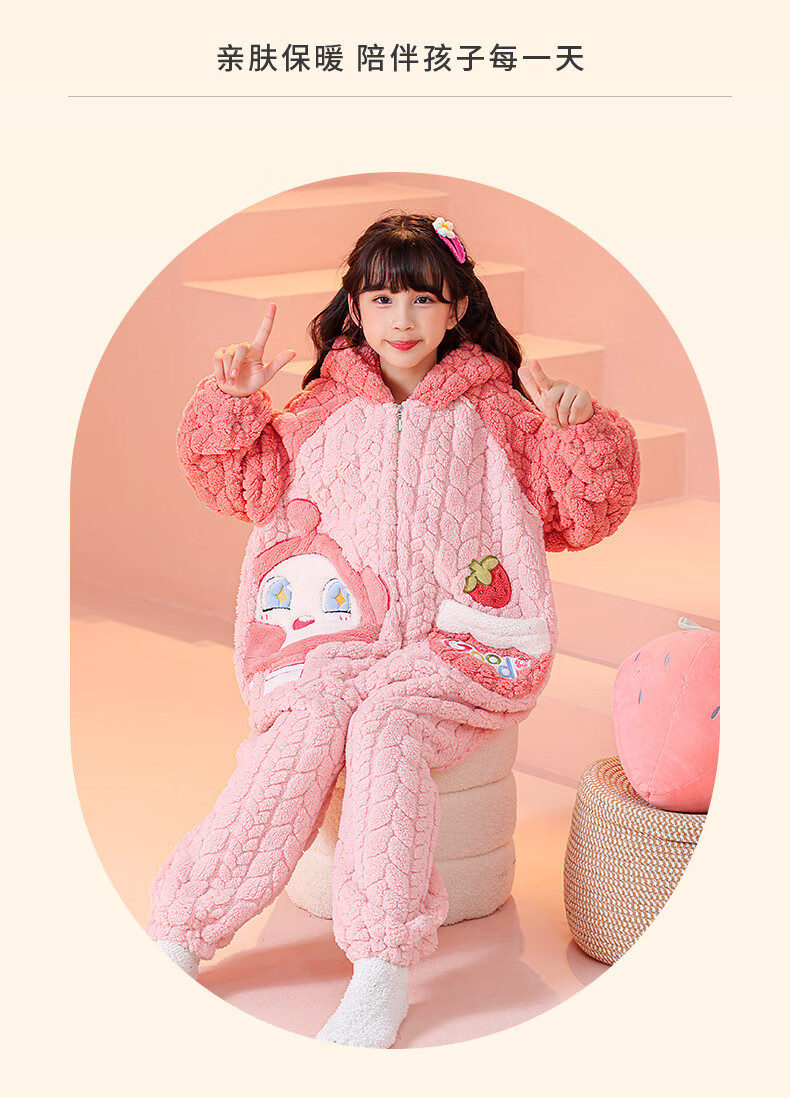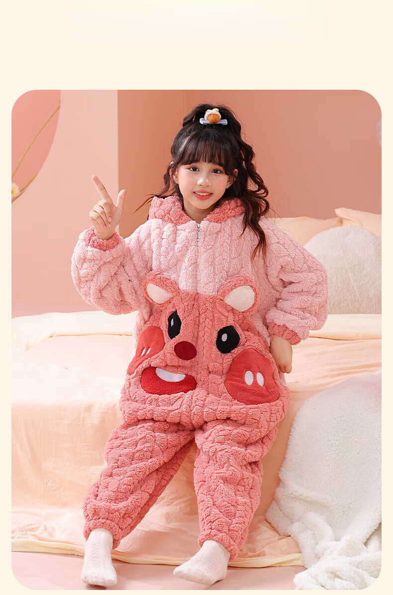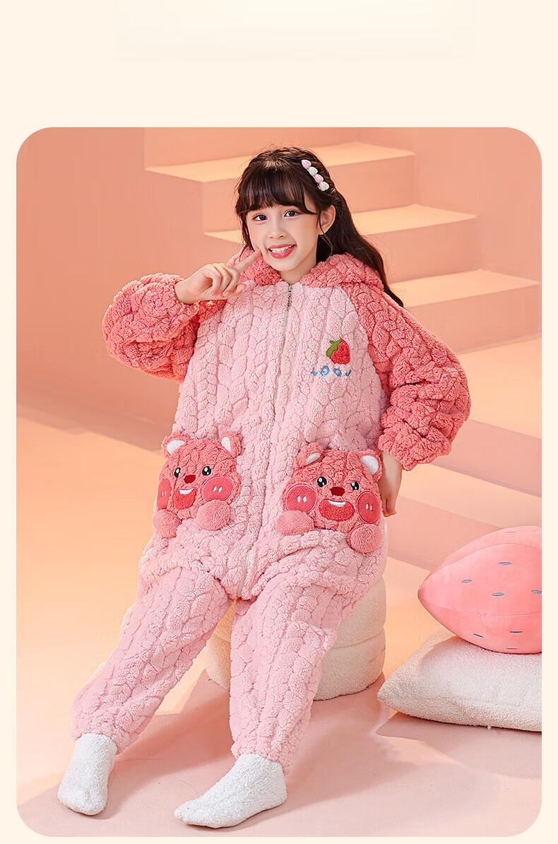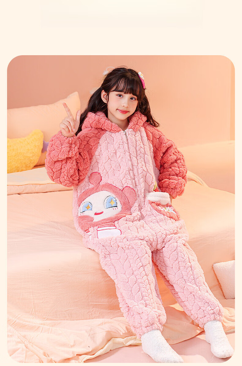G.DUCKKIDS2024 Autumn and Winter Children's One-piece Pajamas Coral Velvet Hooded Cartoon Girls' Sleeping Bags for Big Children and Girls Home Clothes KYM One-piece Velvet-226 Egg Boy One Size 12