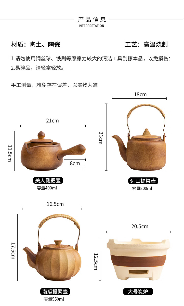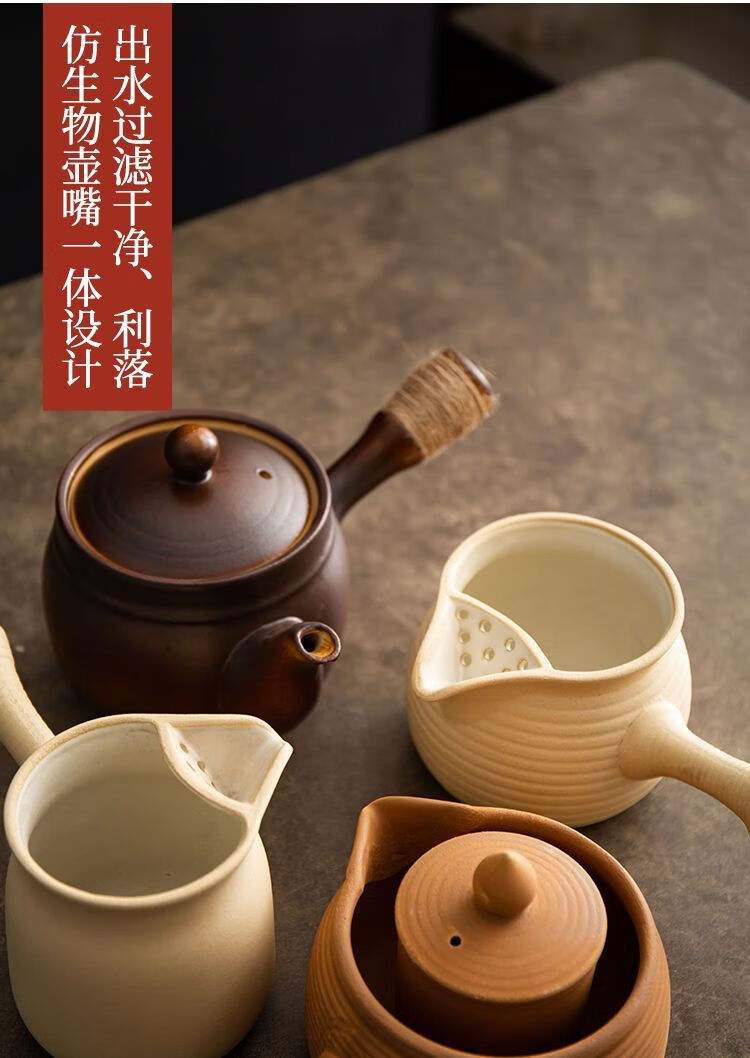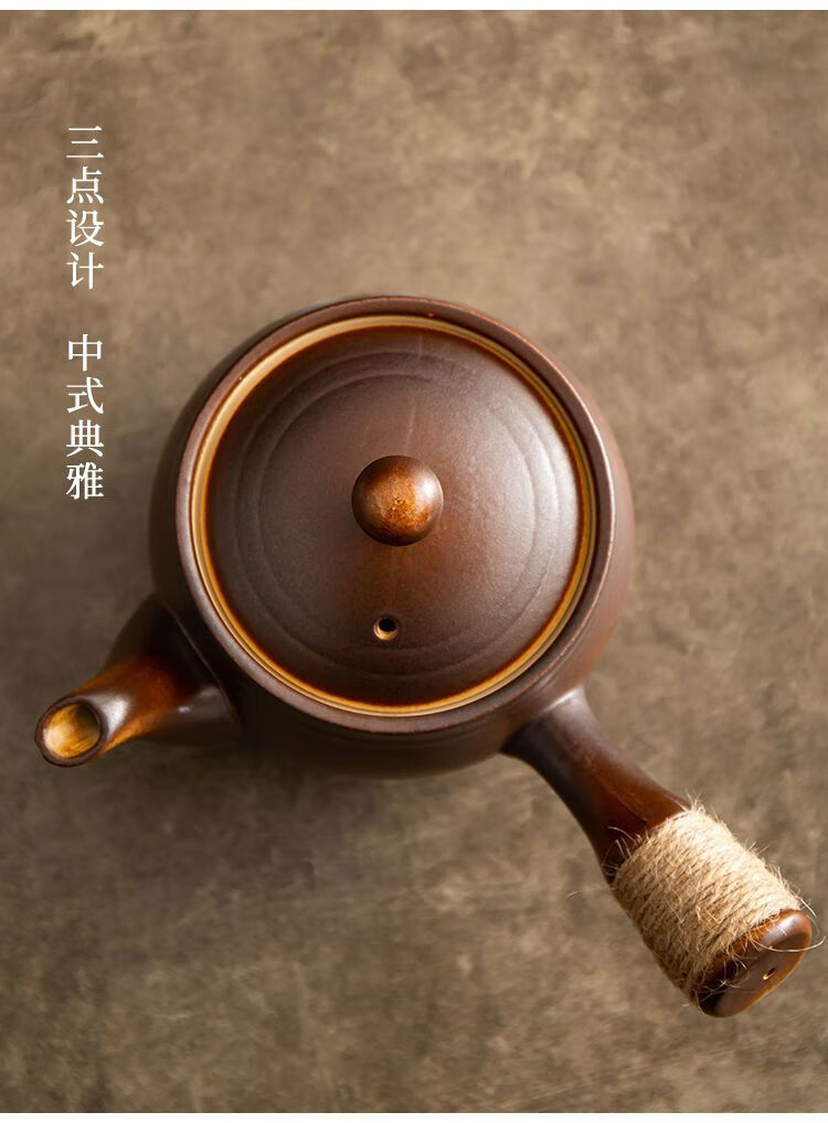 Spide stove-cooked tea roasted milk jar teapot side-handled pot Japanese-style household outdoor open flame high temperature resistant stoneware teapot purple sand simple pot-unglazed 610ml