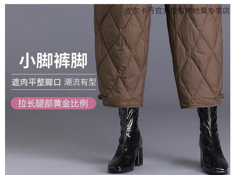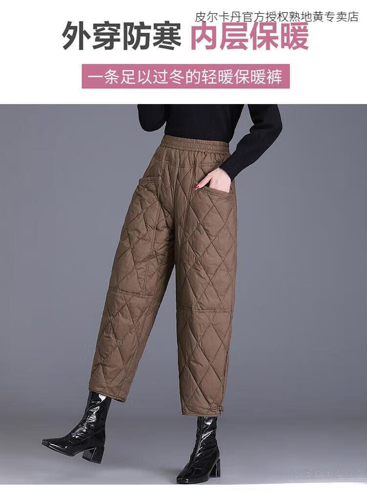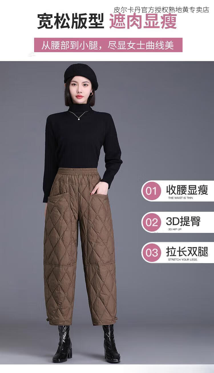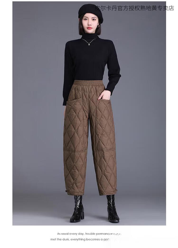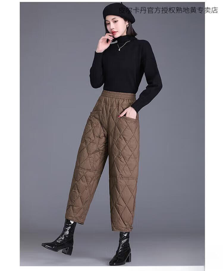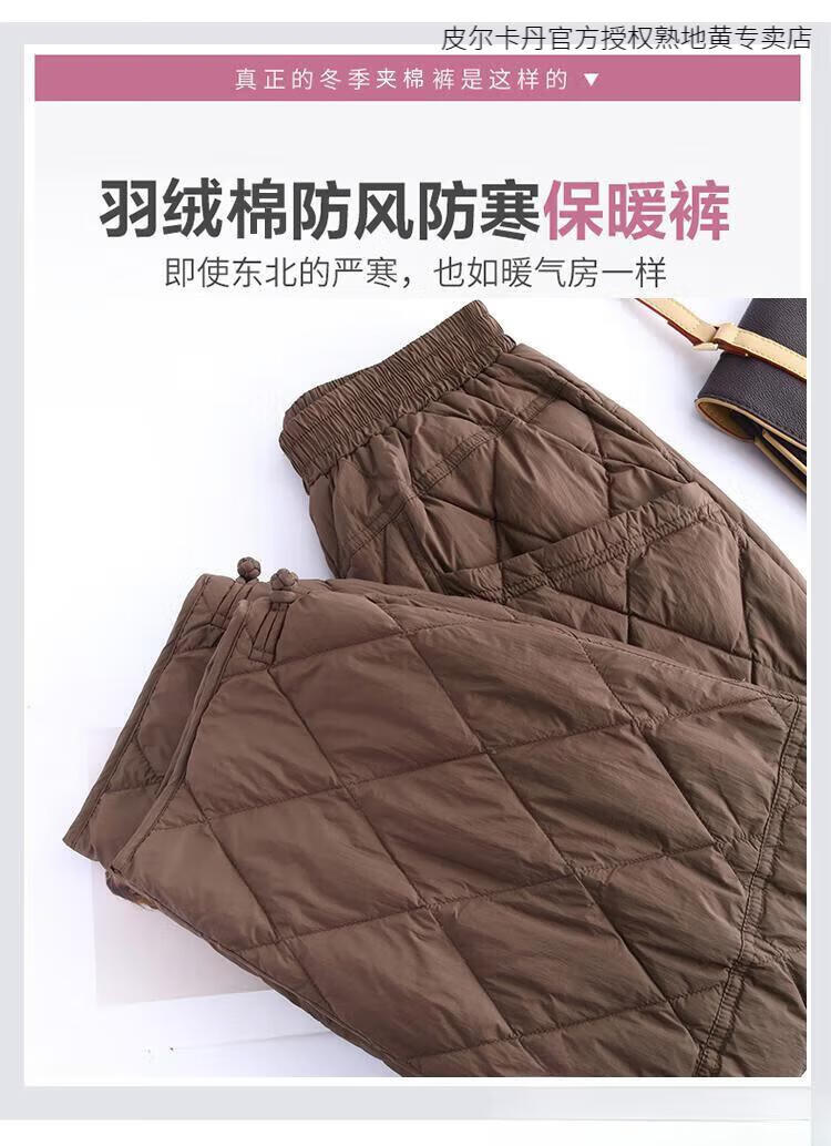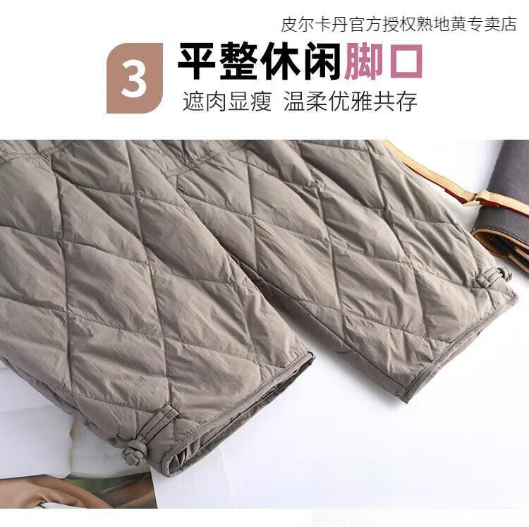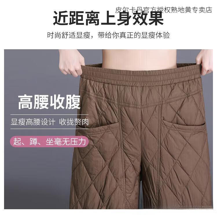 Pierre Cardin Down I Cotton I Pants Women's Outer Wear 2025 New Winter Fashion Women's Velvet Thickened Eight-Point Pants Mom's Warm Cotton Brown Authentic Counter Quality XL Recommended 115-130 Jin Jin equals 0.5 kg