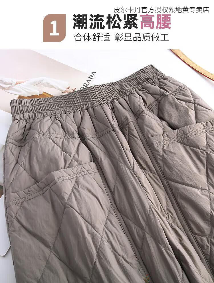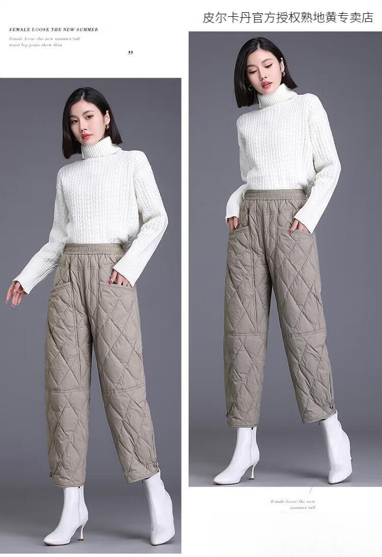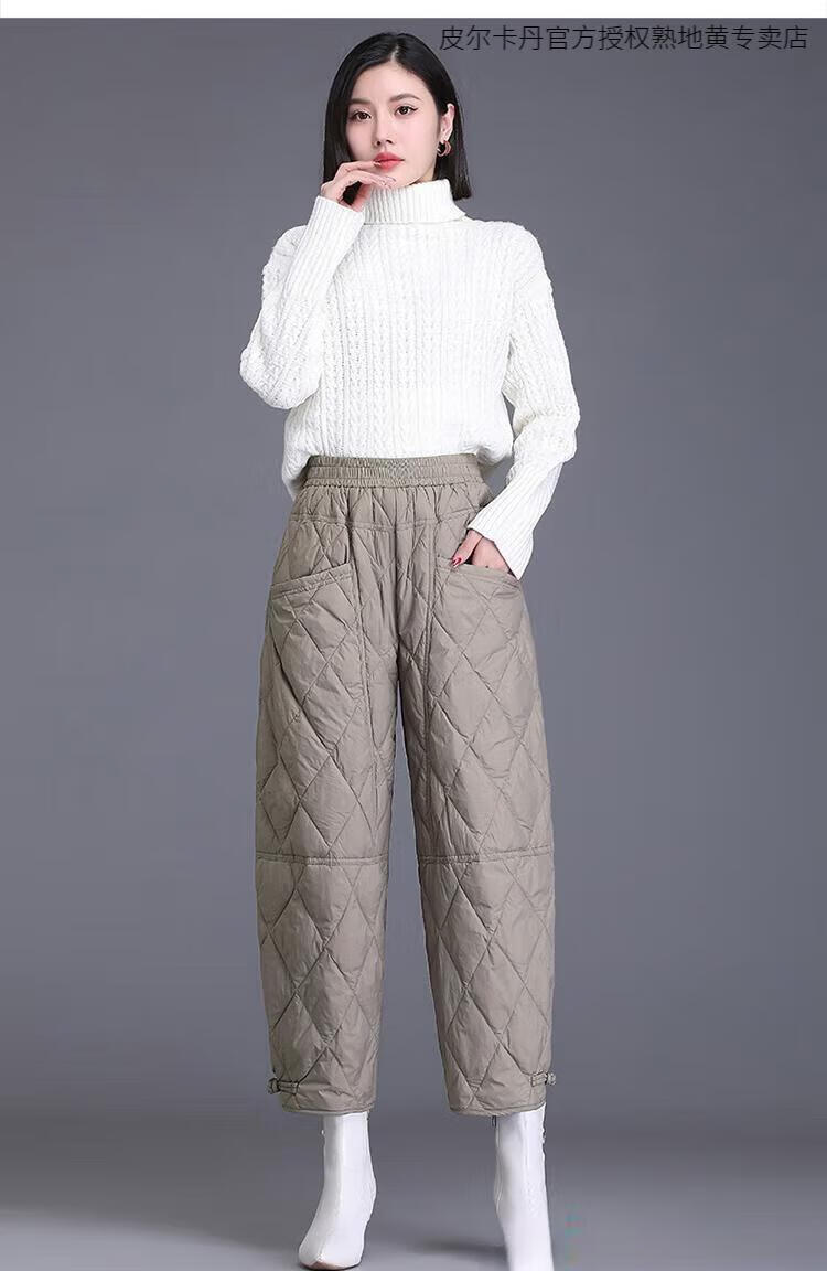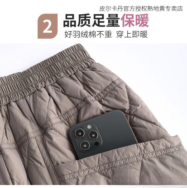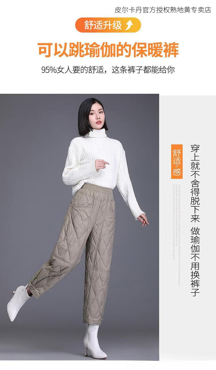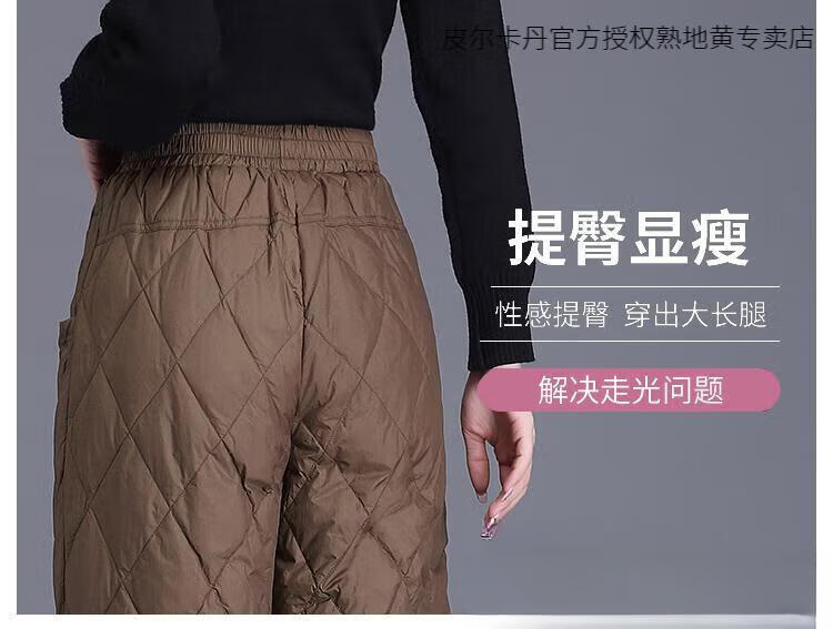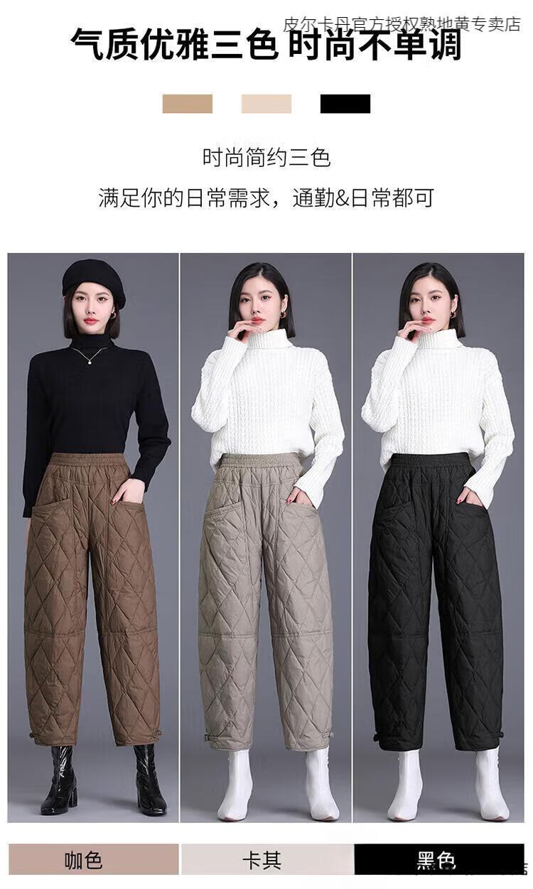 Pierre Cardin Down I Cotton I Pants Women's Outer Wear 2025 New Winter Fashion Women's Velvet Thickened Eight-Point Pants Mom's Warm Cotton Brown Authentic Counter Quality XL Recommended 115-130 Jin Jin equals 0.5 kg