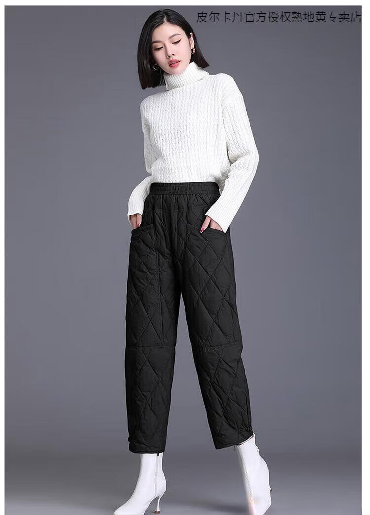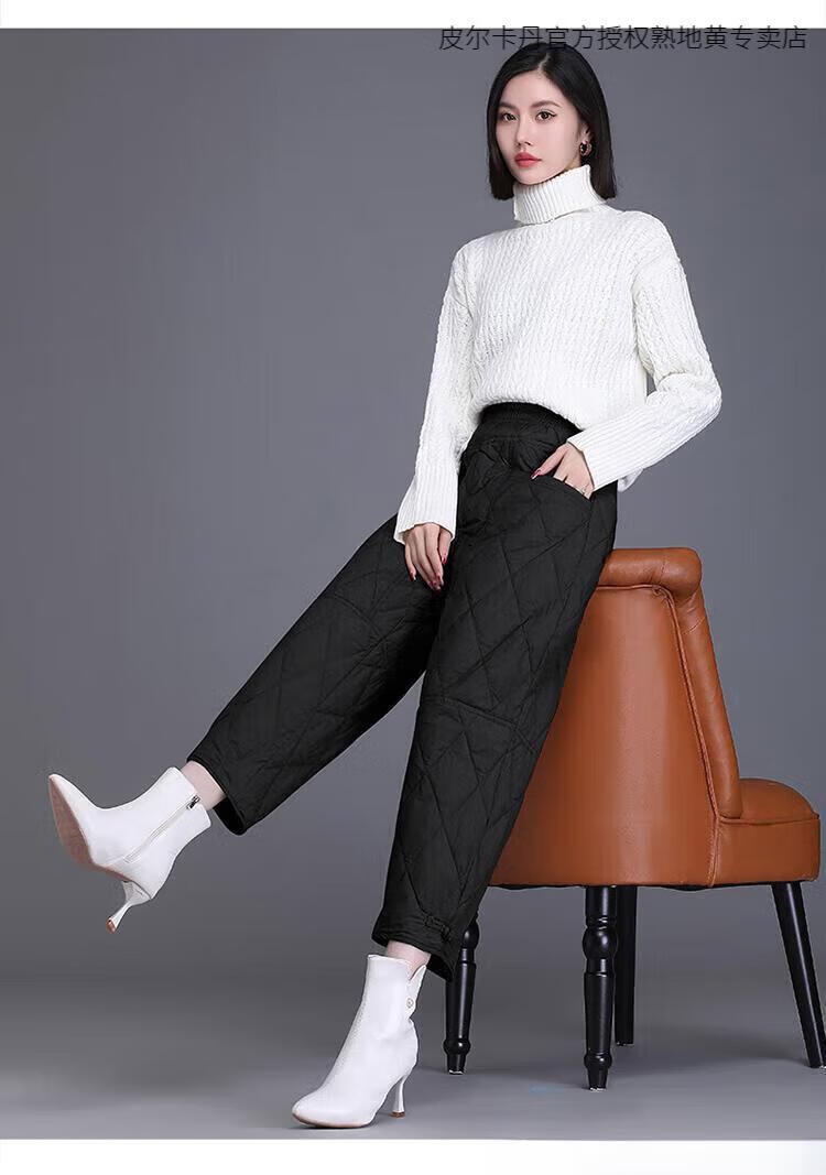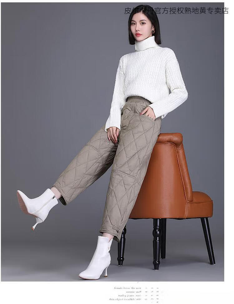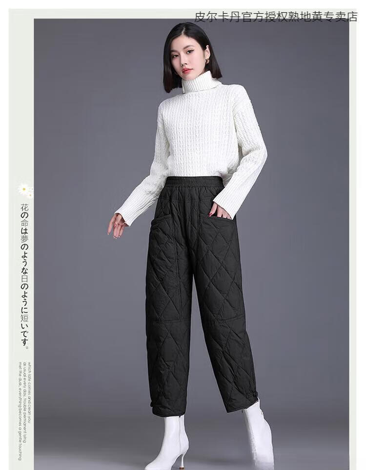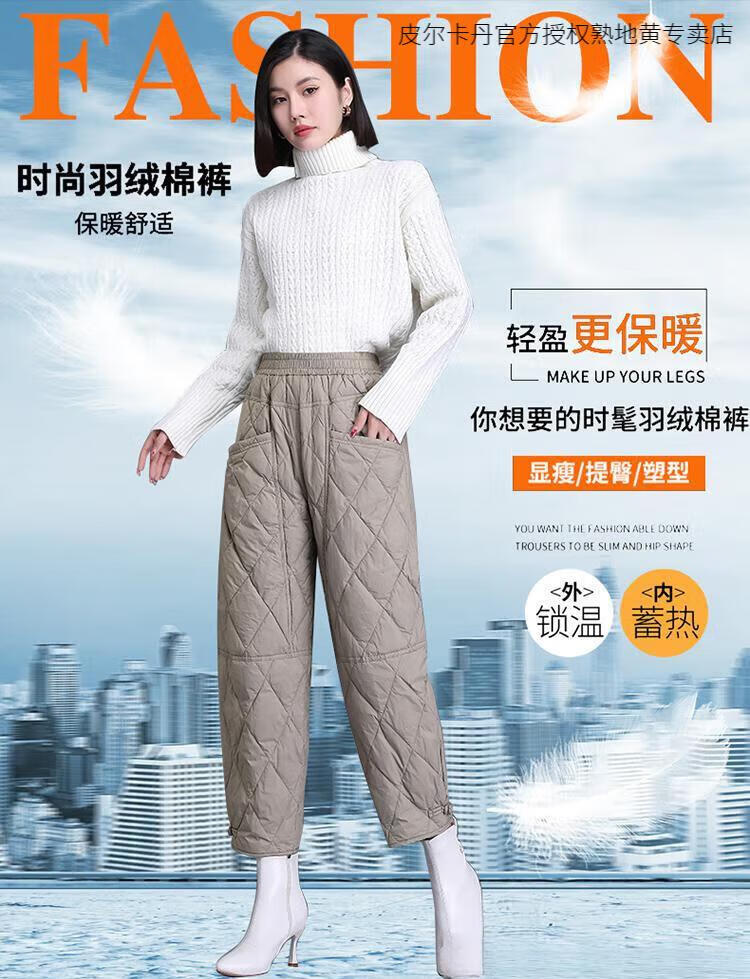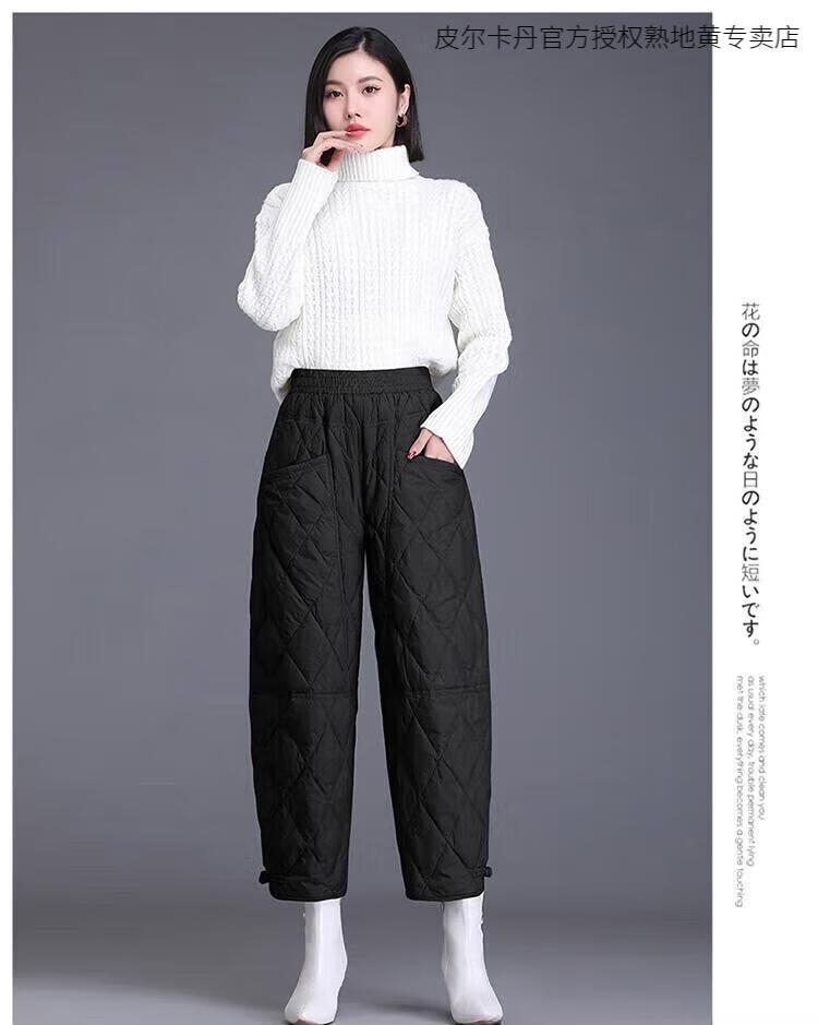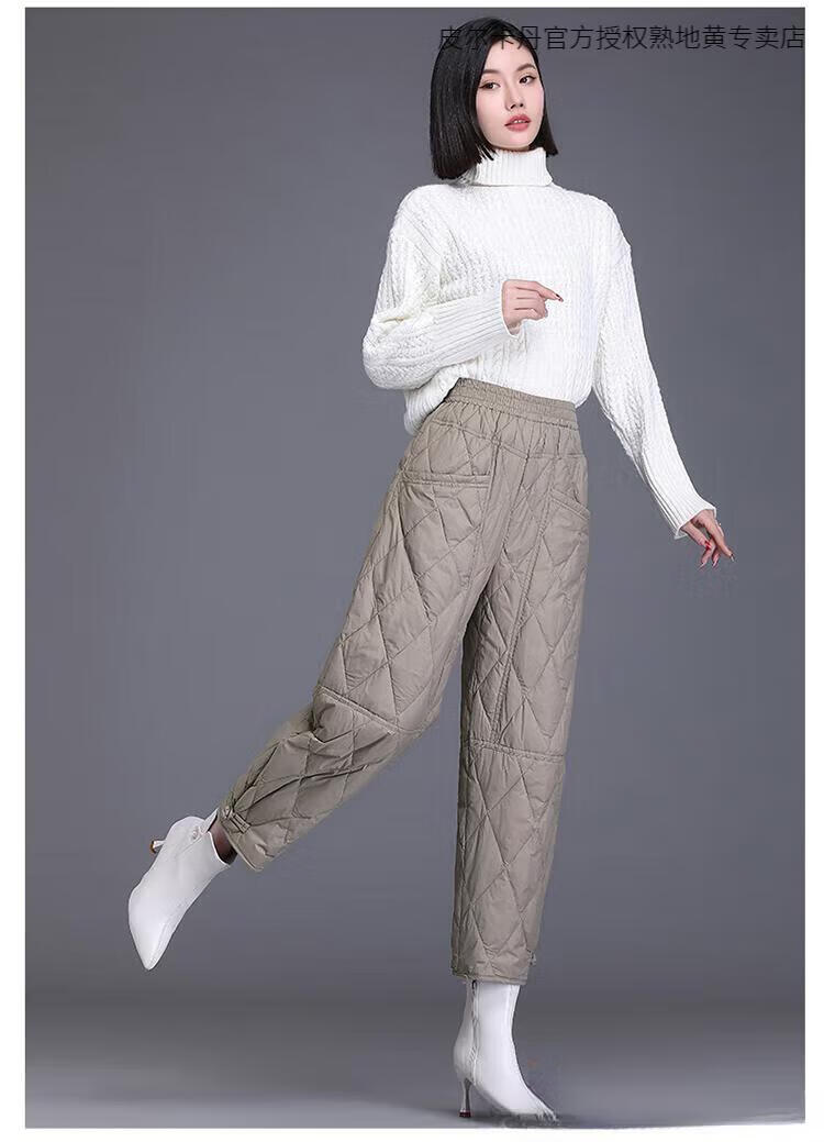 Pierre Cardin Down I Cotton I Pants Women's Outer Wear 2025 New Winter Fashion Women's Velvet Thickened Eight-Point Pants Mom's Warm Cotton Brown Authentic Counter Quality XL Recommended 115-130 Jin Jin equals 0.5 kg