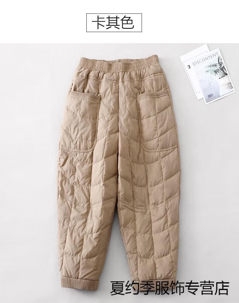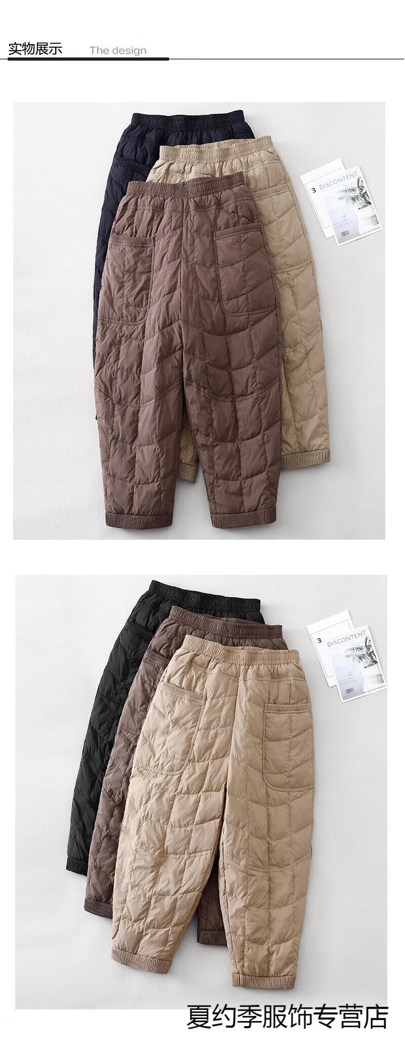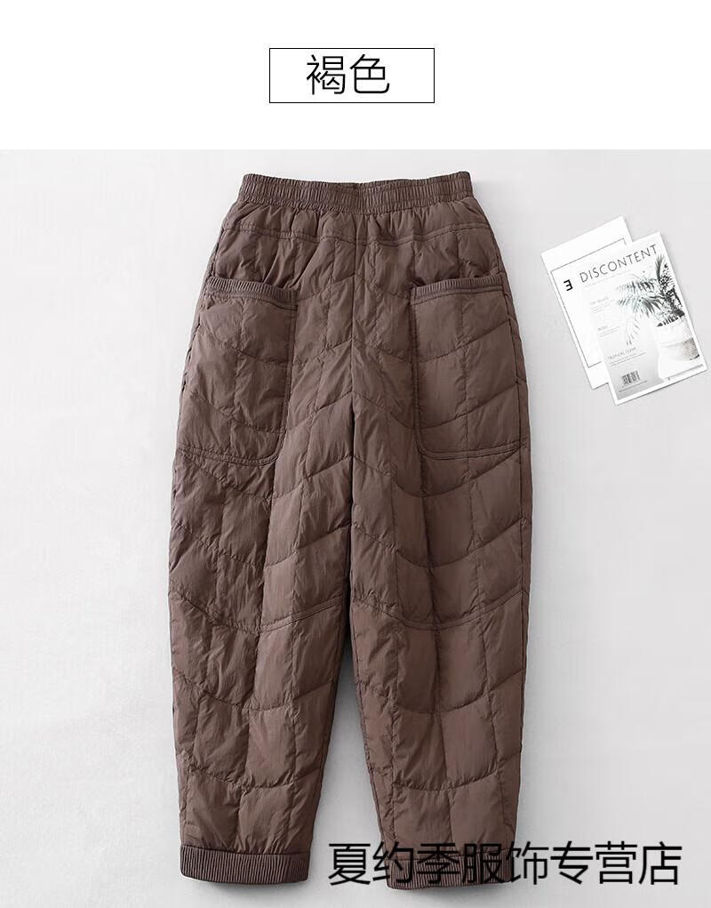 Duck Down Pants Women's Autumn and Winter High Waist Outer Wear Plus Velvet Thickened Mom Pants 2025 New Northeast Minus 40 Degree Cotton Pants Brown M Recommended 90-115 Jin Jin equals 0.5 kg