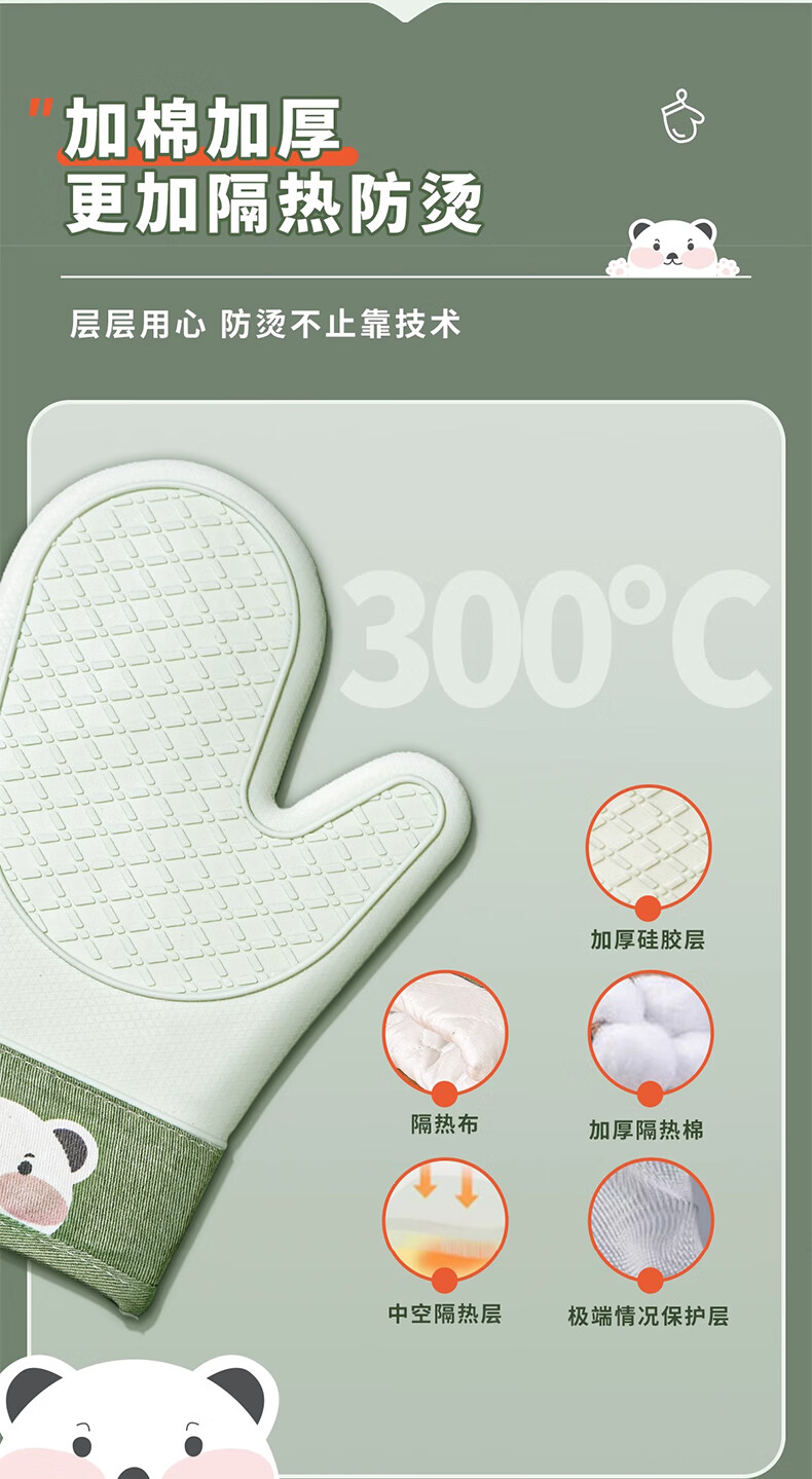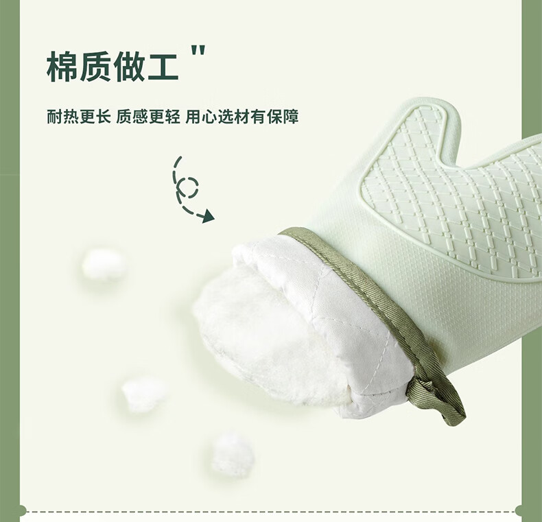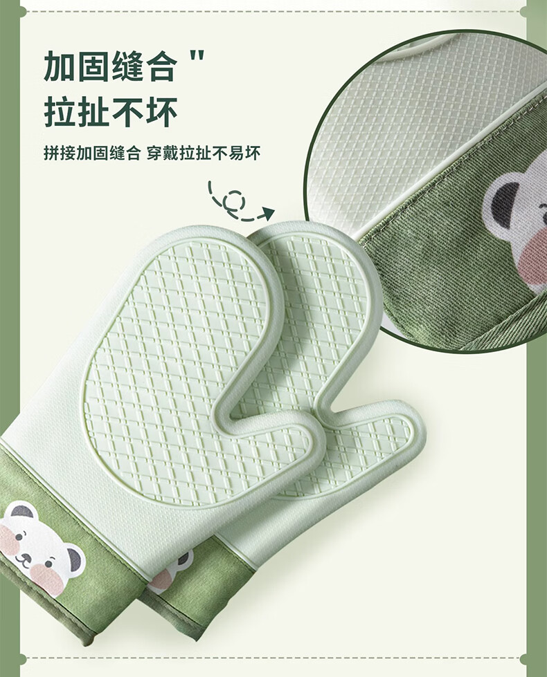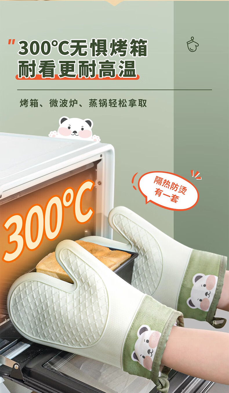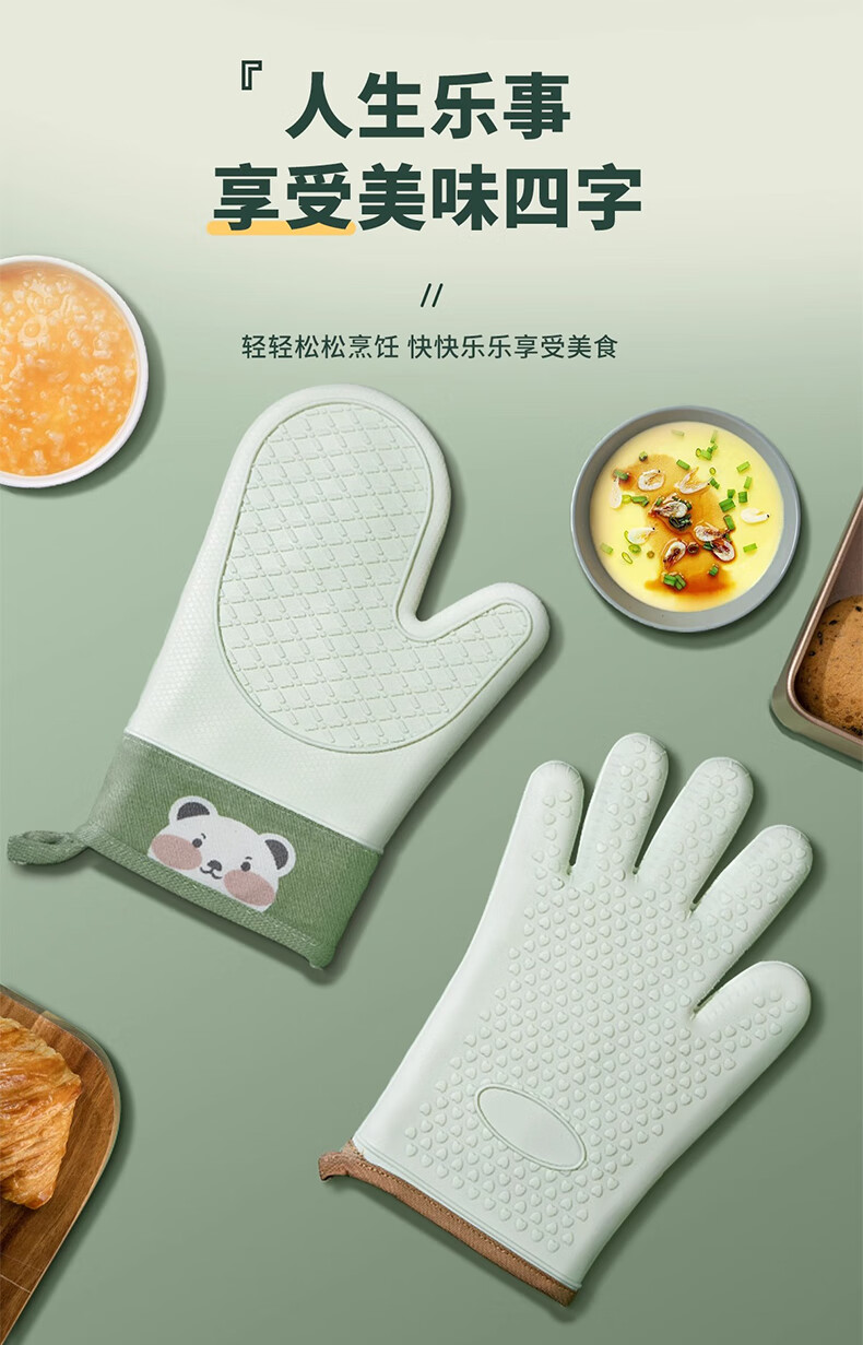 Mrs. Lee microwave oven insulation gloves kitchen food grade silicone oven baking thickened high temperature resistant anti-slip waterproof gloves five-finger short 1 piece pine cone green insulation gloves
