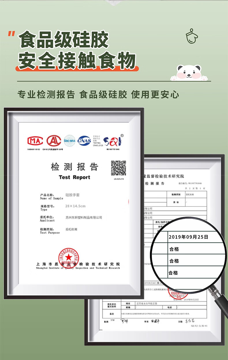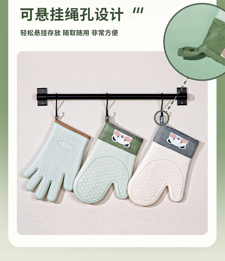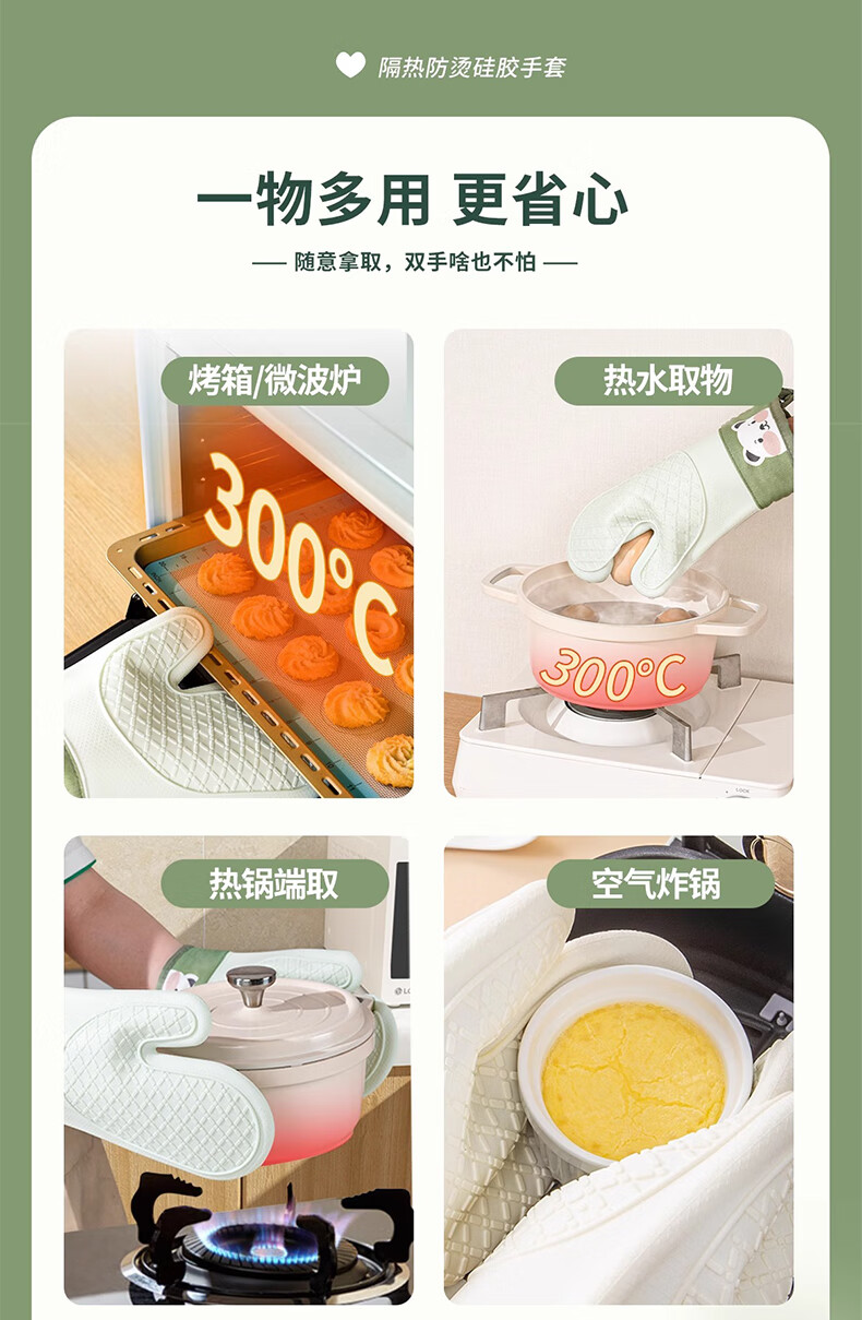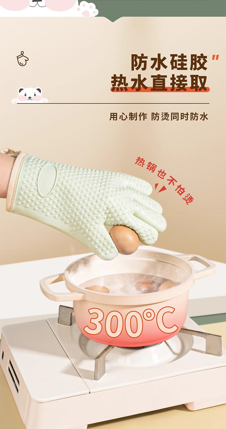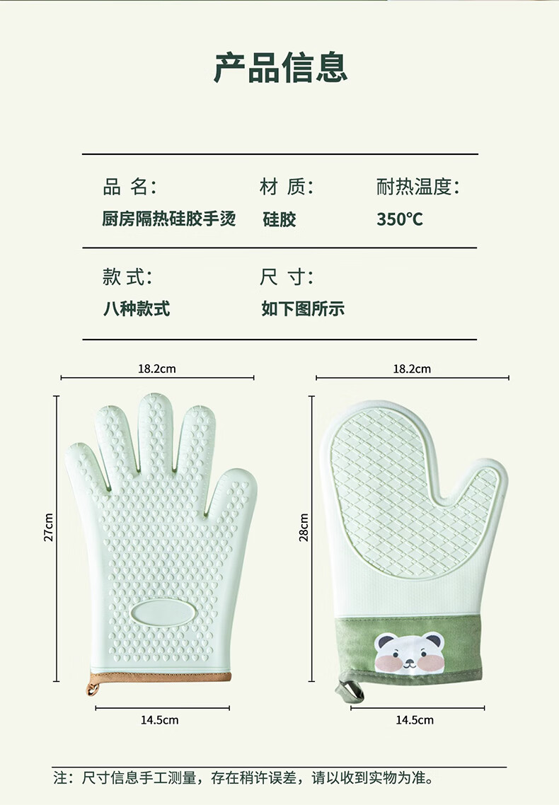 Mrs. Lee microwave oven insulation gloves kitchen food grade silicone oven baking thickened high temperature resistant anti-slip waterproof gloves five-finger short 1 piece pine cone green insulation gloves